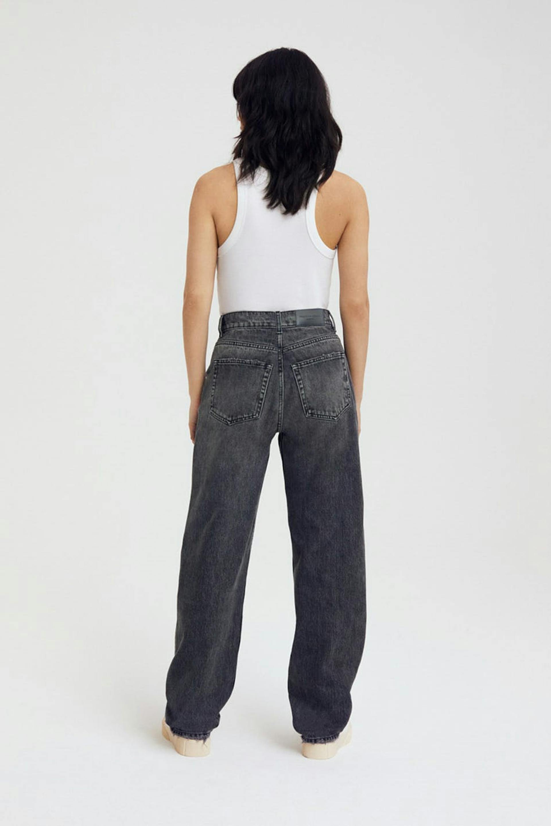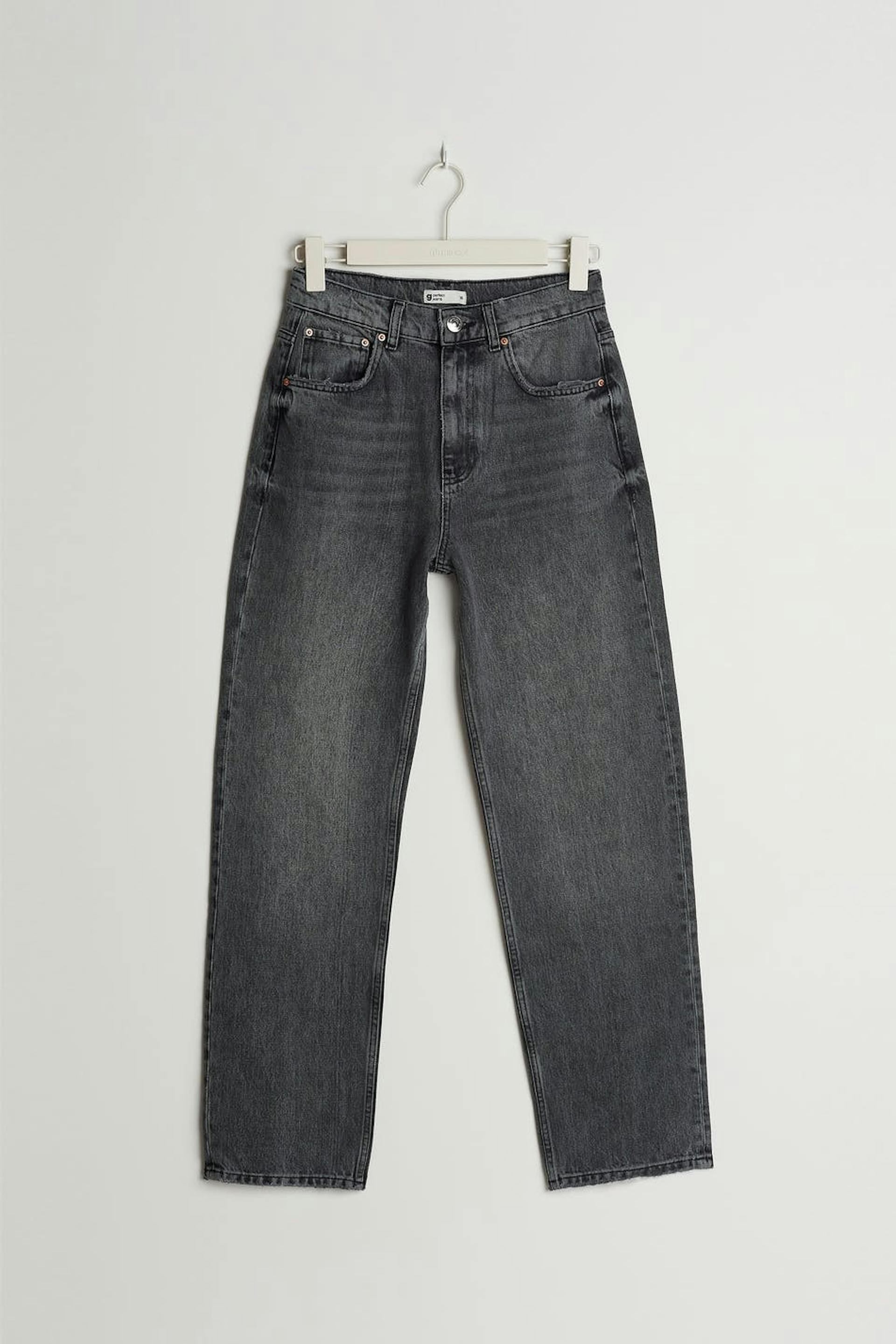 Petite spijkerbroek met hoge taille. De spijkerbroek is grijs en heeft een rechte en geïnspireerd op de jaren'90 pasvorm. Het is gemaakt van niet-elastisch denim en heeft broekspijpen met normale lengte. Perfect voor personen die 160 cm (5 ft 3 in.) of kleiner zijn. Gebruik onze maattabel om je maat te vinden.
