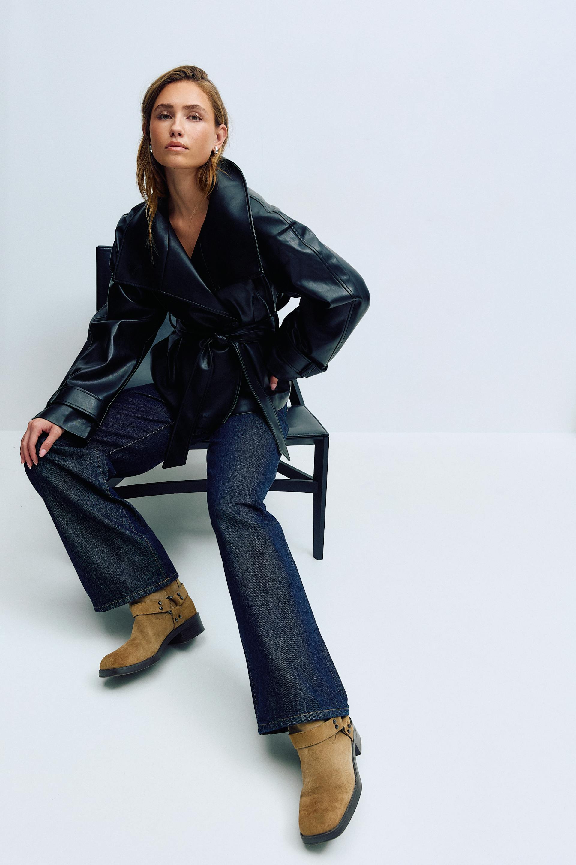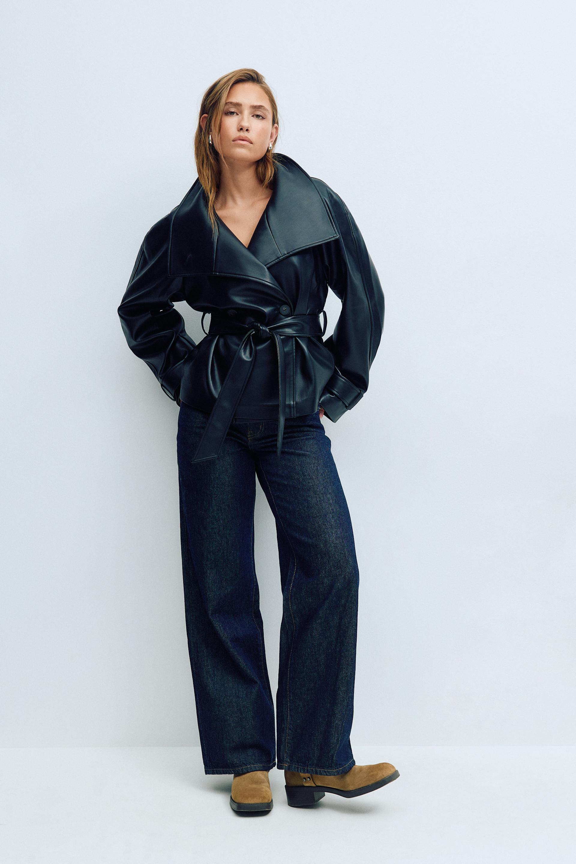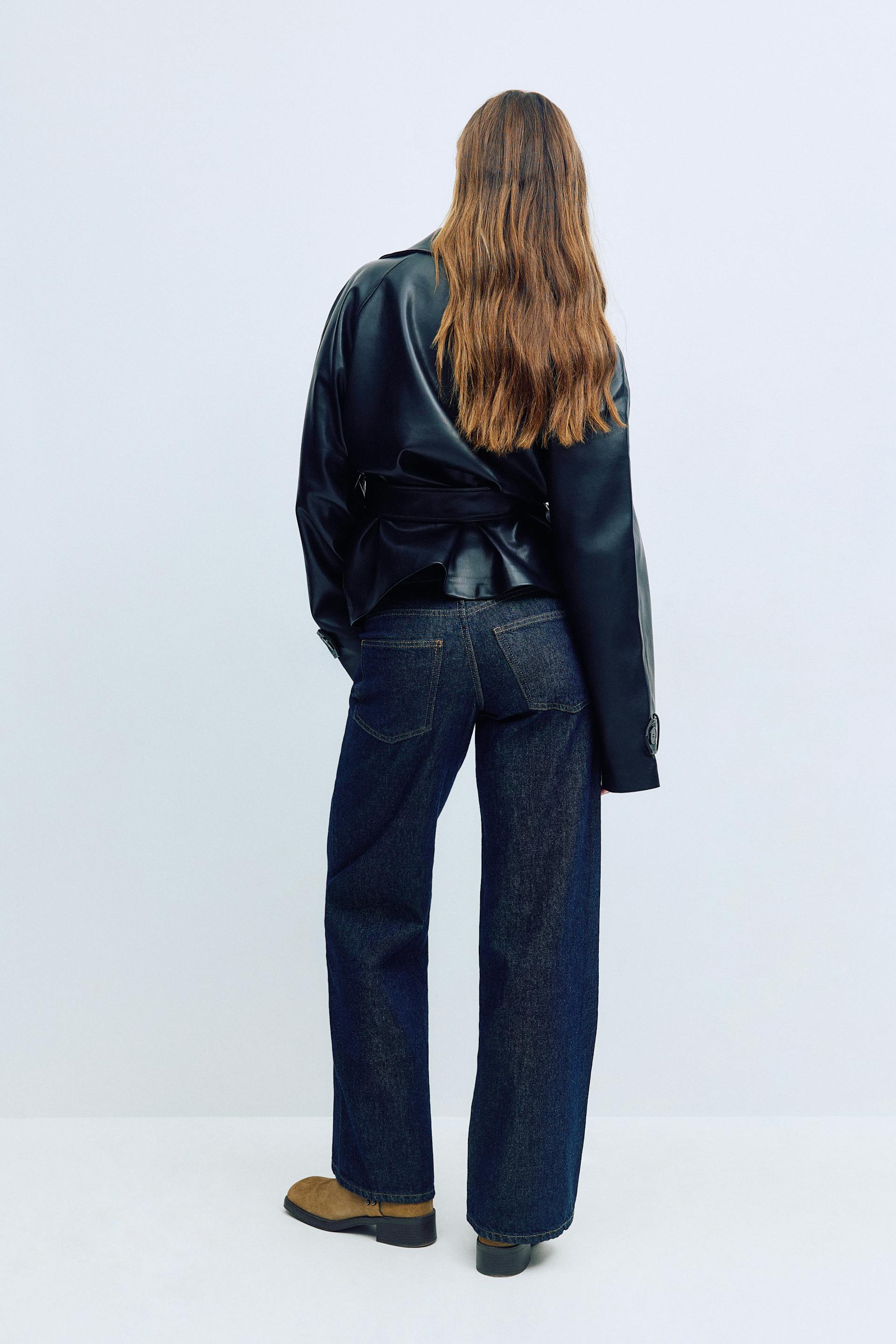 Jeans met brede pijpen met lage taille van niet-elastisch denim. De spijkerbroek is blauw en heeft brede broekspijpen met volledige lengte. Het heeft gulp en zakken aan de voor- en achterzijde. Gebruik onze maattabel om je maat te vinden.