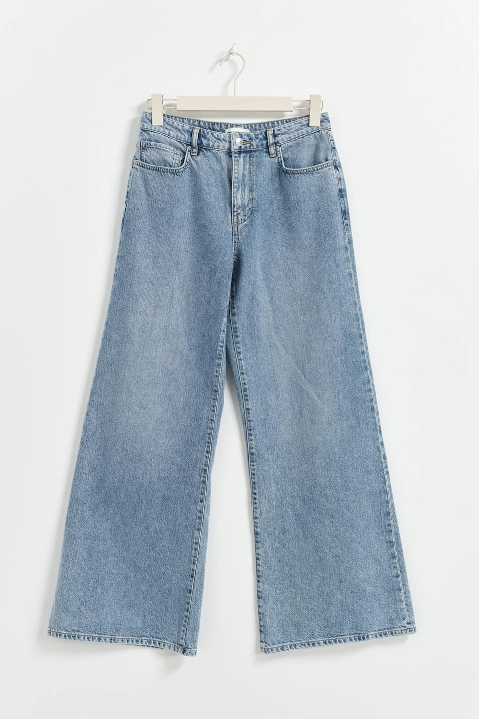 Jeans met brede pijpen met hoge taille van zacht niet-elastisch denim. De spijkerbroeken zijn blauw en hebben gulp. Het heeft zakken aan de voor- en achterzijde en extra-lange benen. Perfect voor personen die 175 cm (5 ft 9 in.) of groter zijn.