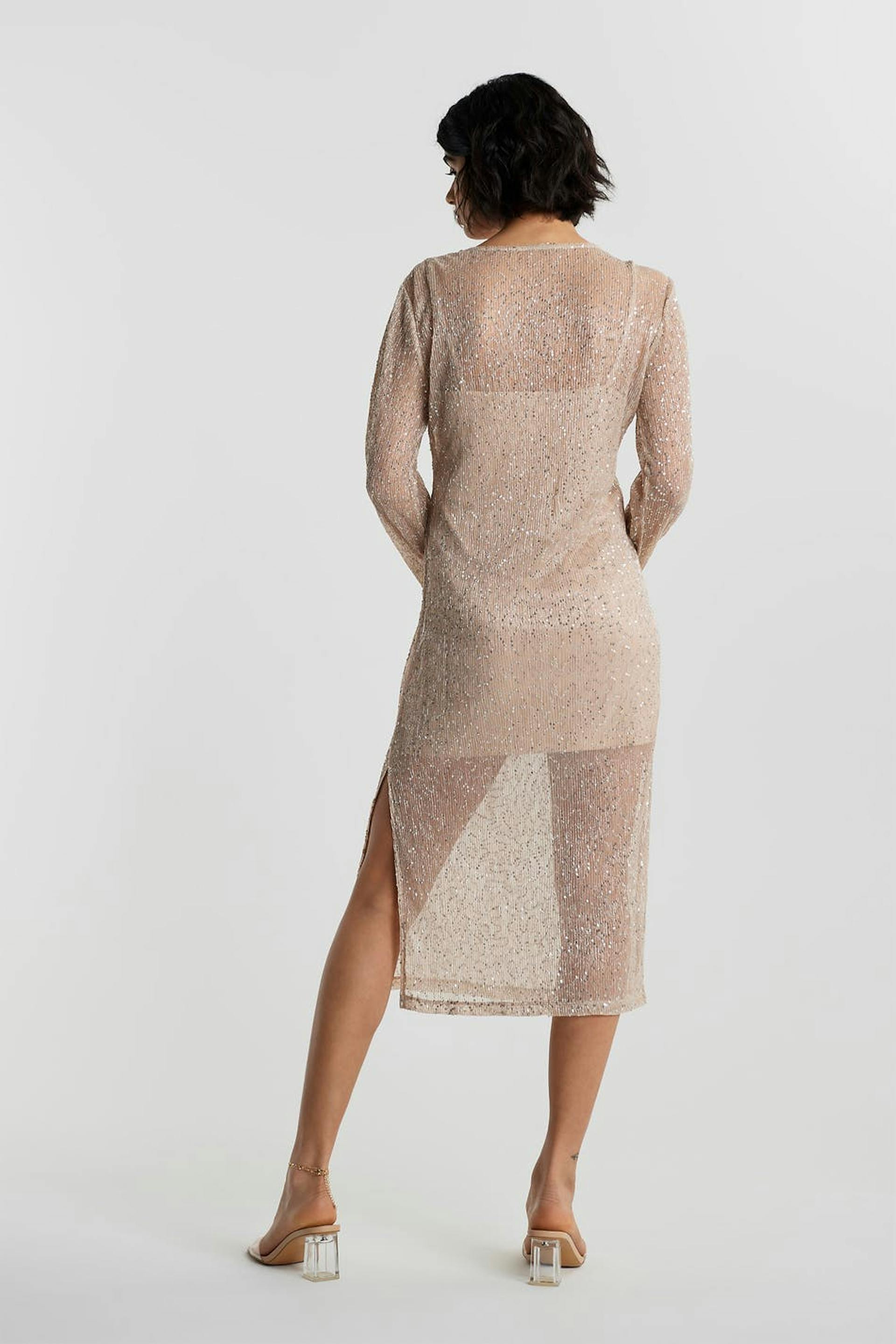 Party dress in jersey fabric. Long sleeves. Small sequins all over the dress. Supplier: Ningbo Way Developer Production unit: Ningbo Shi Beilun Jieteng Garments Co. Ltd.