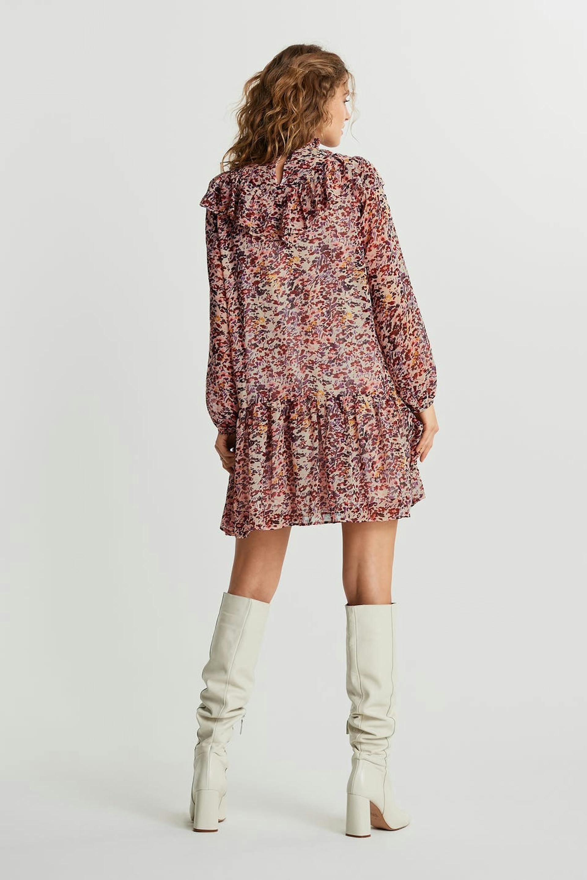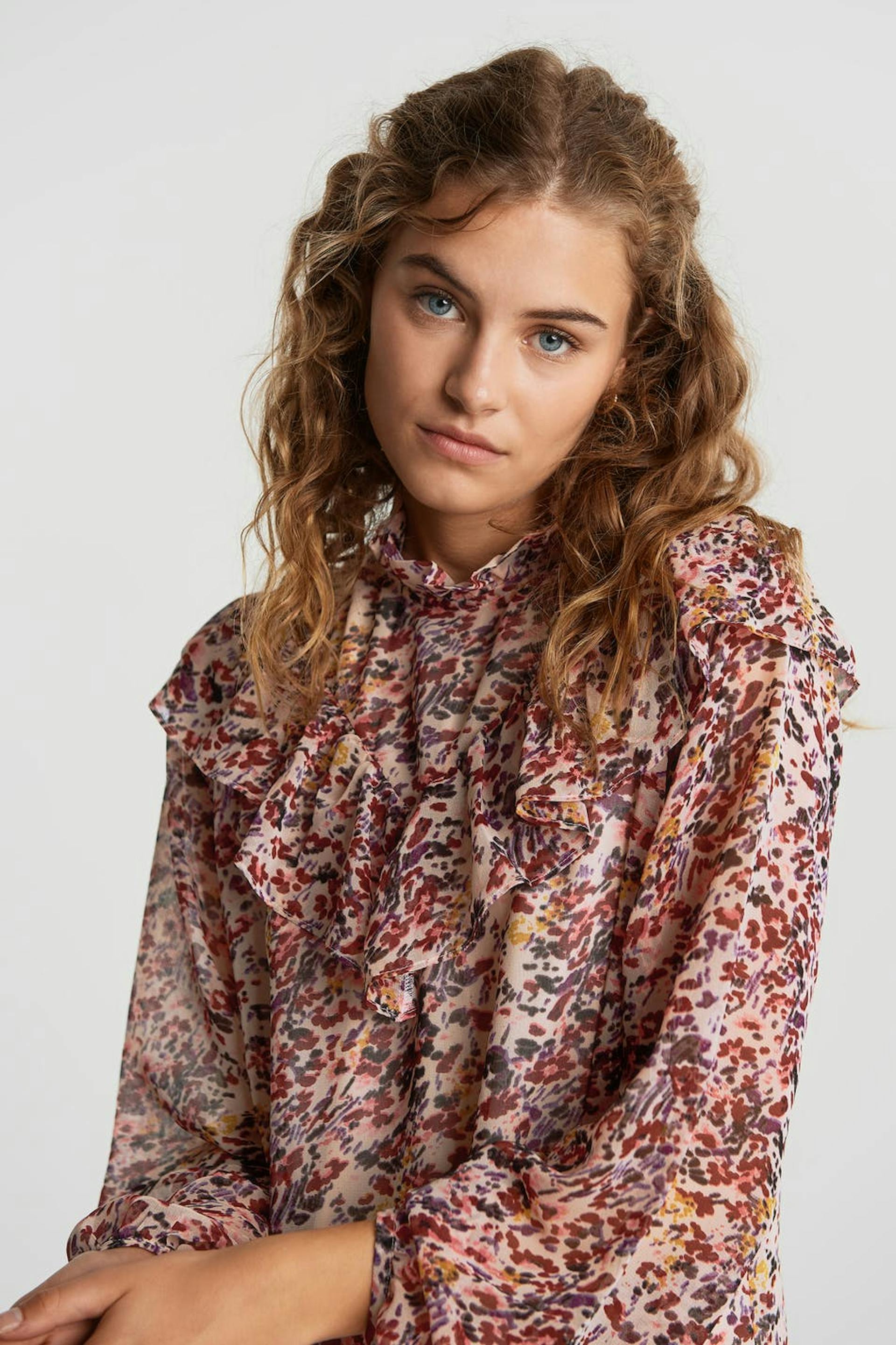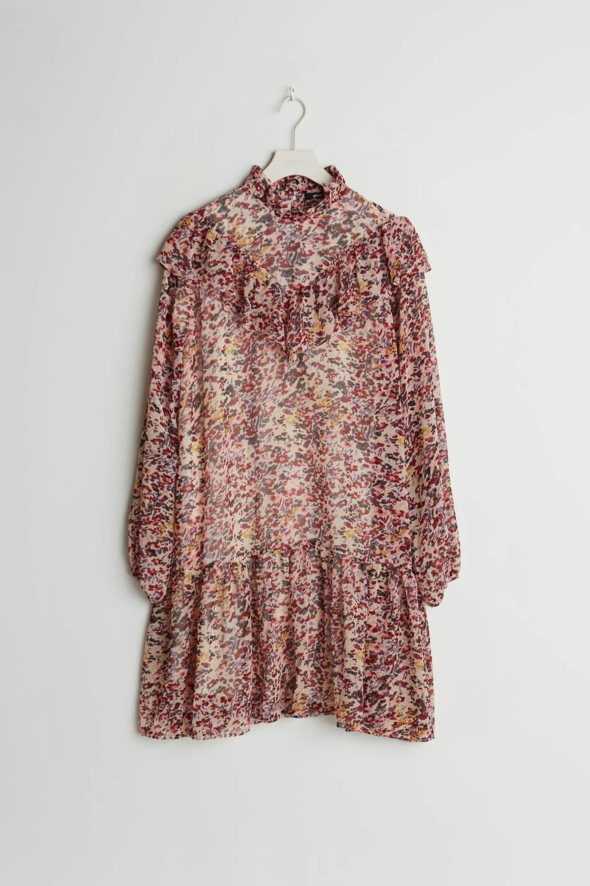 Woven printed dress with long volominous sleeves. Frill at front and back. Supplier: Paramount Products Pvt. Ltd Production unit: Paramount Products Pvt. Ltd