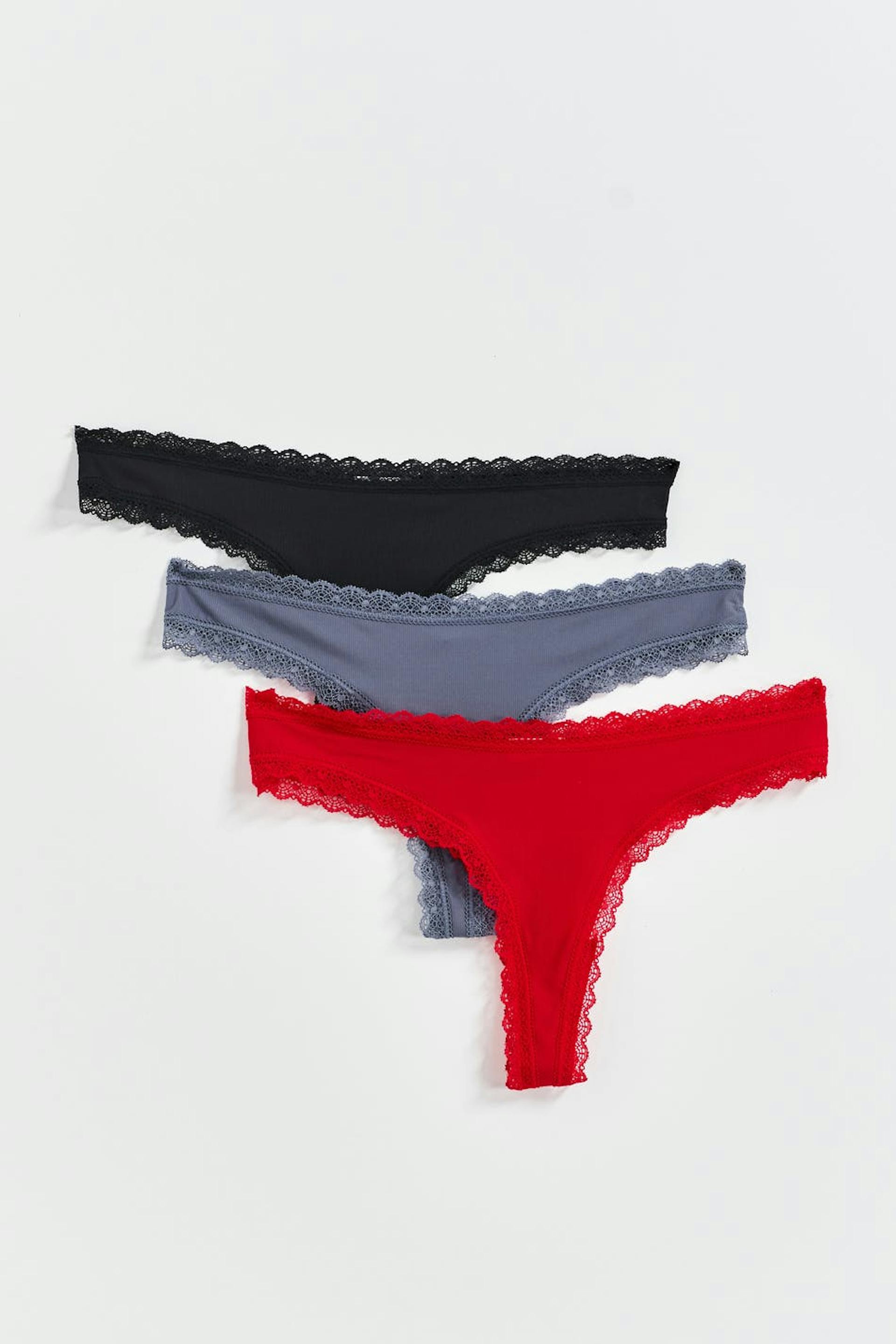 Waist Rise: Mid waist Fit: Figure hugging Description: Lace, Rib Additional Description: Lace trim, thong shape,