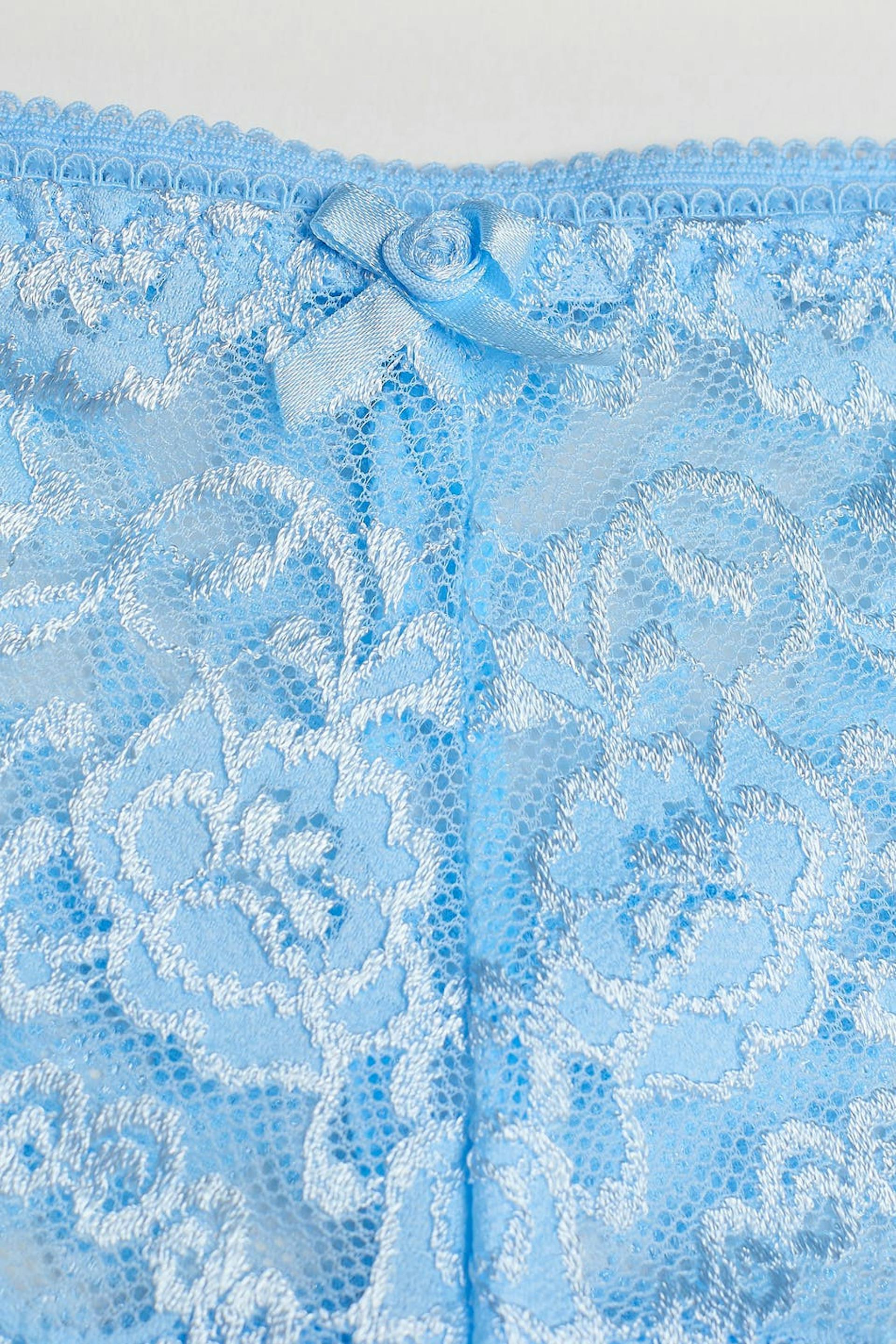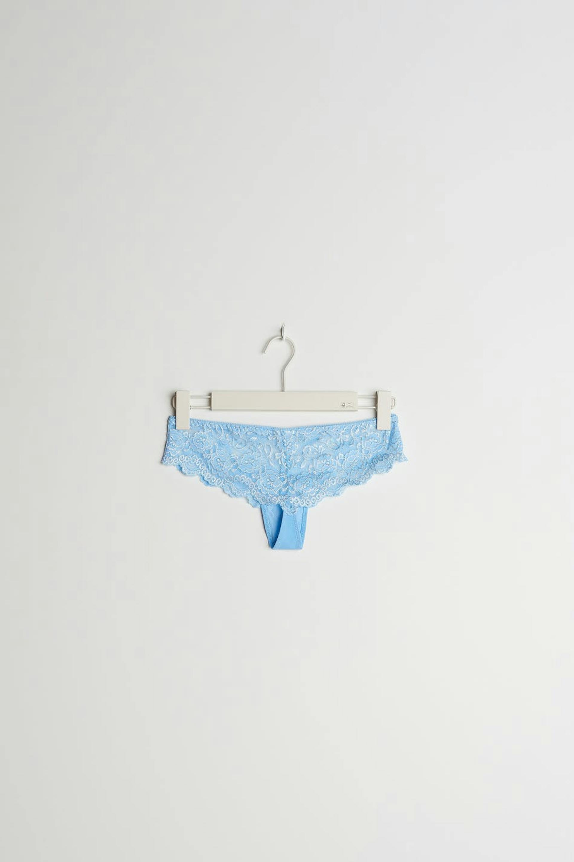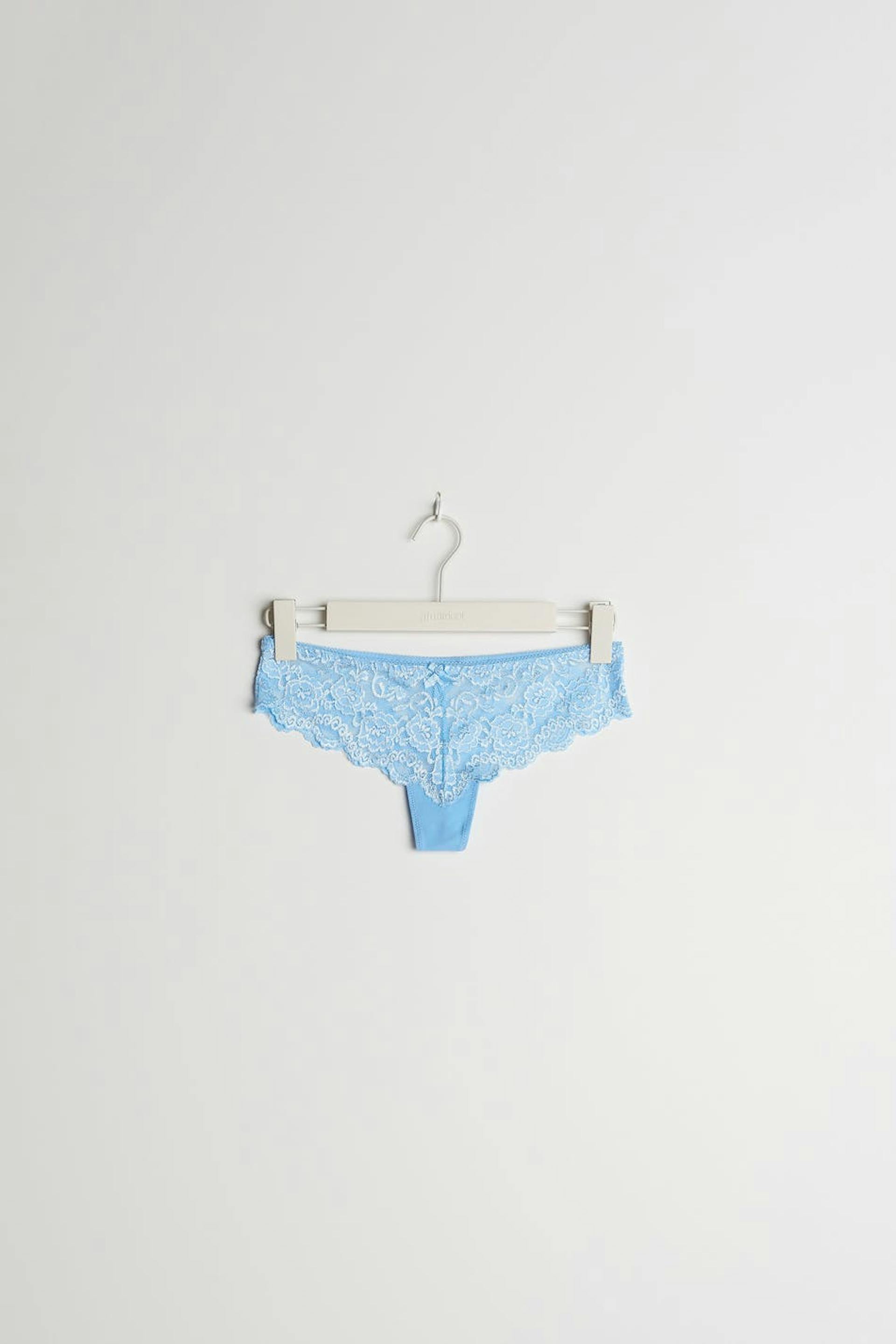 String. De string is blauw. Het is gemaakt uit kant.