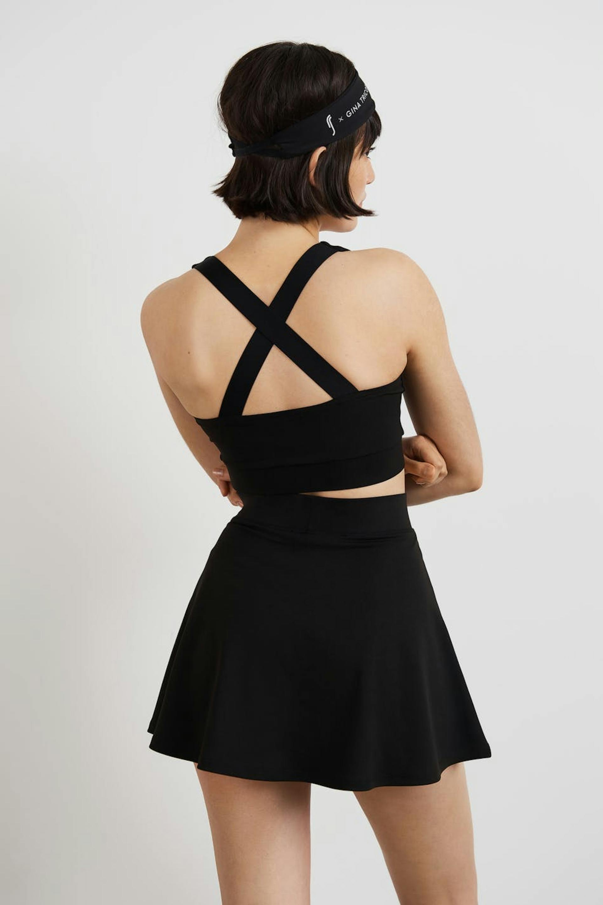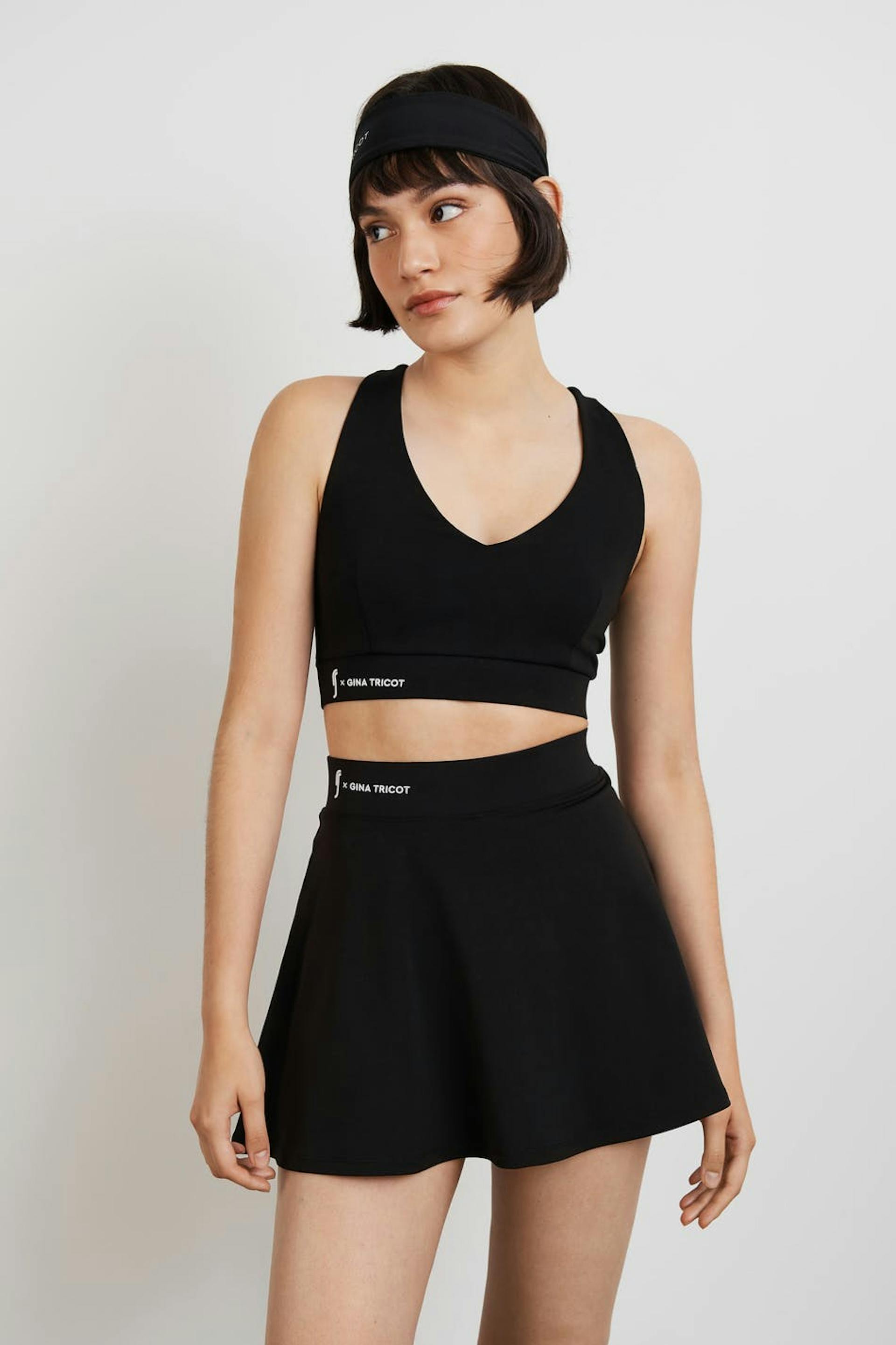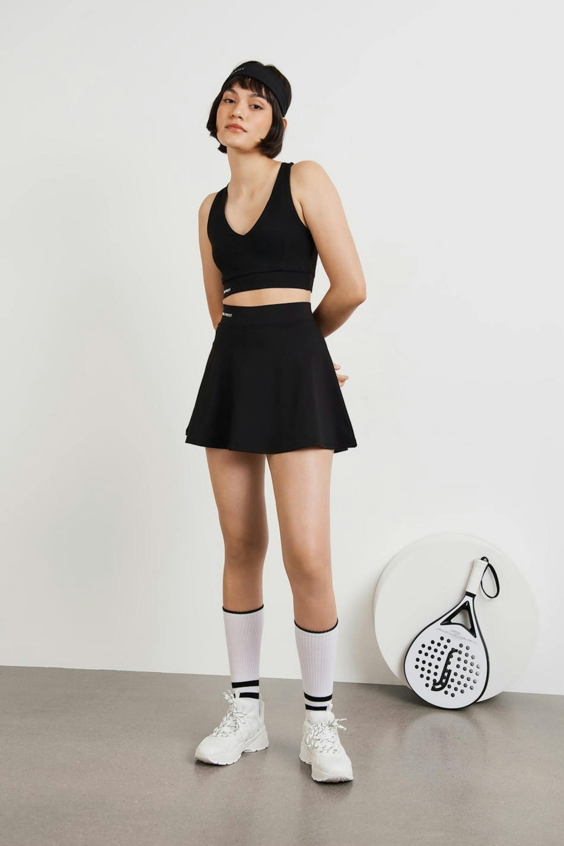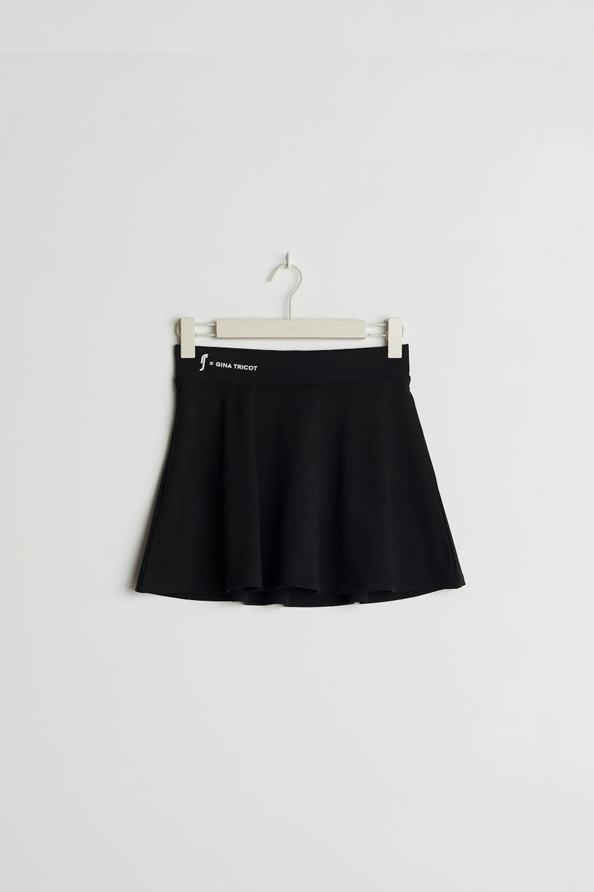 RS X Gina Tricot. Kort padelrokje met een normale pasvorm. De rok is zwart en heeft een elastiek aan de taille. Het heeft een short onder.
