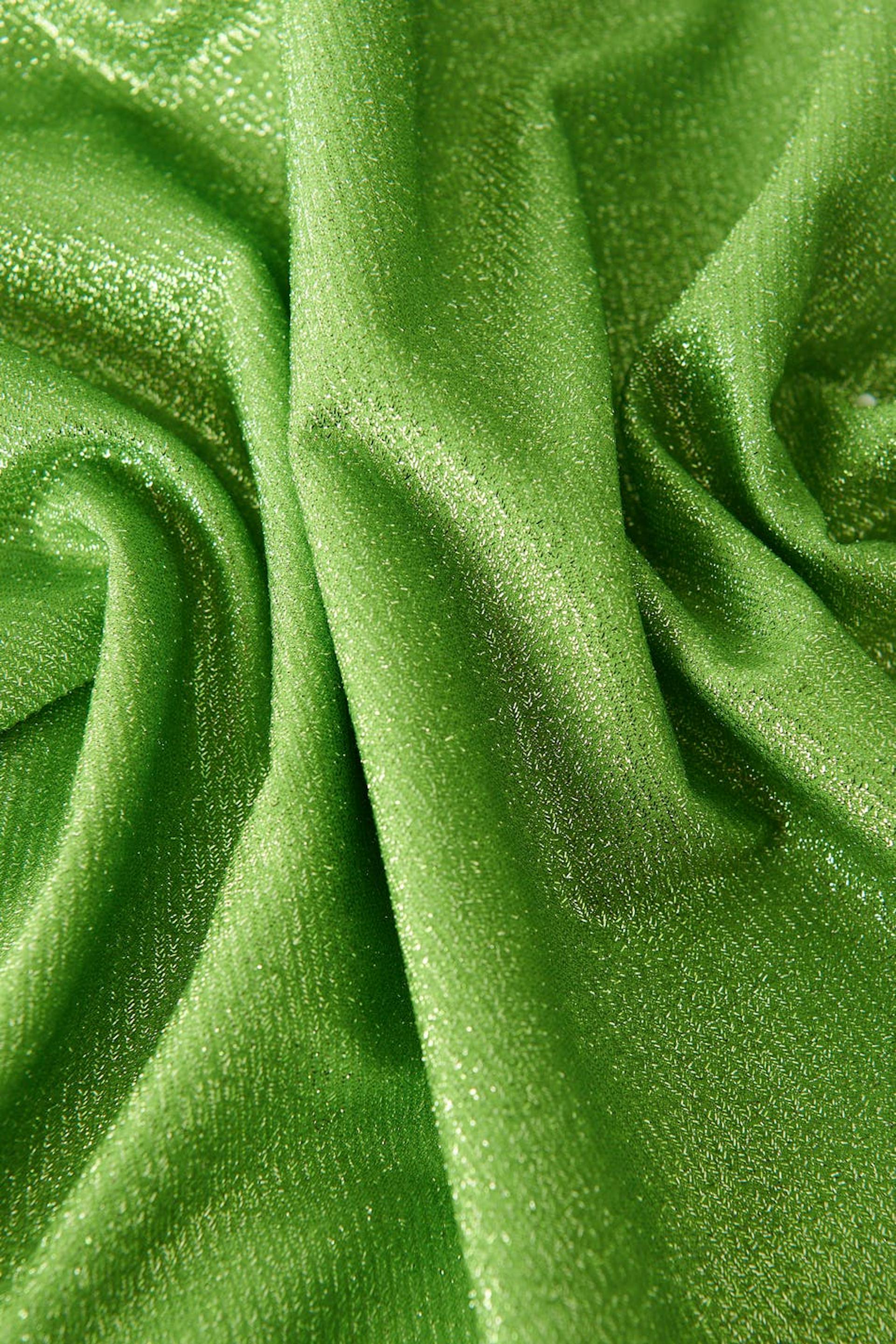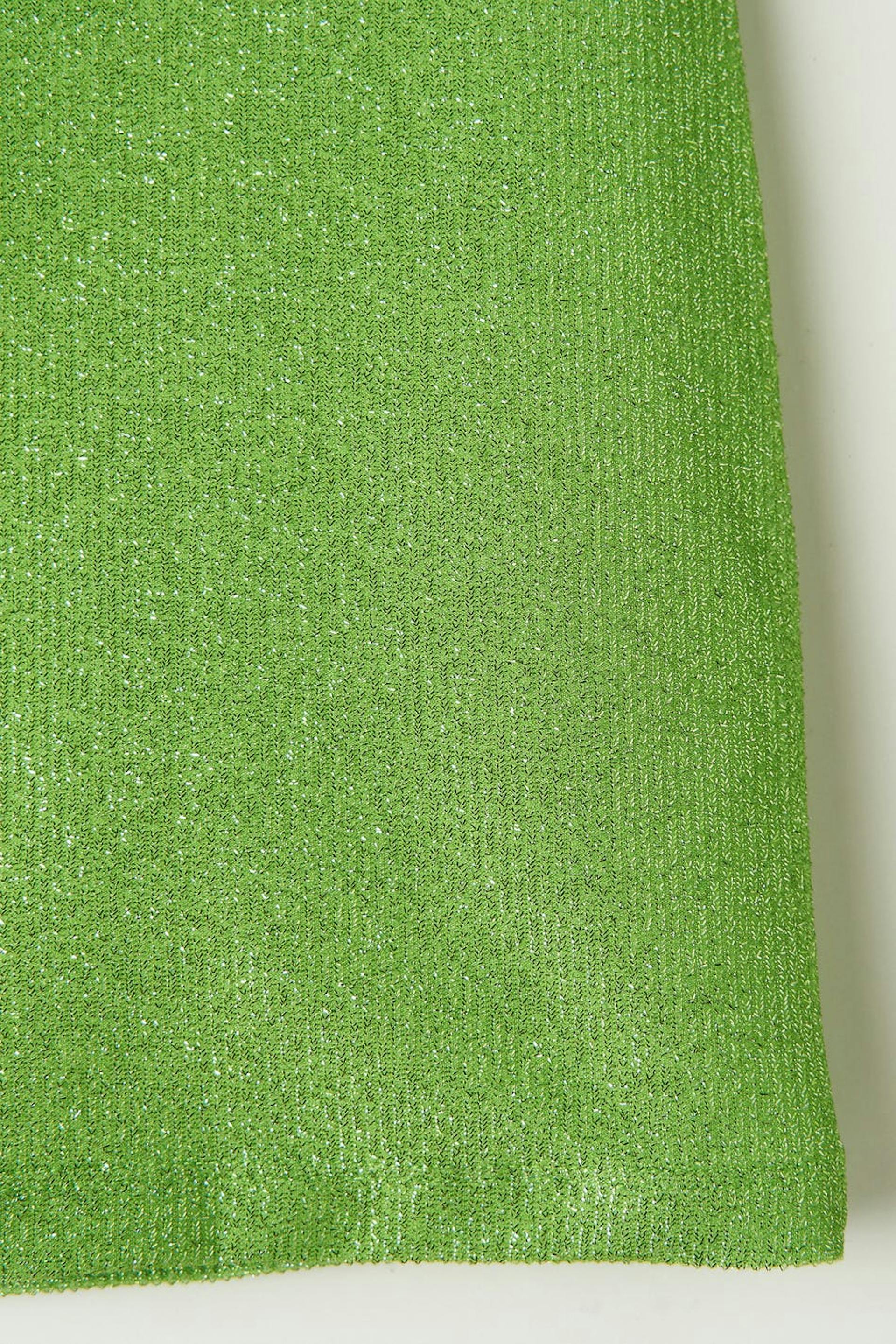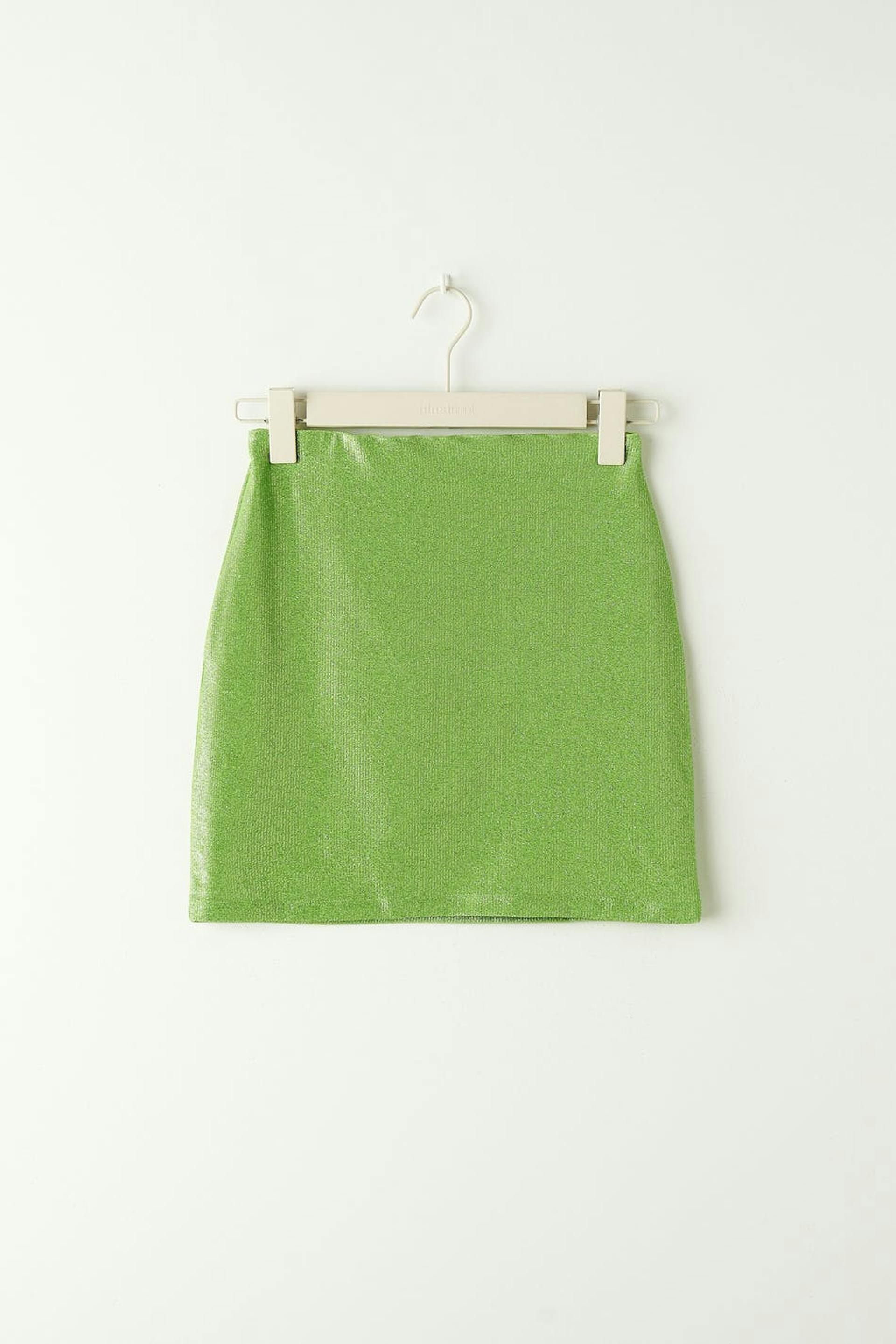 Mini rok met gevoerde binnenkant. De rok is groen en heeft elastiek aan de taille.