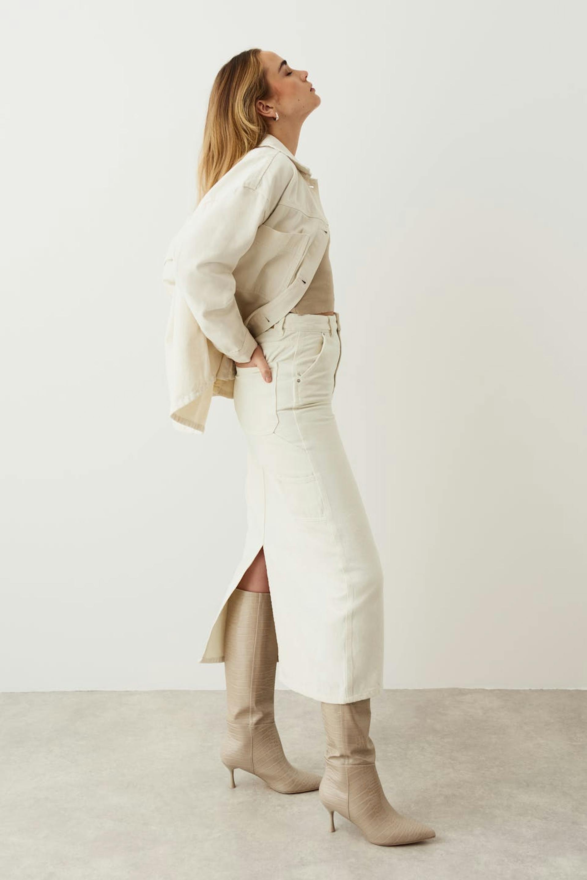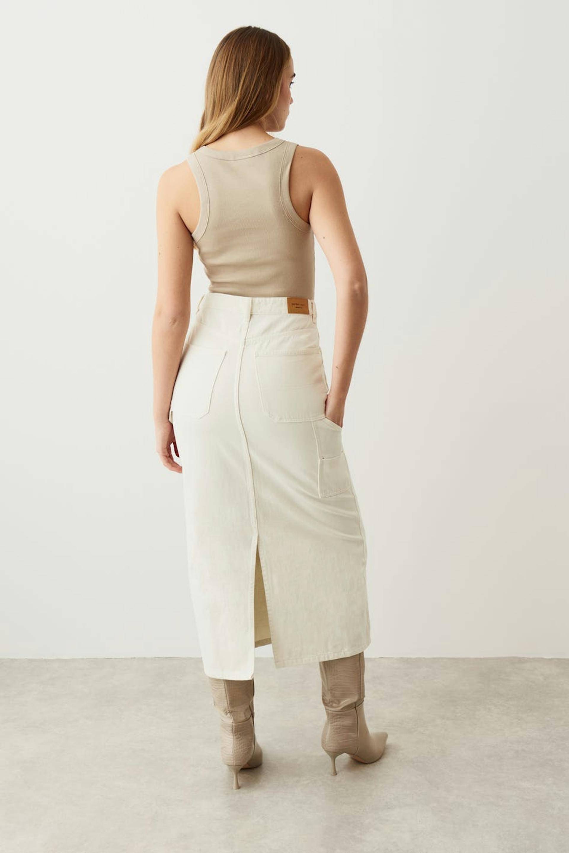 Carpenter long denim skirt