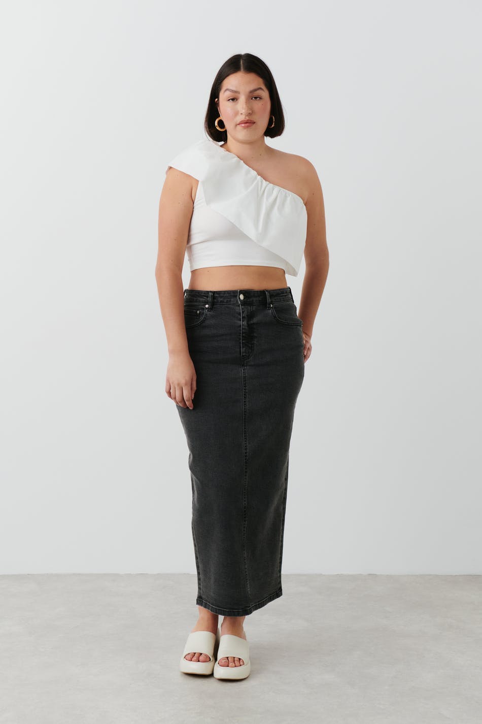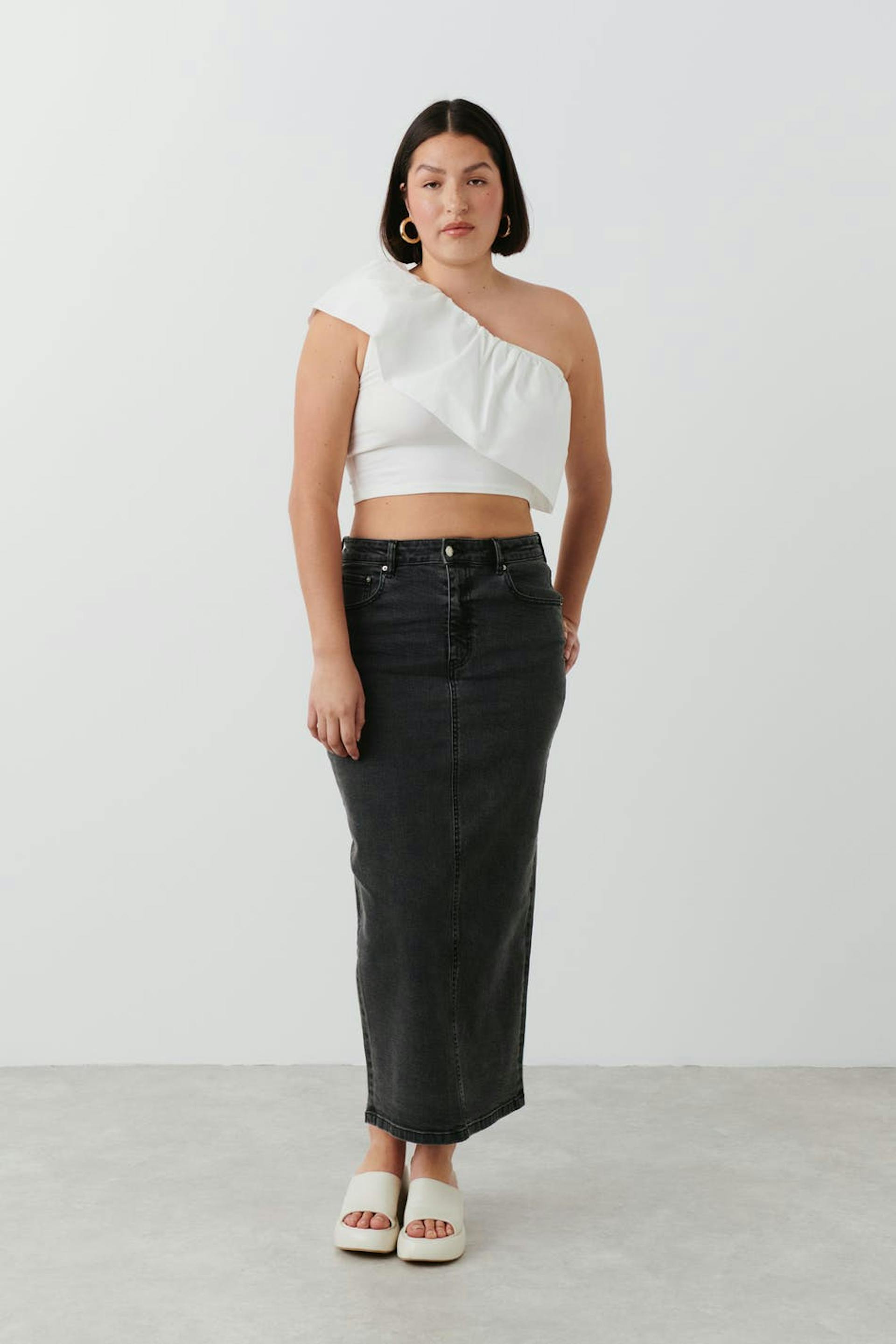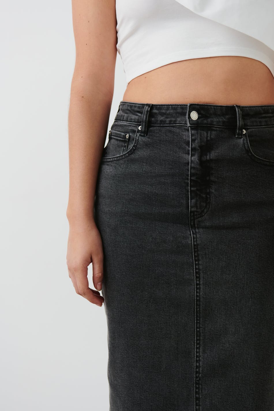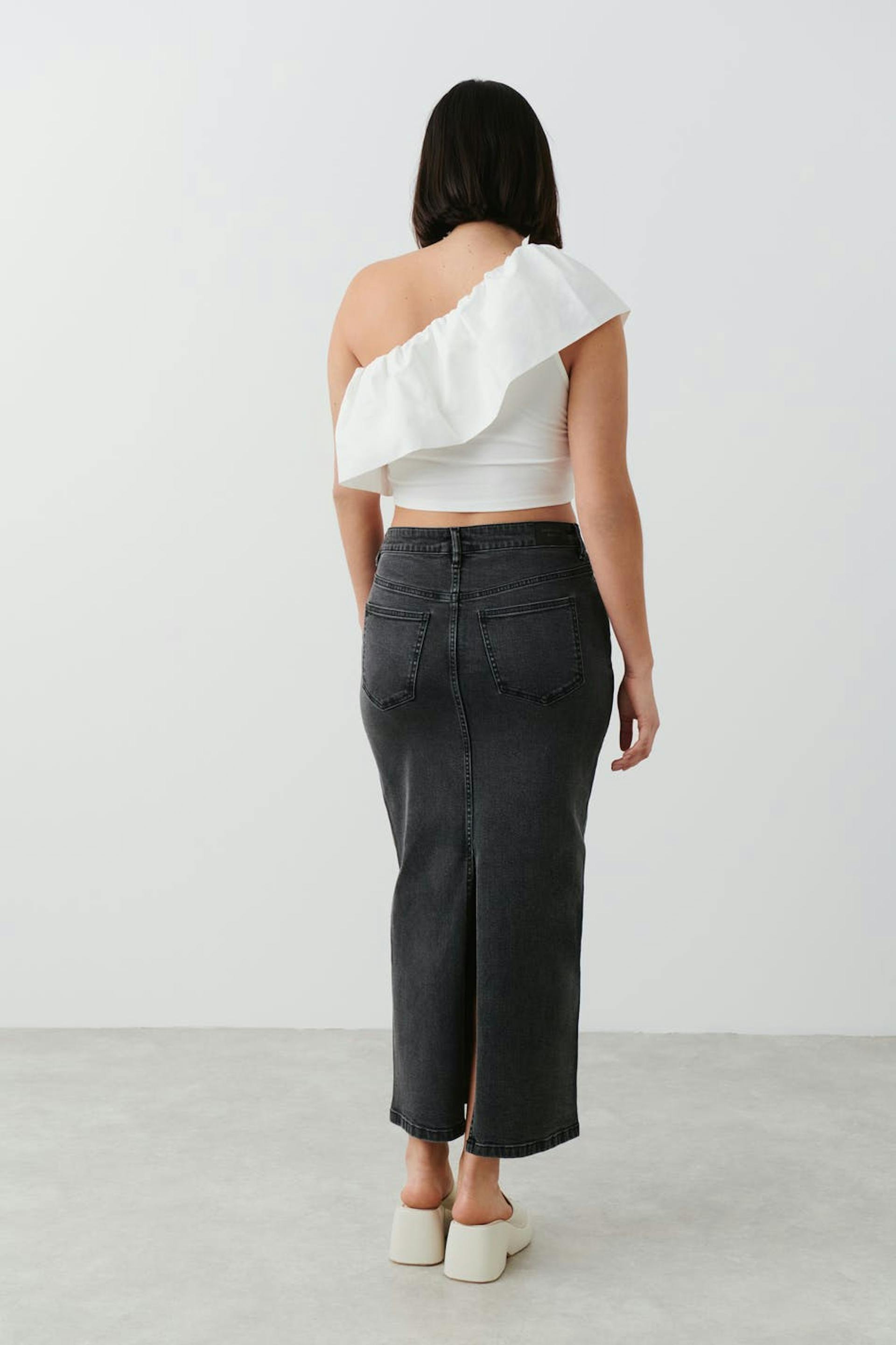 Column denim skirt