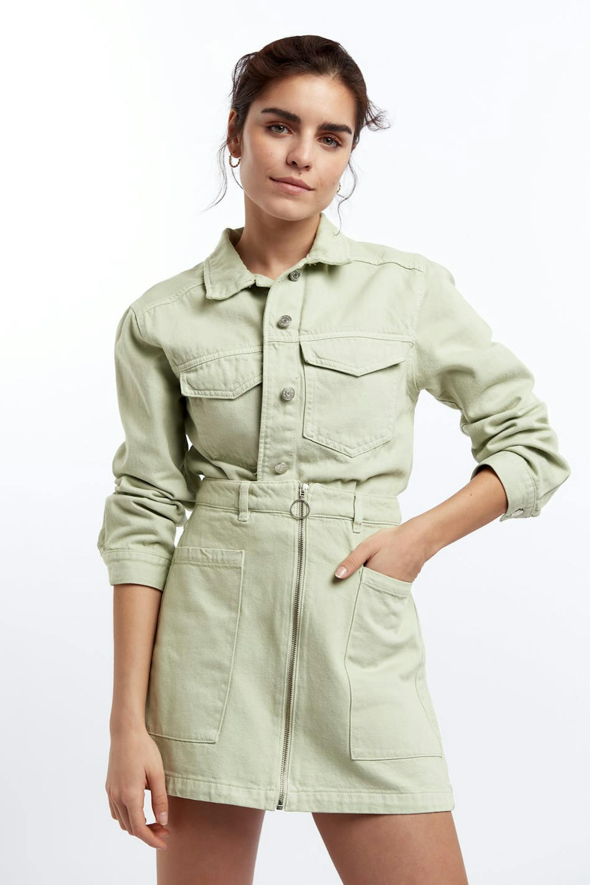 Denim skirt with high waist, big pocket and zip front closure. 100% cotton, no stretch in both solid twill colors and denim wash. Thanks for supporting more sustainably grown cotton through the Better Cotton Initiative. Supplier: Shasha Garments Ltd Prod.unit: SHASHA GARMENTS LTD