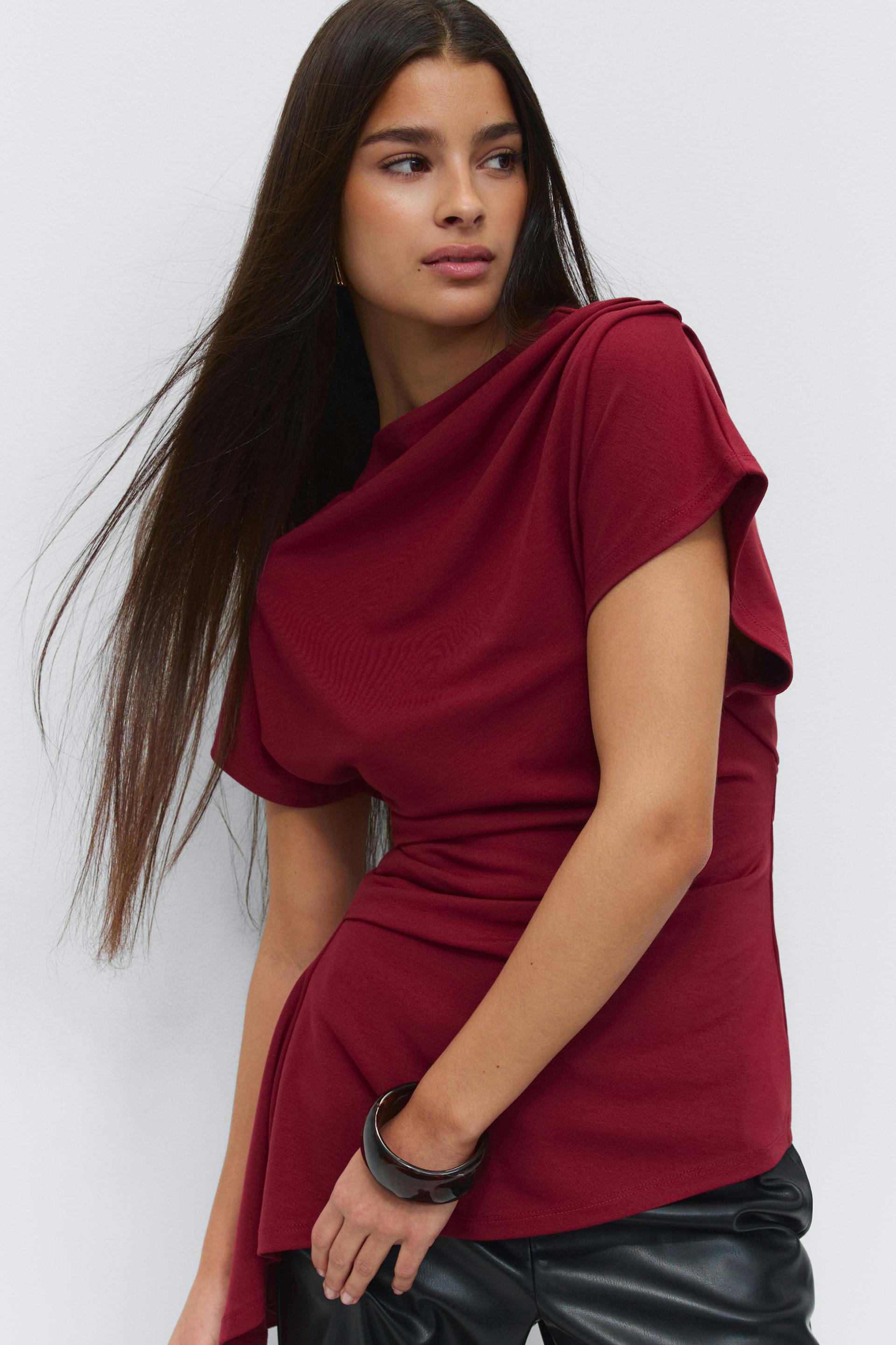 Asymmetric funnel neck top