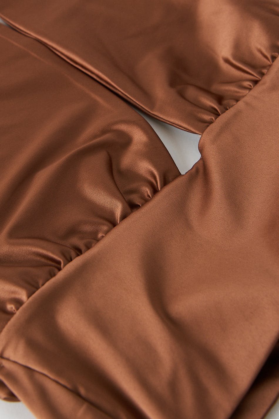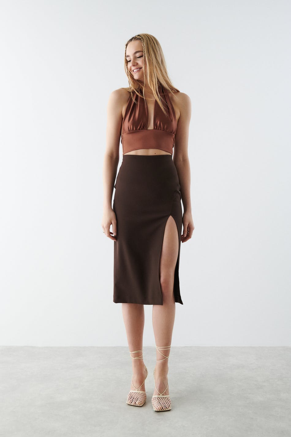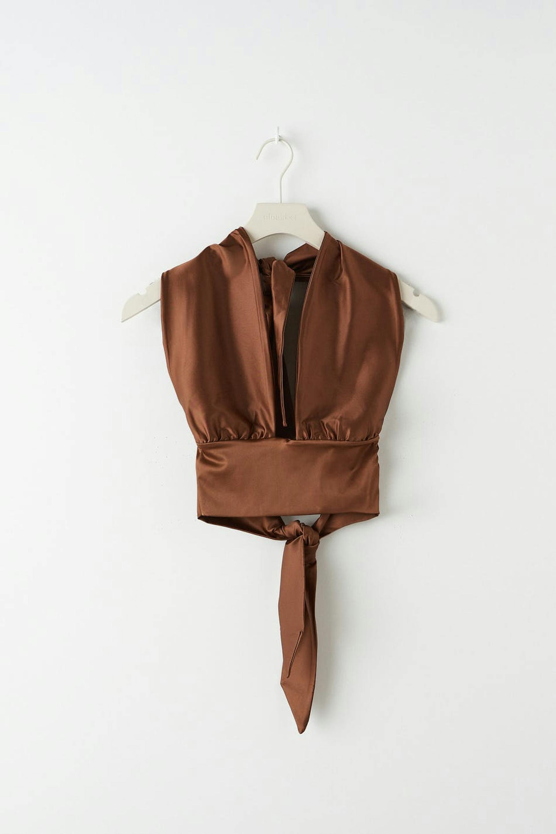 Topje met een open rug. Het topje is perfect voor het feest en bruin en heeft zelfbinders op de rug. Het is perfect voor het feest.