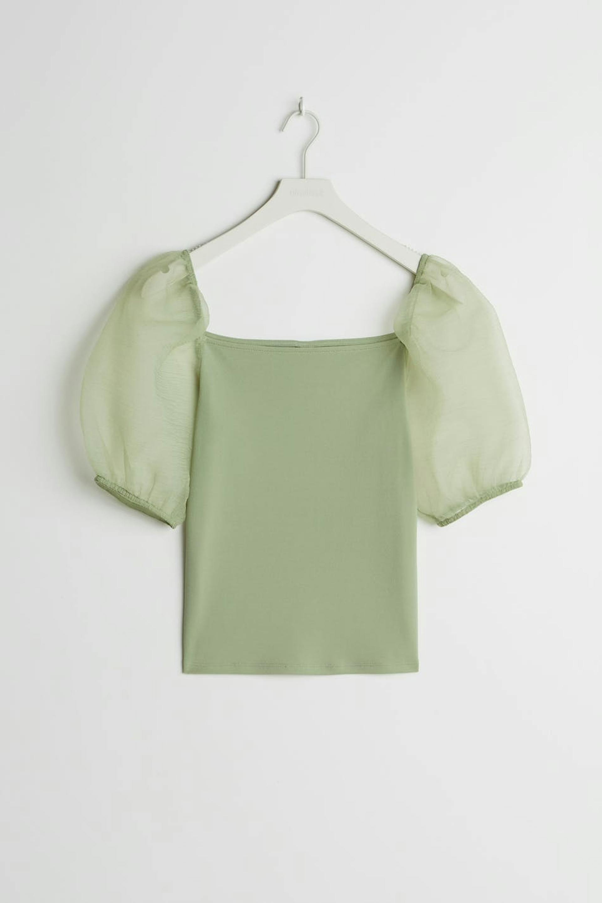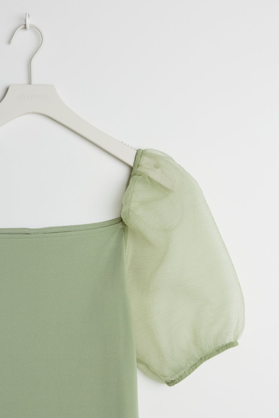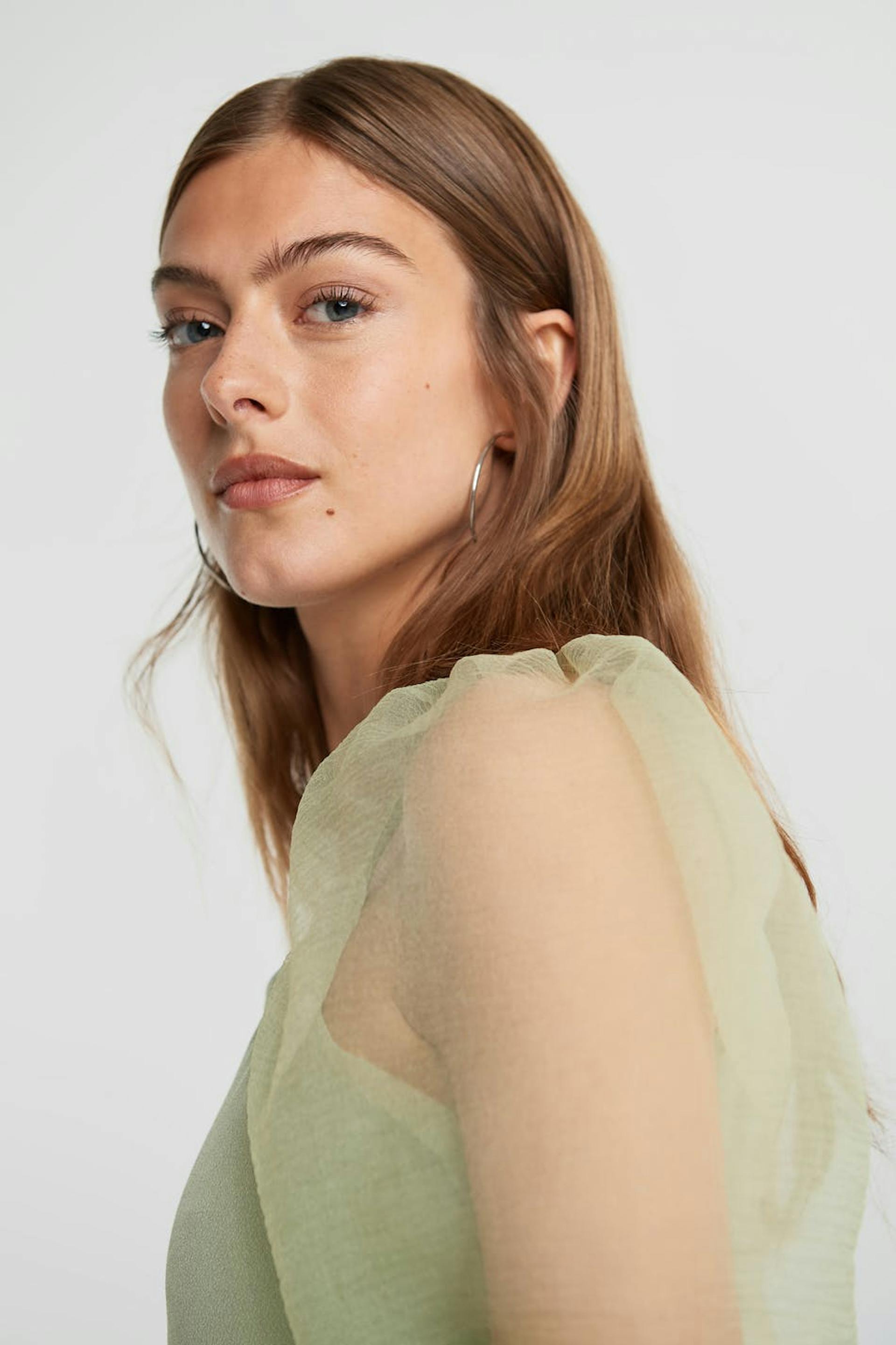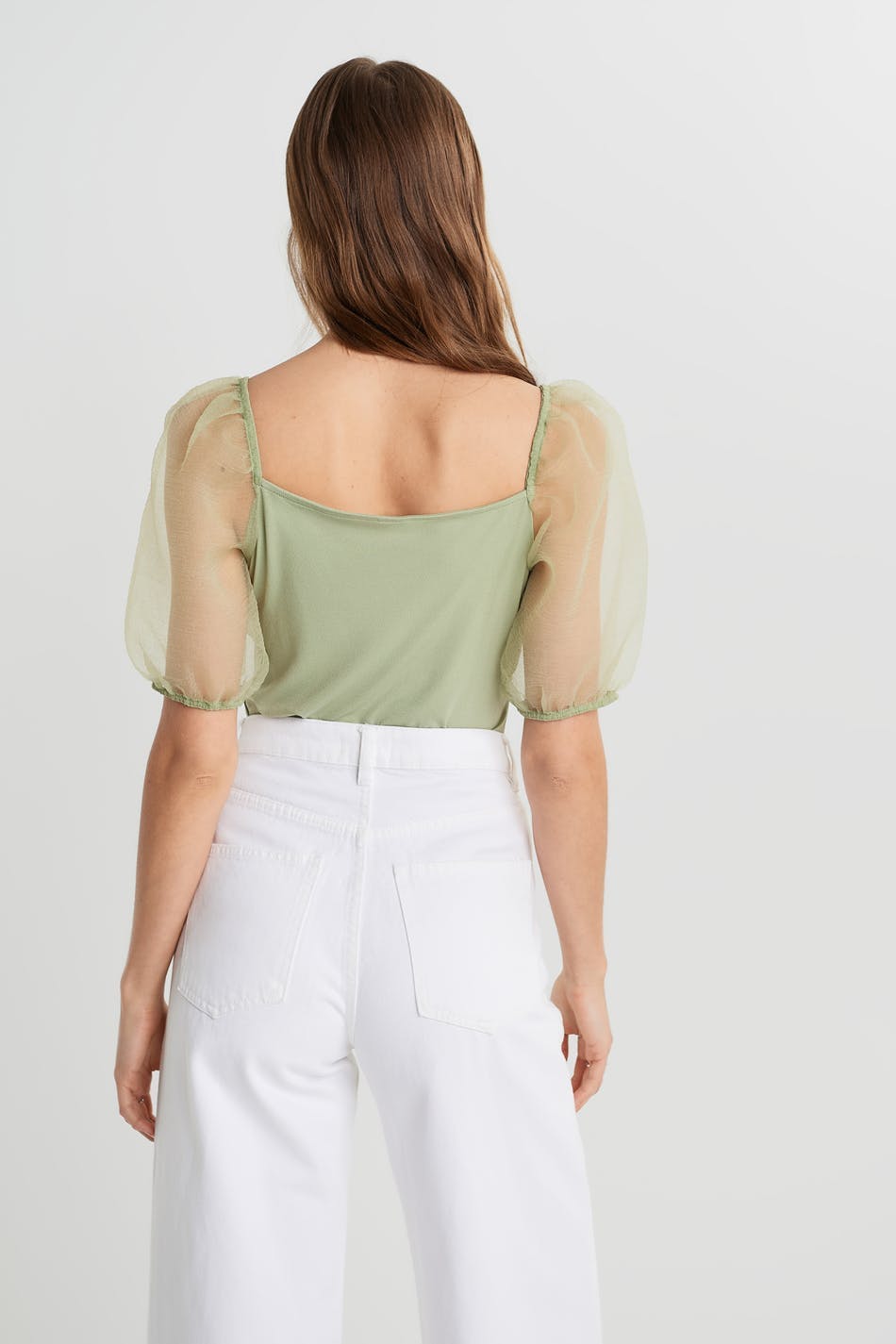 Party top with sleeves in organza fabric. Body in soft jersey. Supplier: Pick & Choose AB Production unit: Melek Tekstil - Yahya Körsu