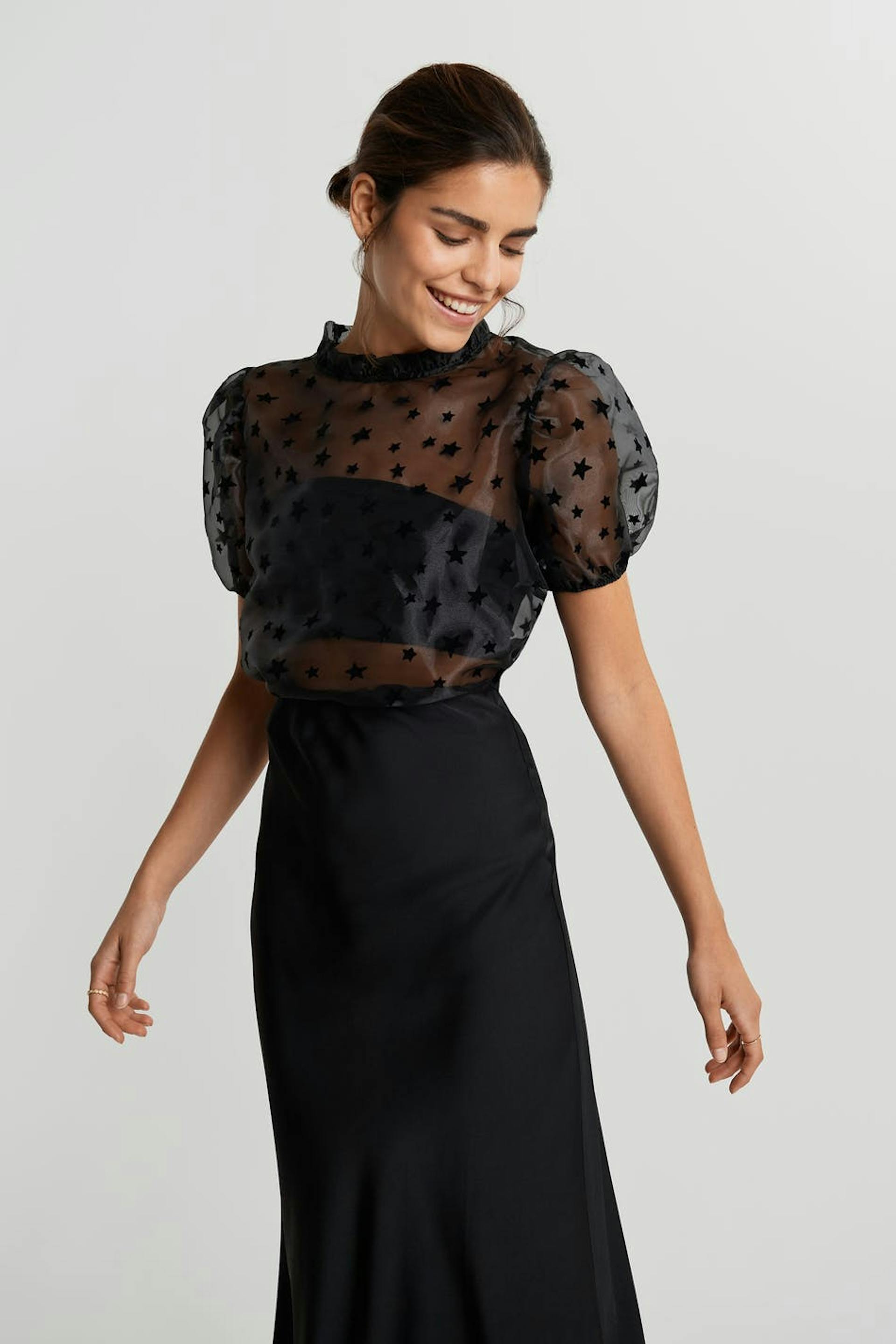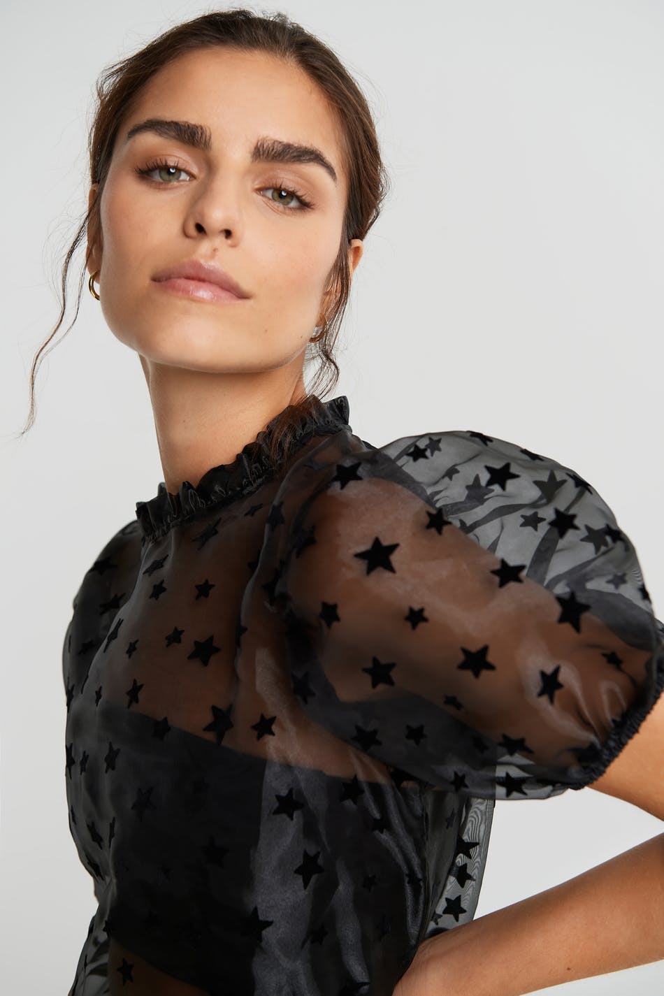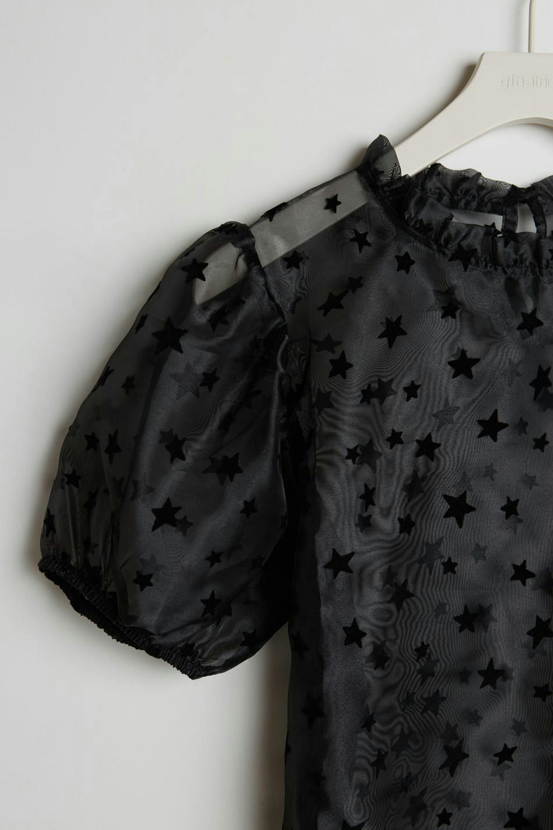 Organza top with short sleeves. Star details all over the top. Supplier: Finteks Tekstil ve Hali San Ltd Sti Production unit: Finteks Ladik Subesi