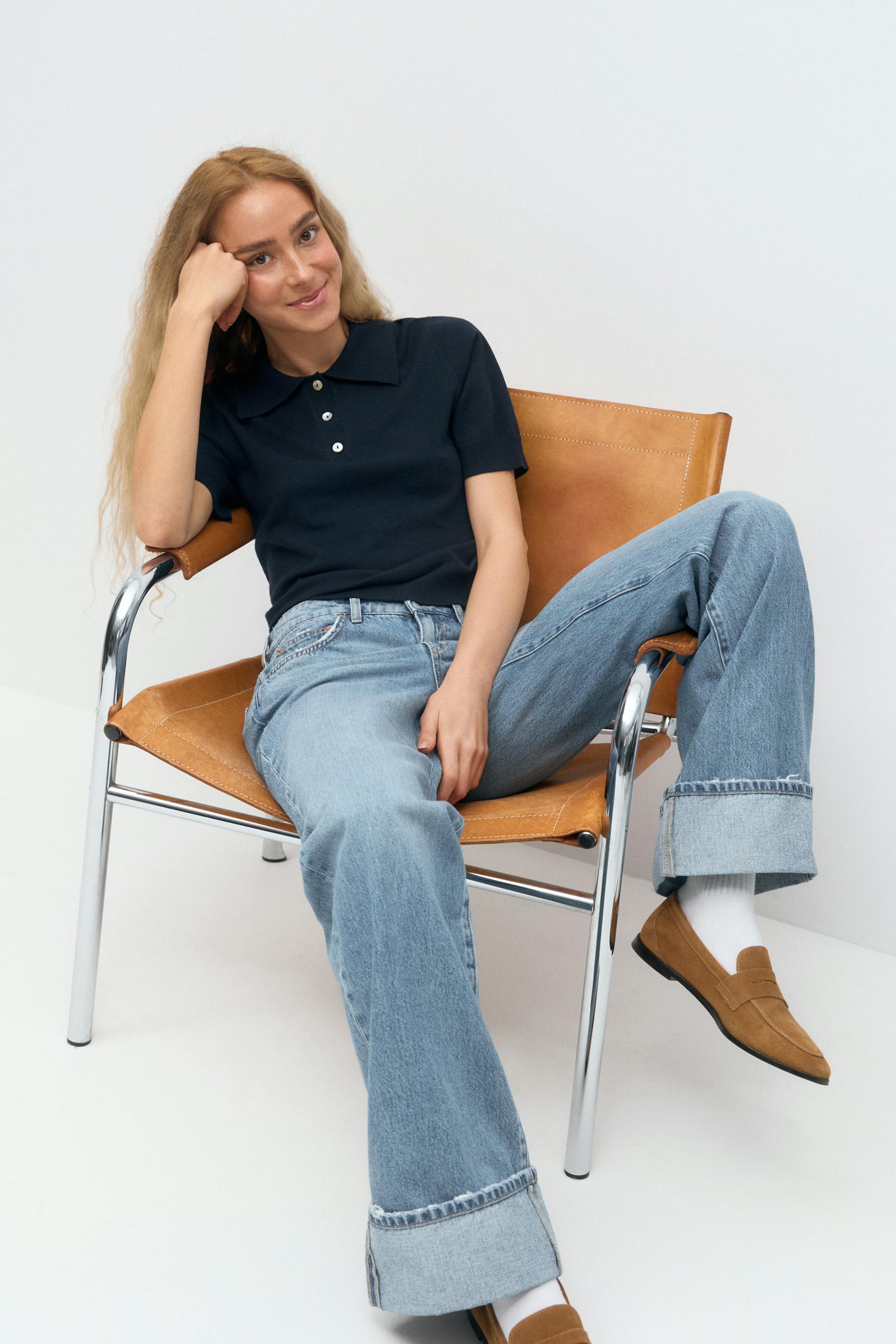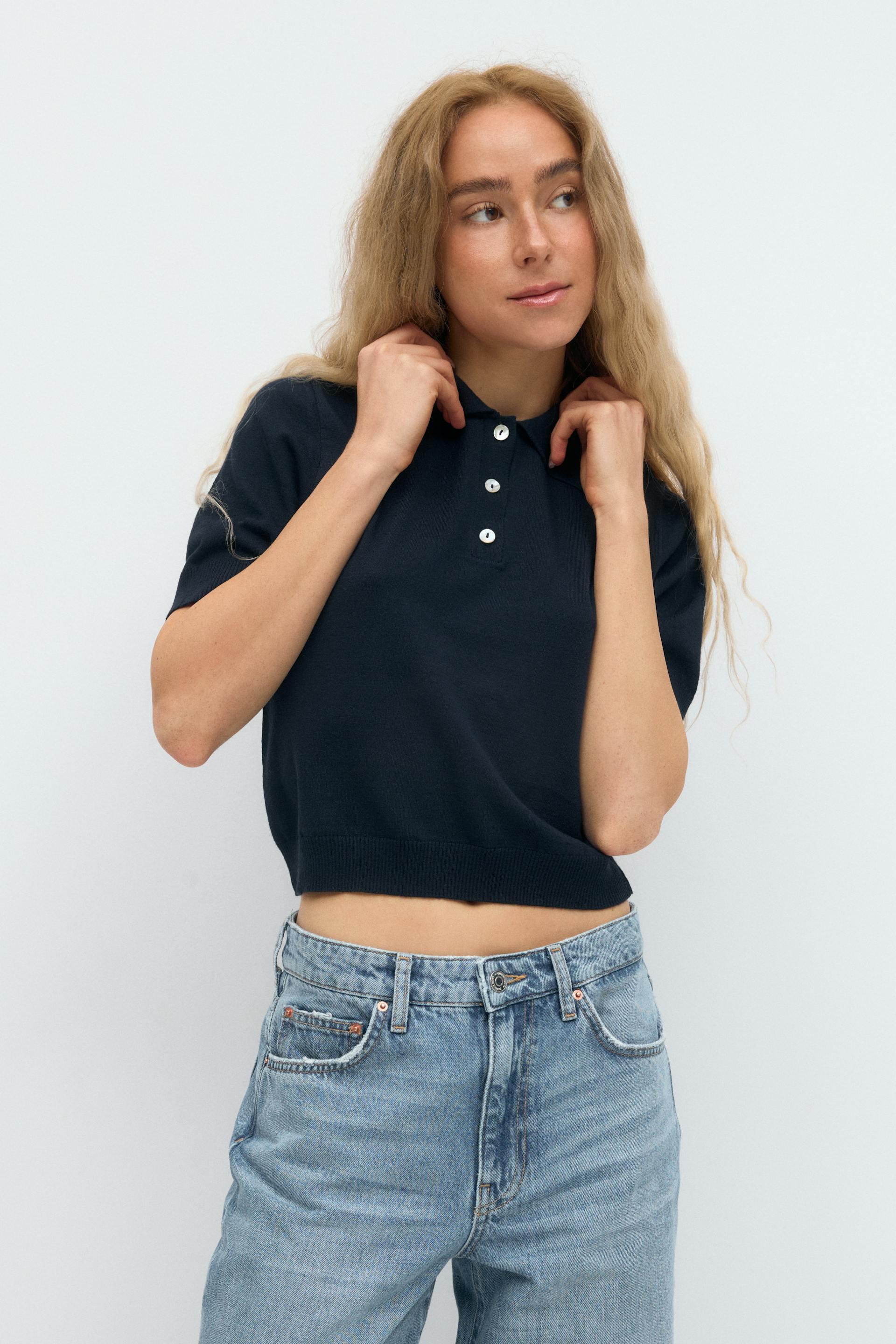 Short sleeve knit collar top