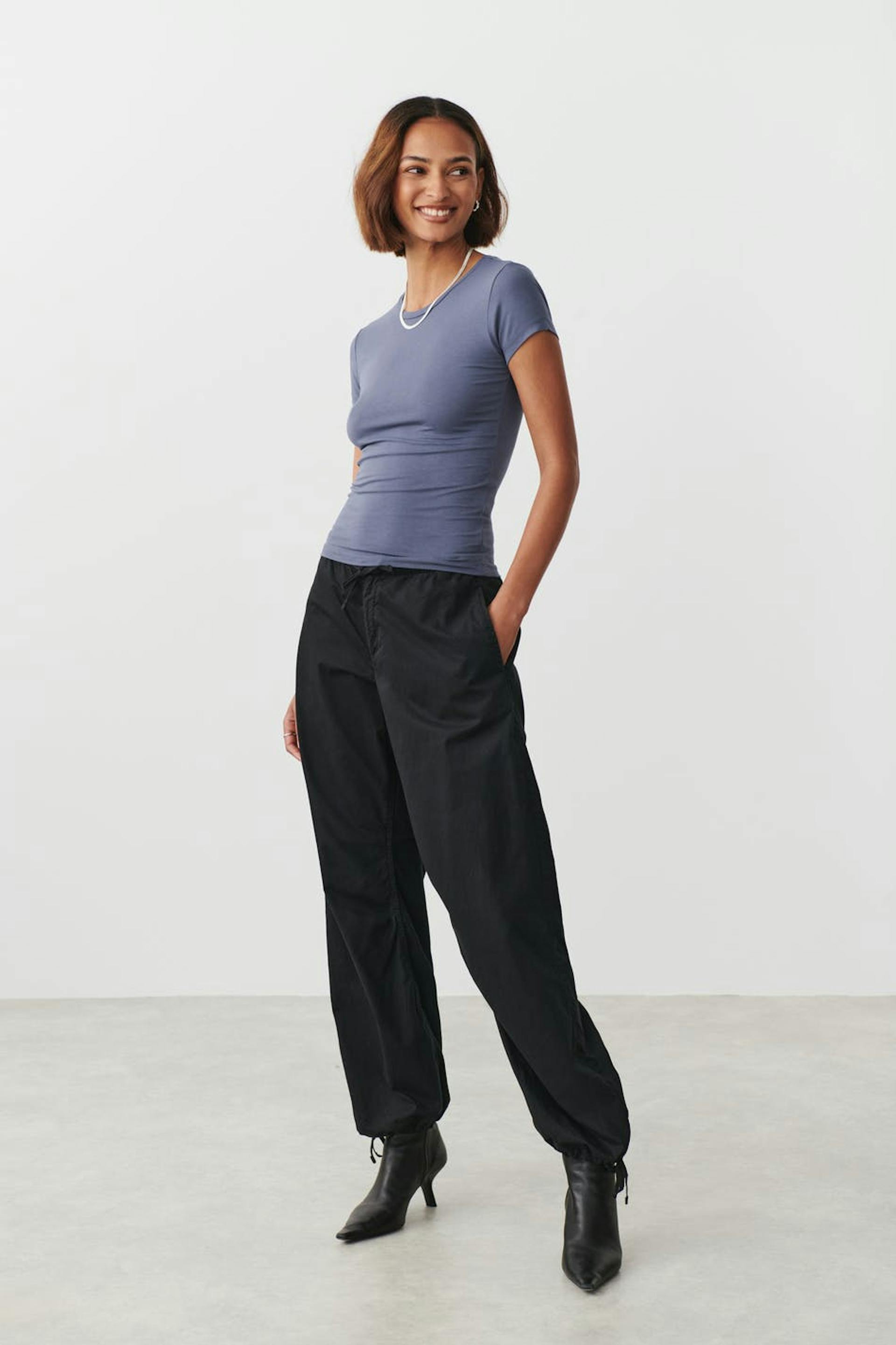 Het model draagt maat S en is 177cm groot