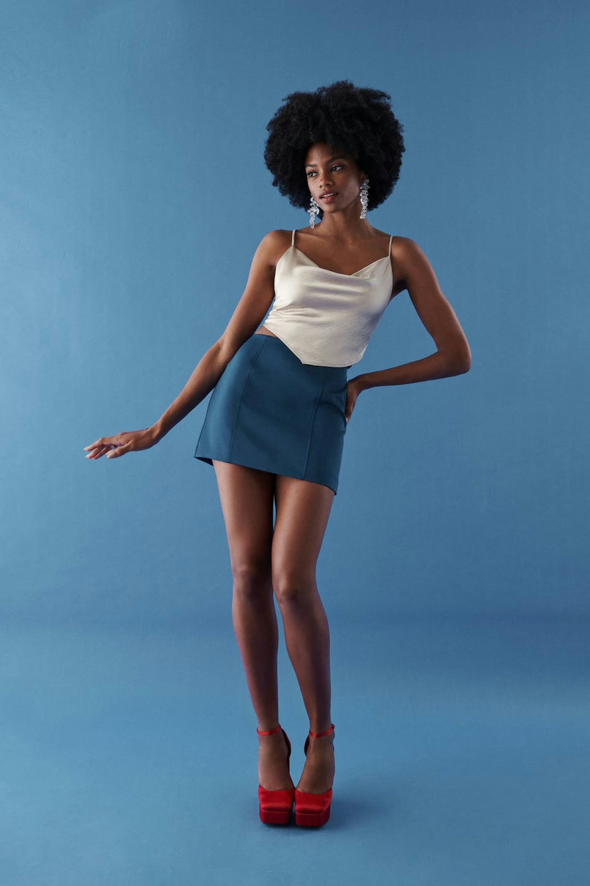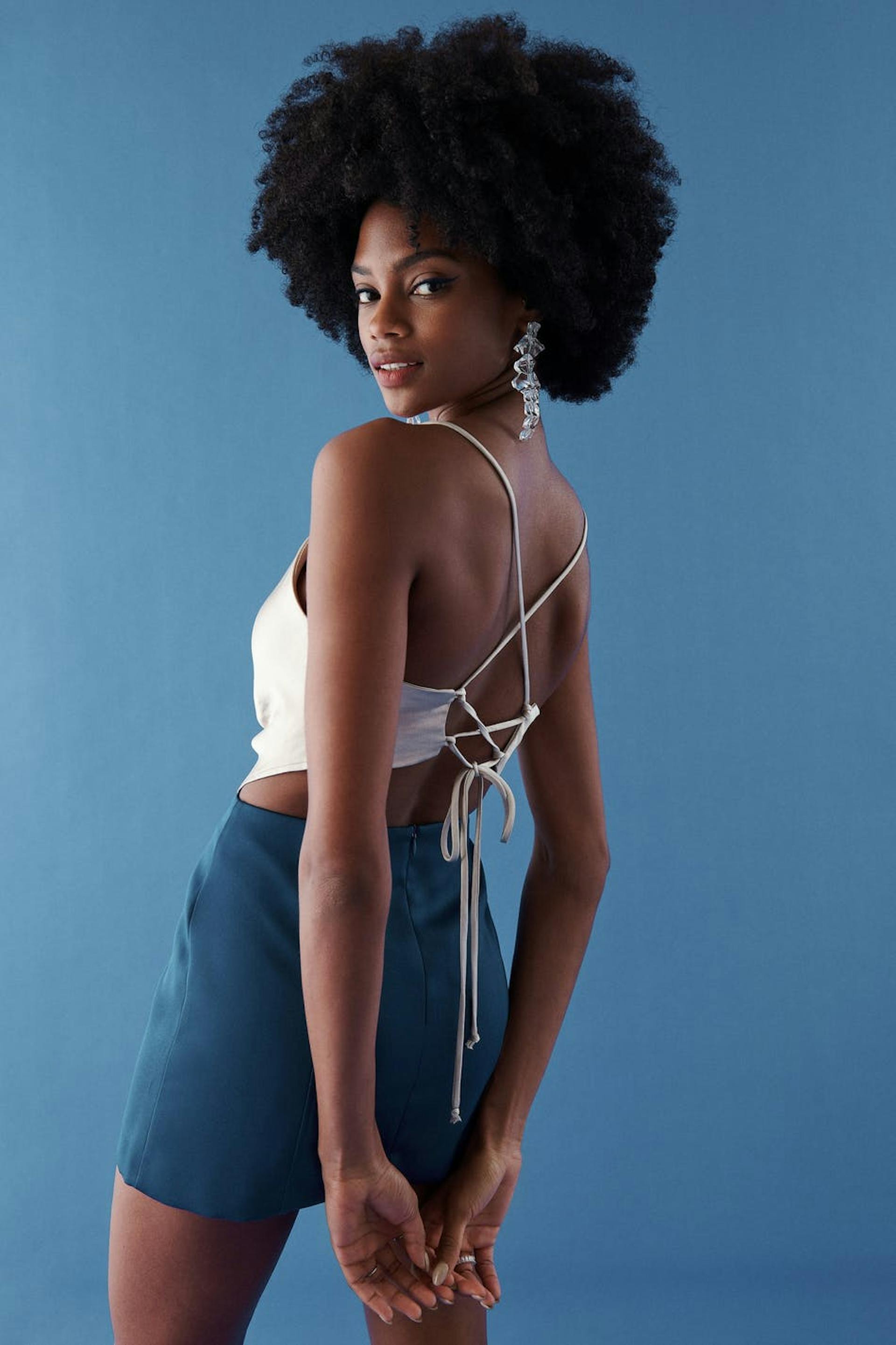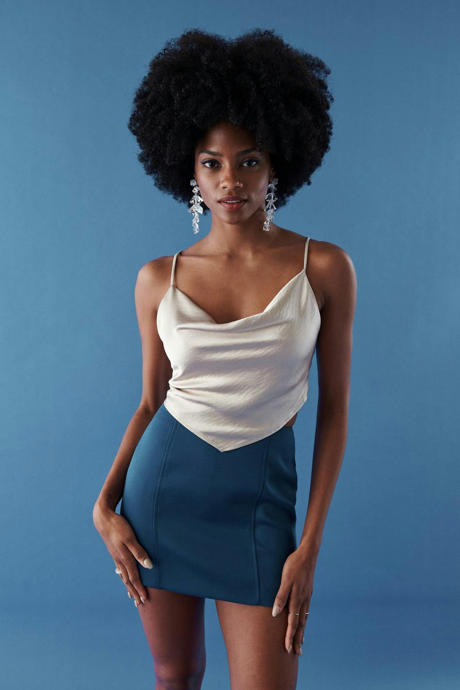 Het model draagt maat 36 en is 176 cm groot