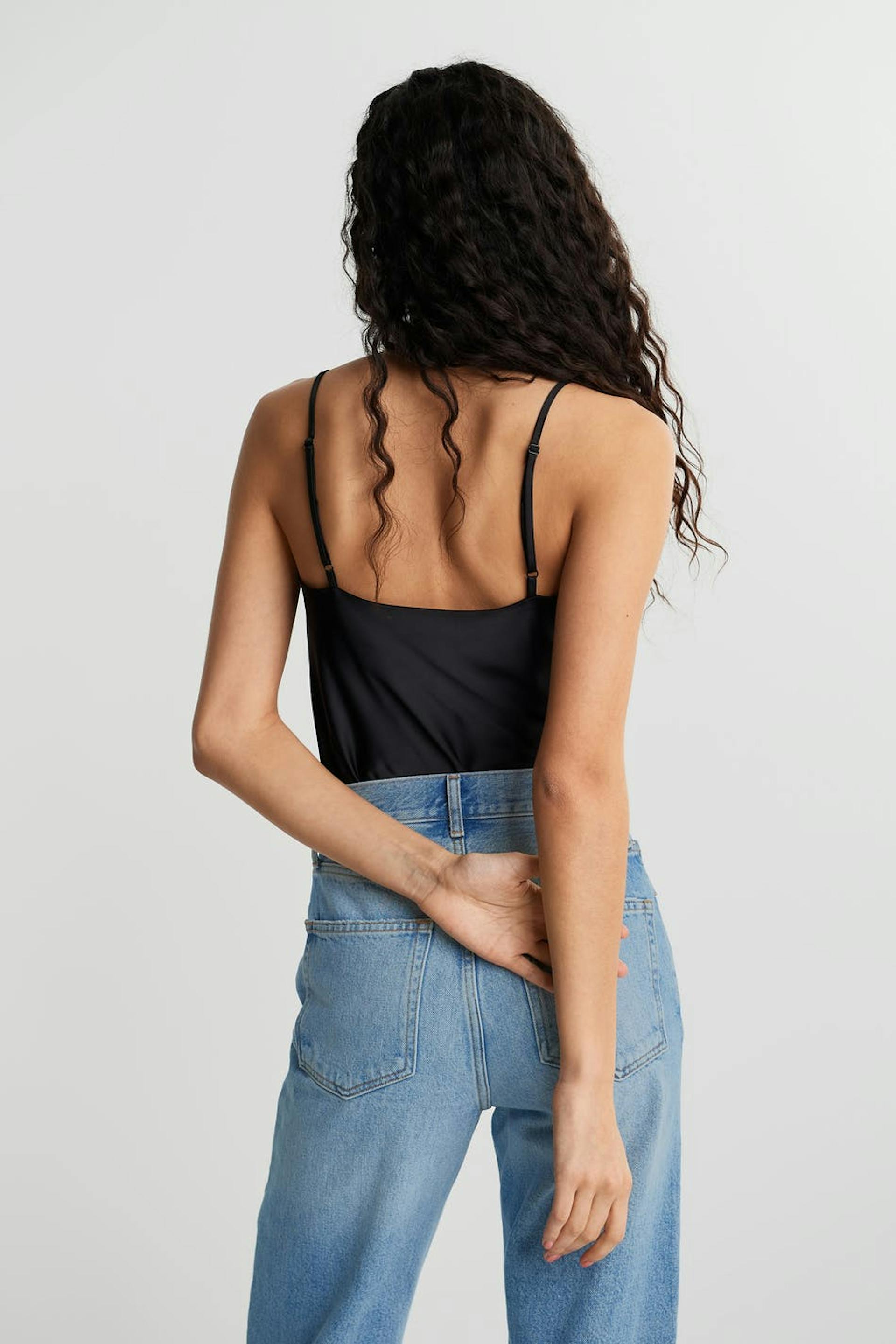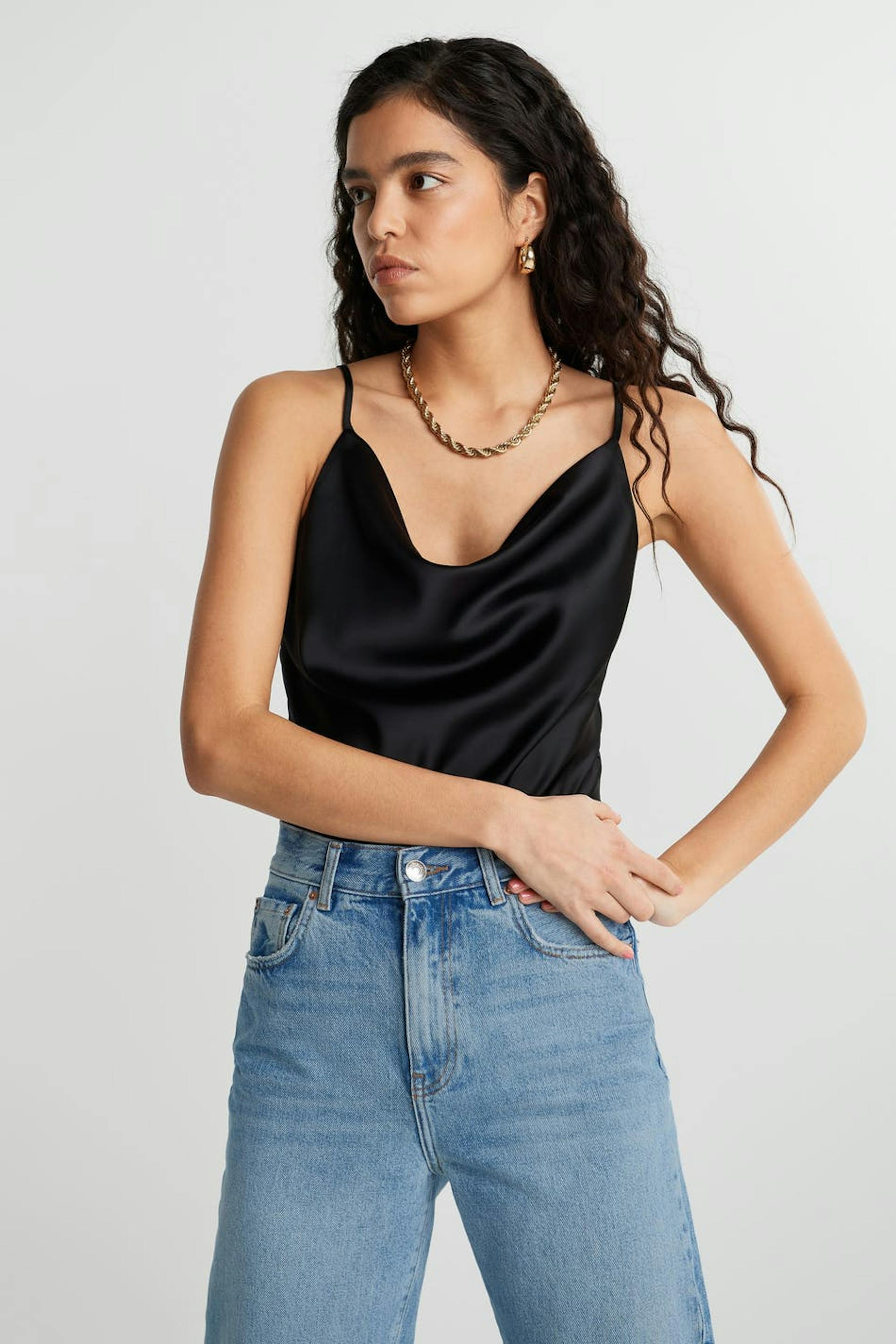 Top met een normale pasvorm. De top is perfect voor het feest en zwart en heeft dunne en verstelbare schouderriemen. Het heeft een gedrapeerde design aan de halslijn.