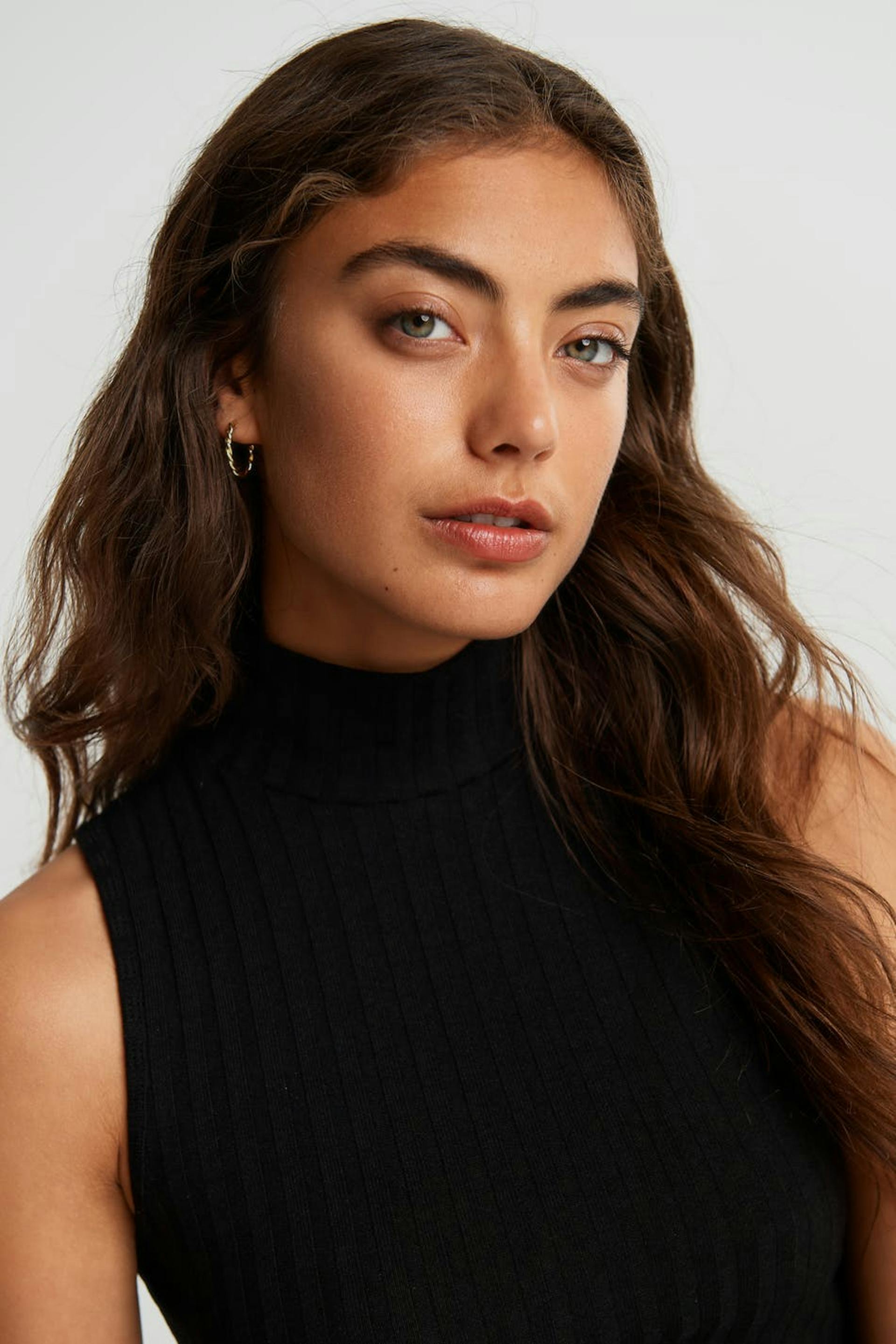 Sleeveless rib tank top. Tight fit. Part of a set.