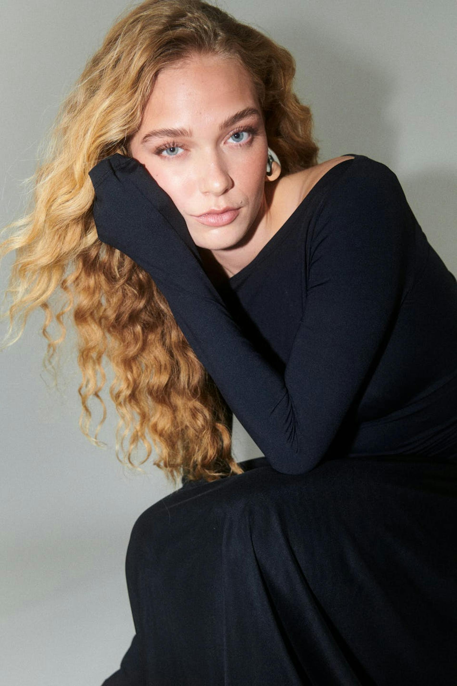 Het model draagt maat S en is 179 cm groot