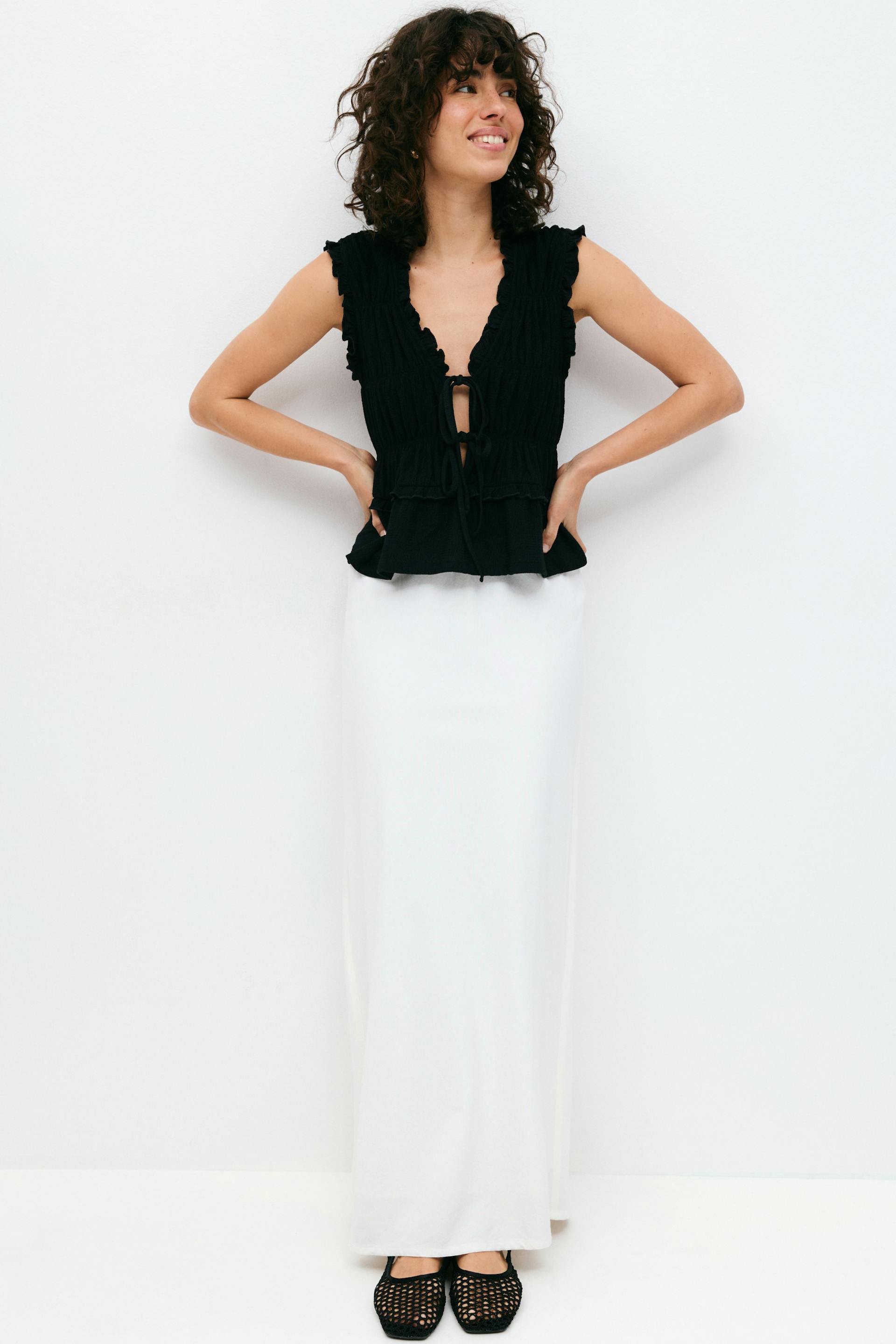 Frill tie front top