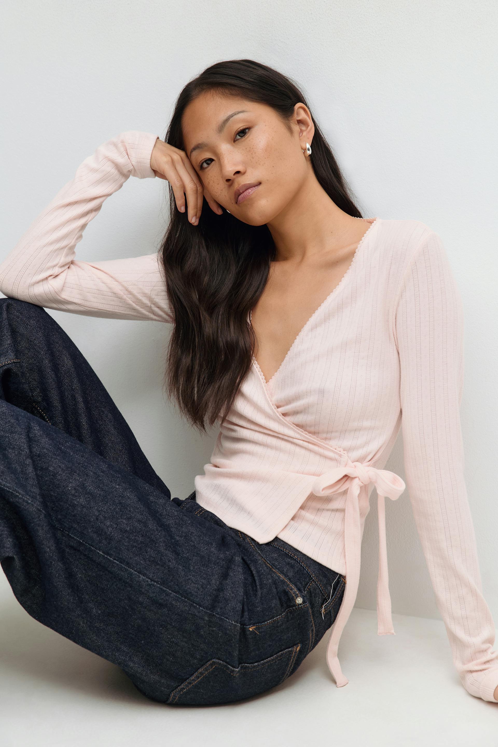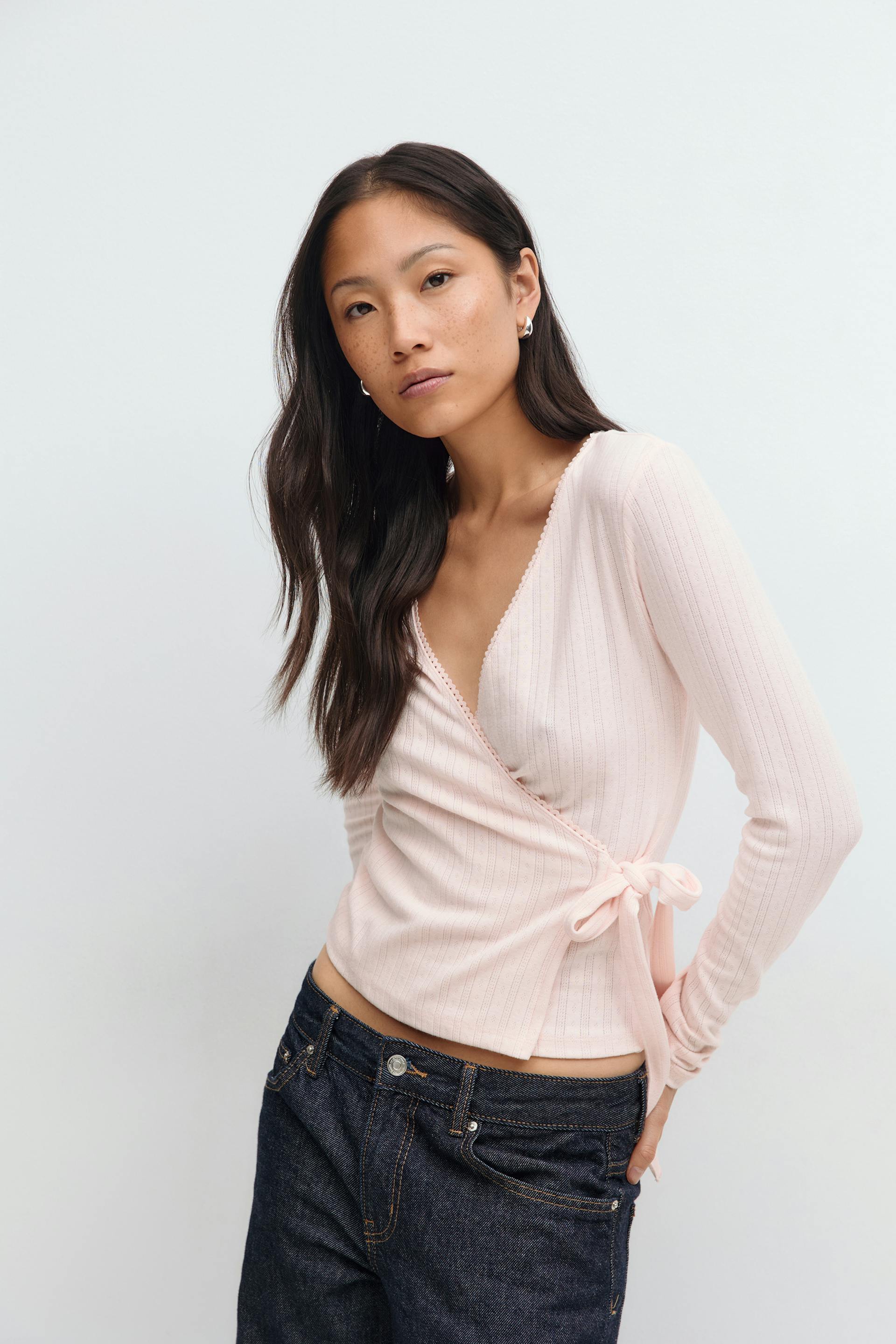 Pointelle wrap top