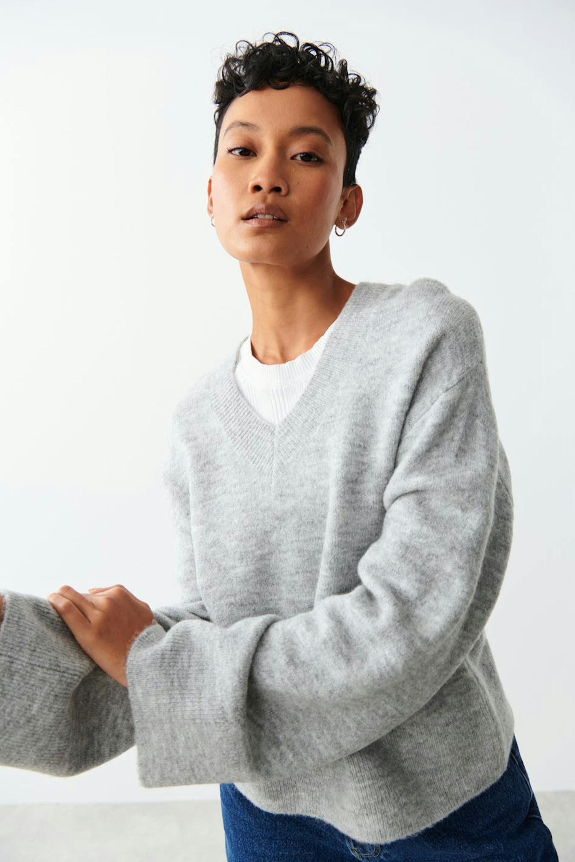 V-neck knitted sweater