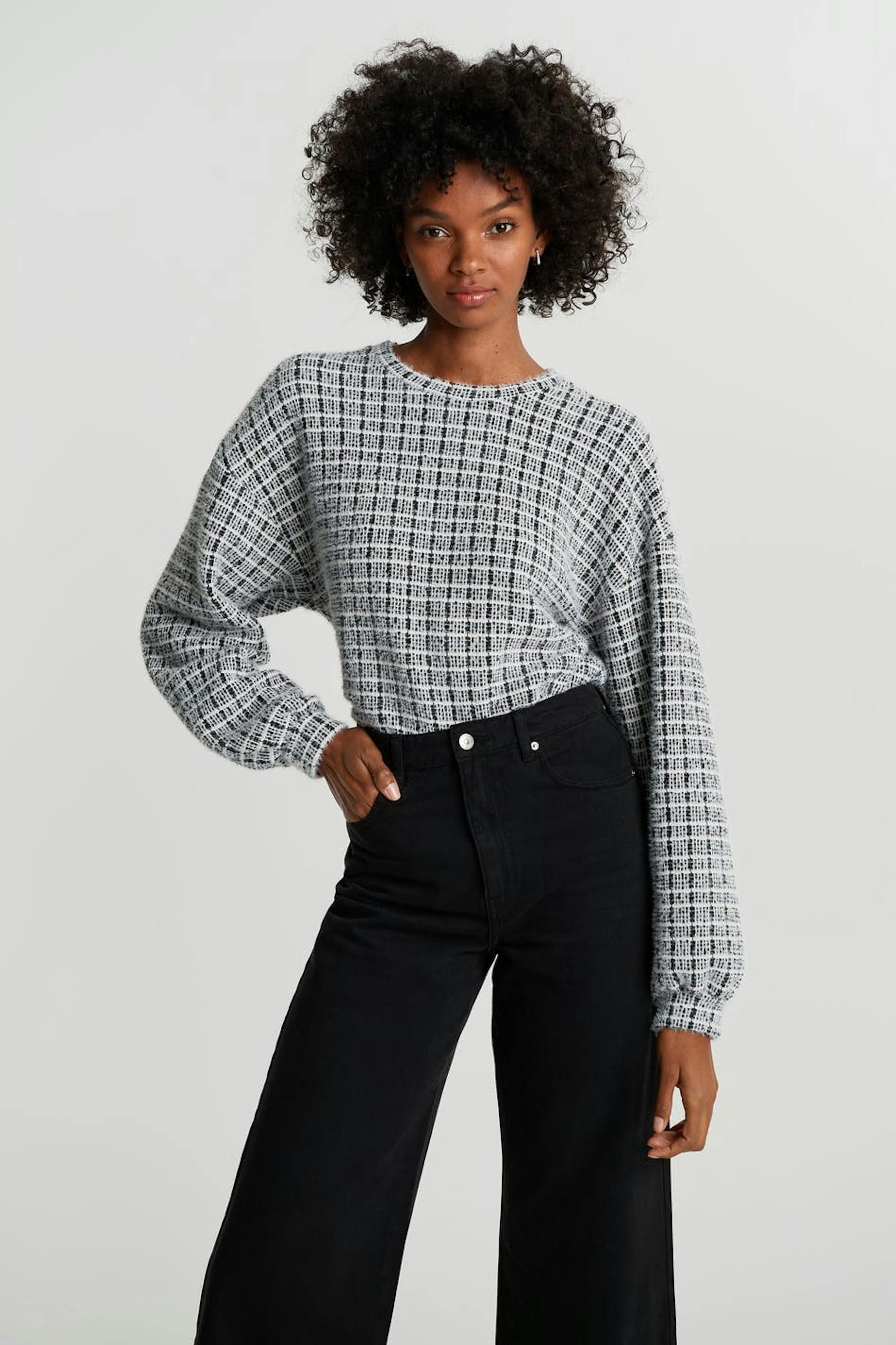 Jersey sweater in tweed look quality. Soft materialand boxy fit with volume sleeve. Supplier: Kardem Tekstil San ve Tic A.S. Production unit: Kardem Kesan Fabrikasi