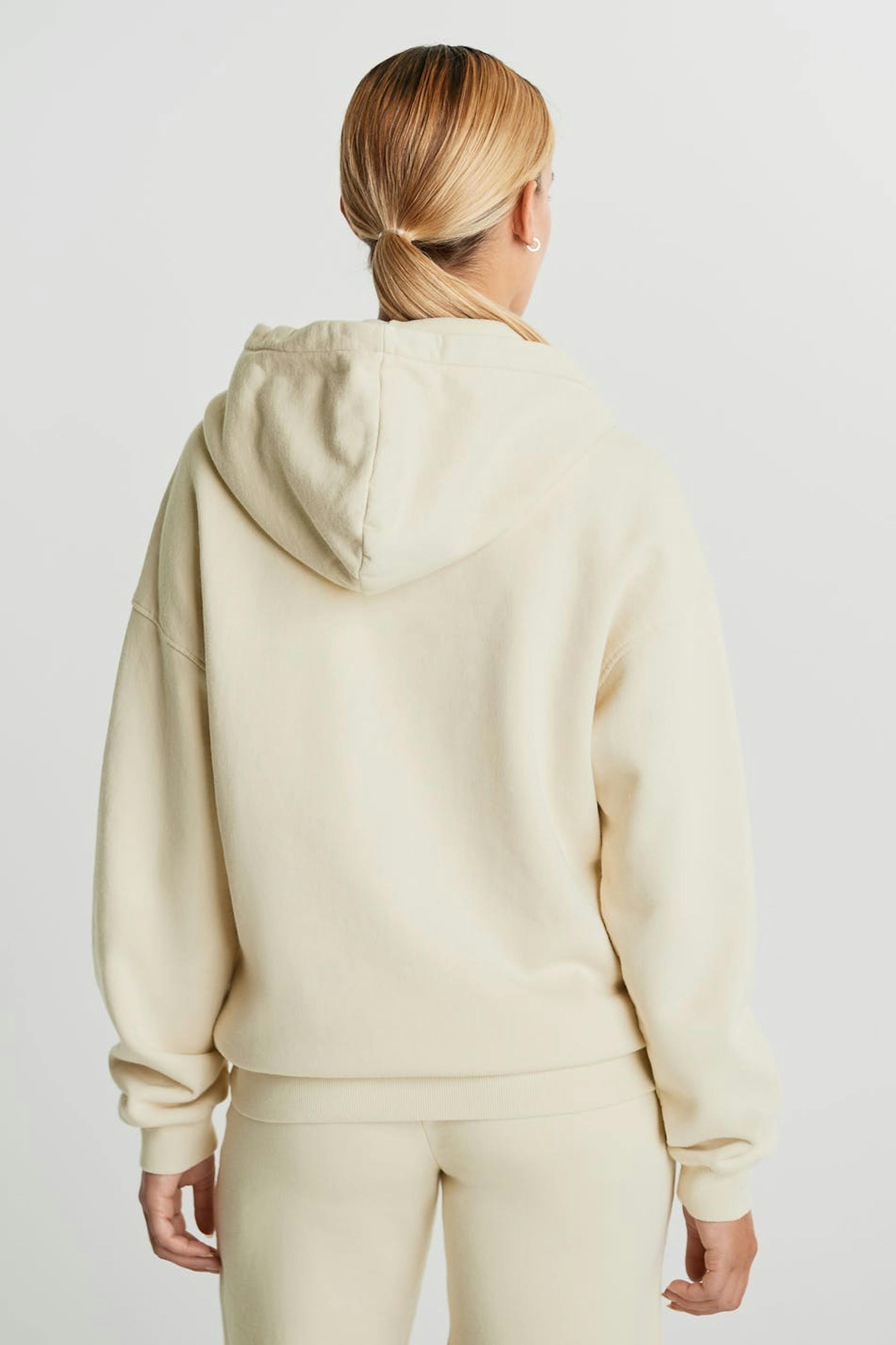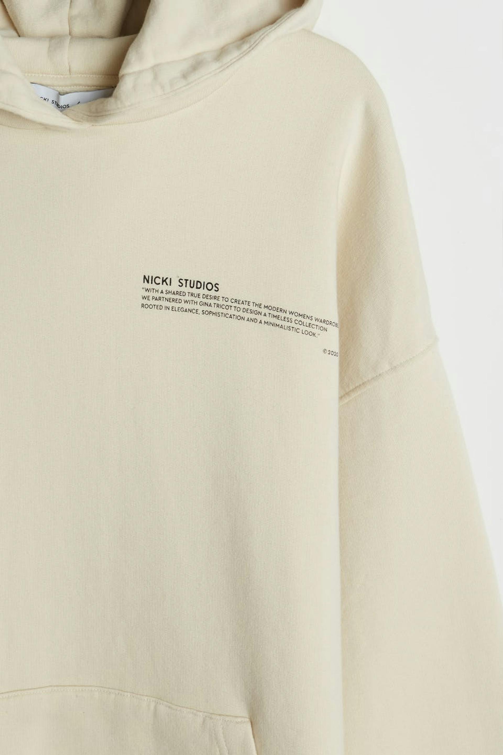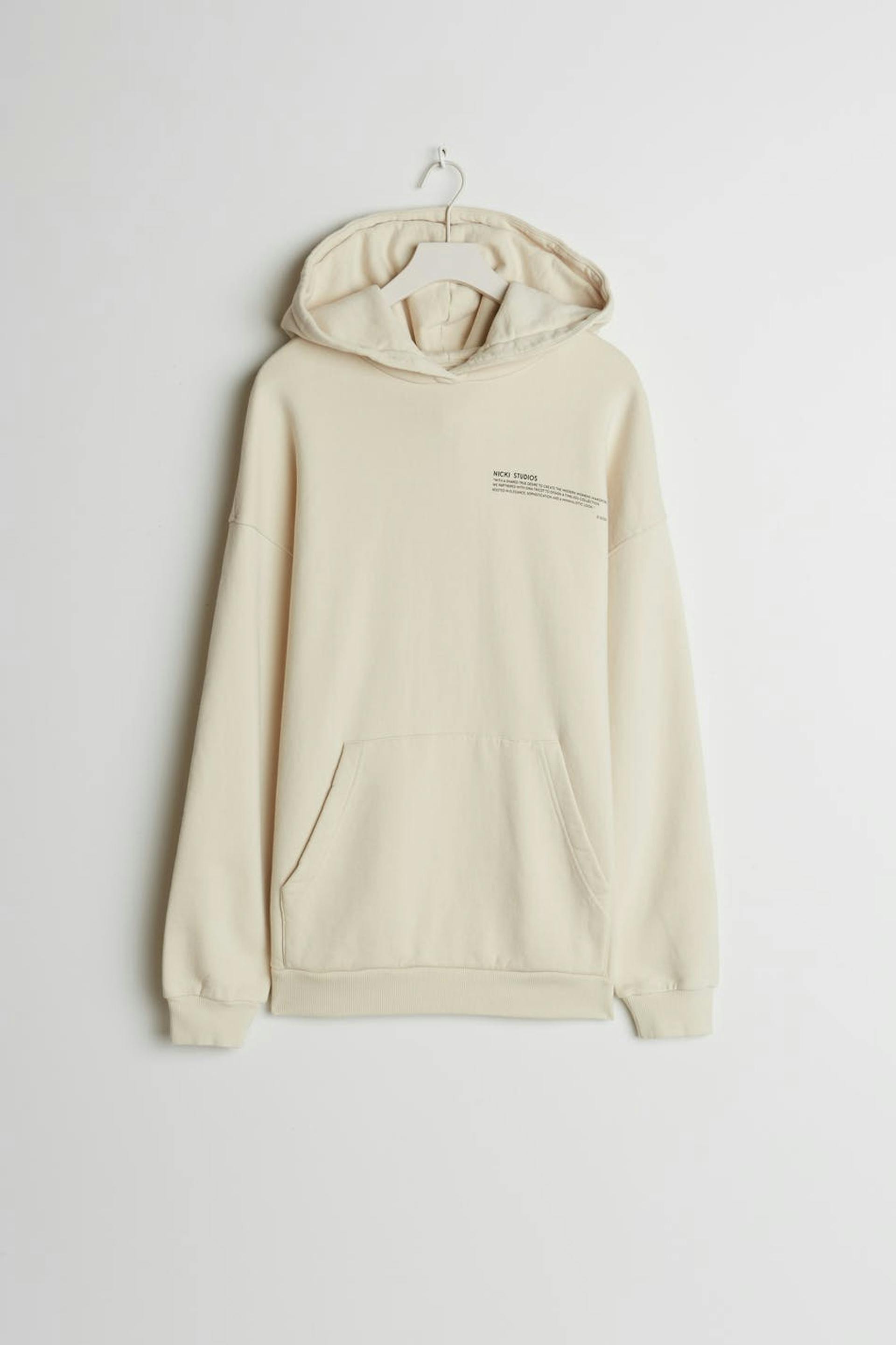 NICKI STUDIOS / Gina tricot Hooded sweater with print. Heavy cotton with inside brush. Pocket at front. Extra-long sleeves for a right NICKI oversize look. Wear with Nicki shorts for a complete look. Thanks for supporting more sustainably grown cotton through the Better Cotton Initiative Supplier: Kardem Tekstil San ve Tic A.S. Production unit: Kardem Kesan Fabrikasi