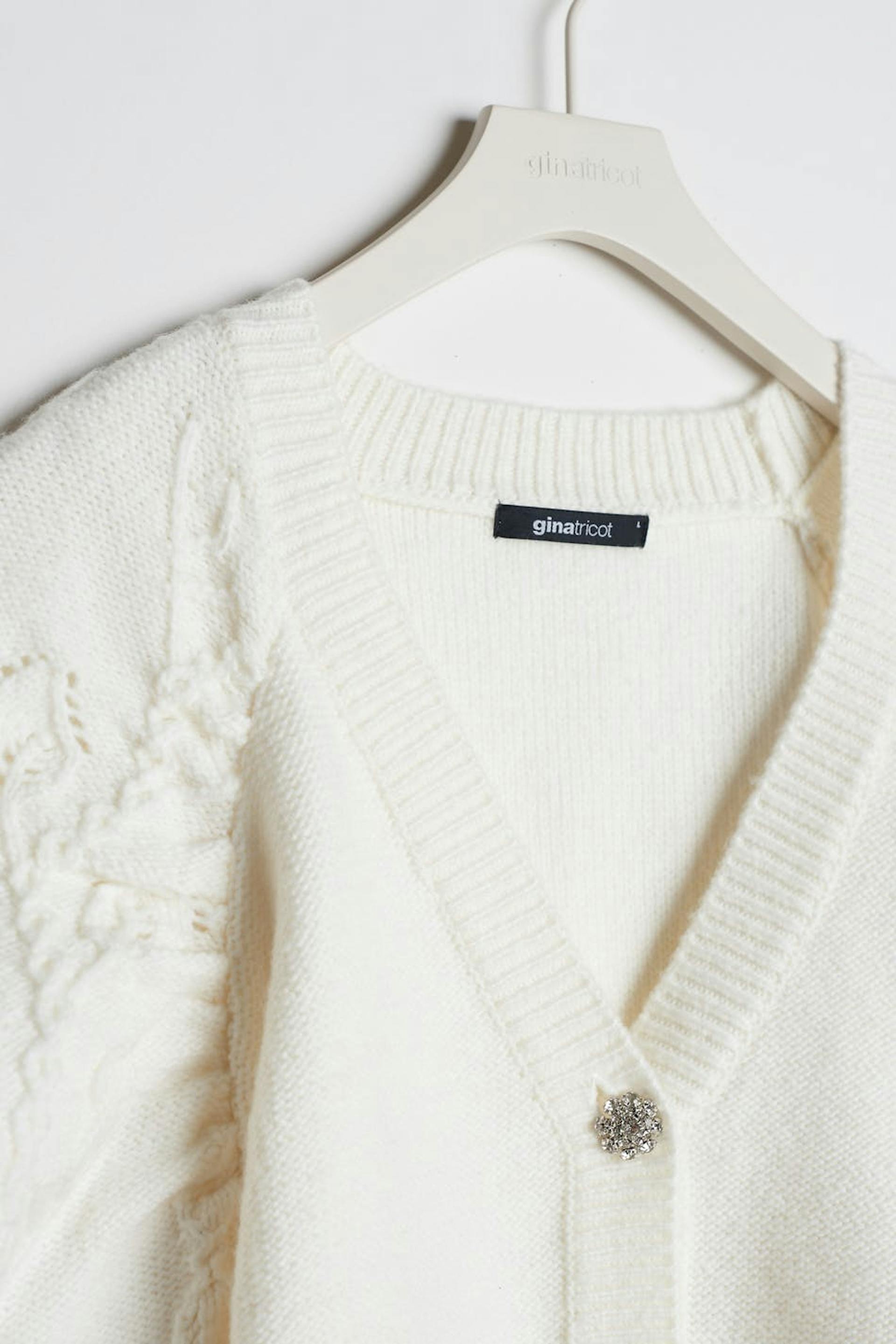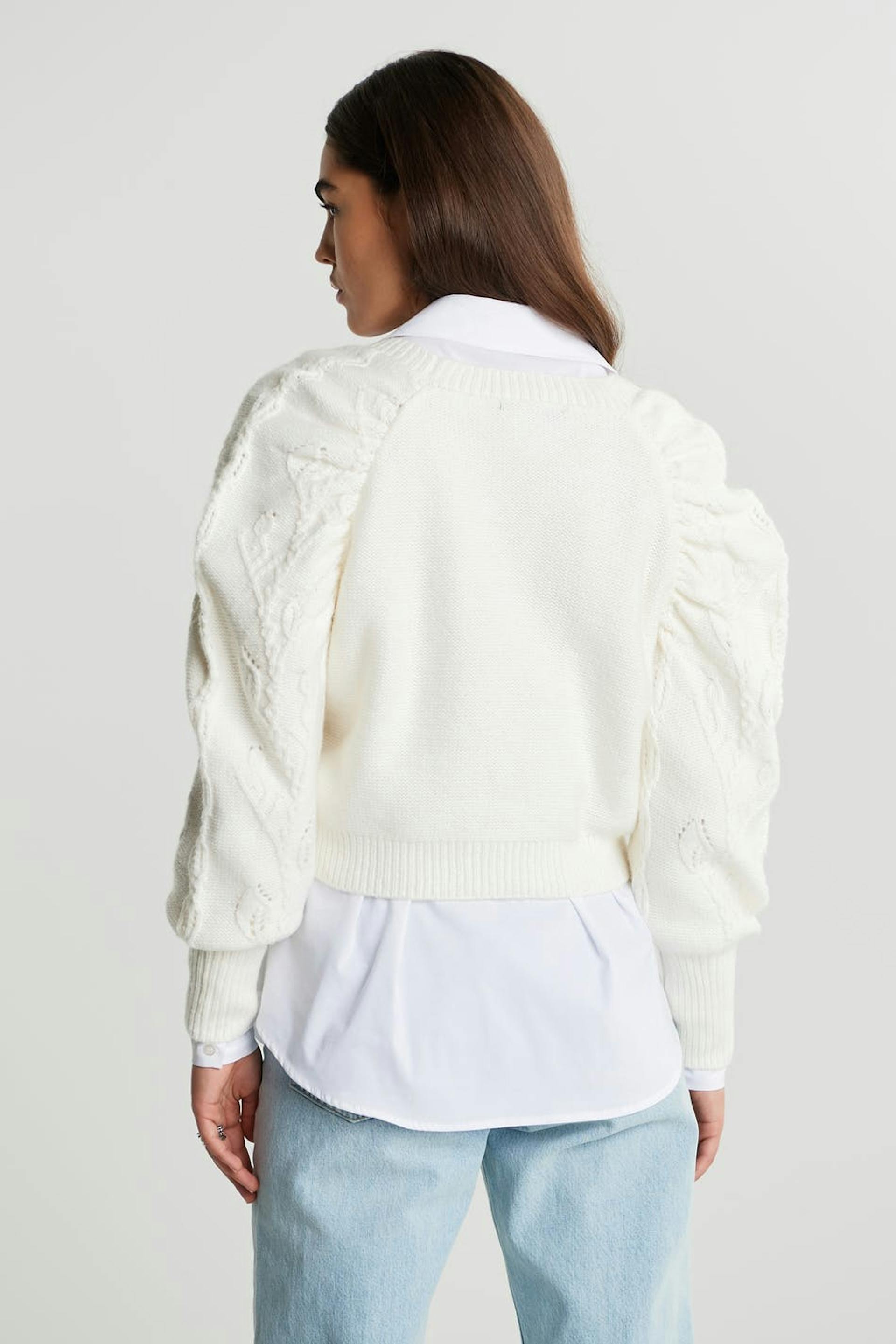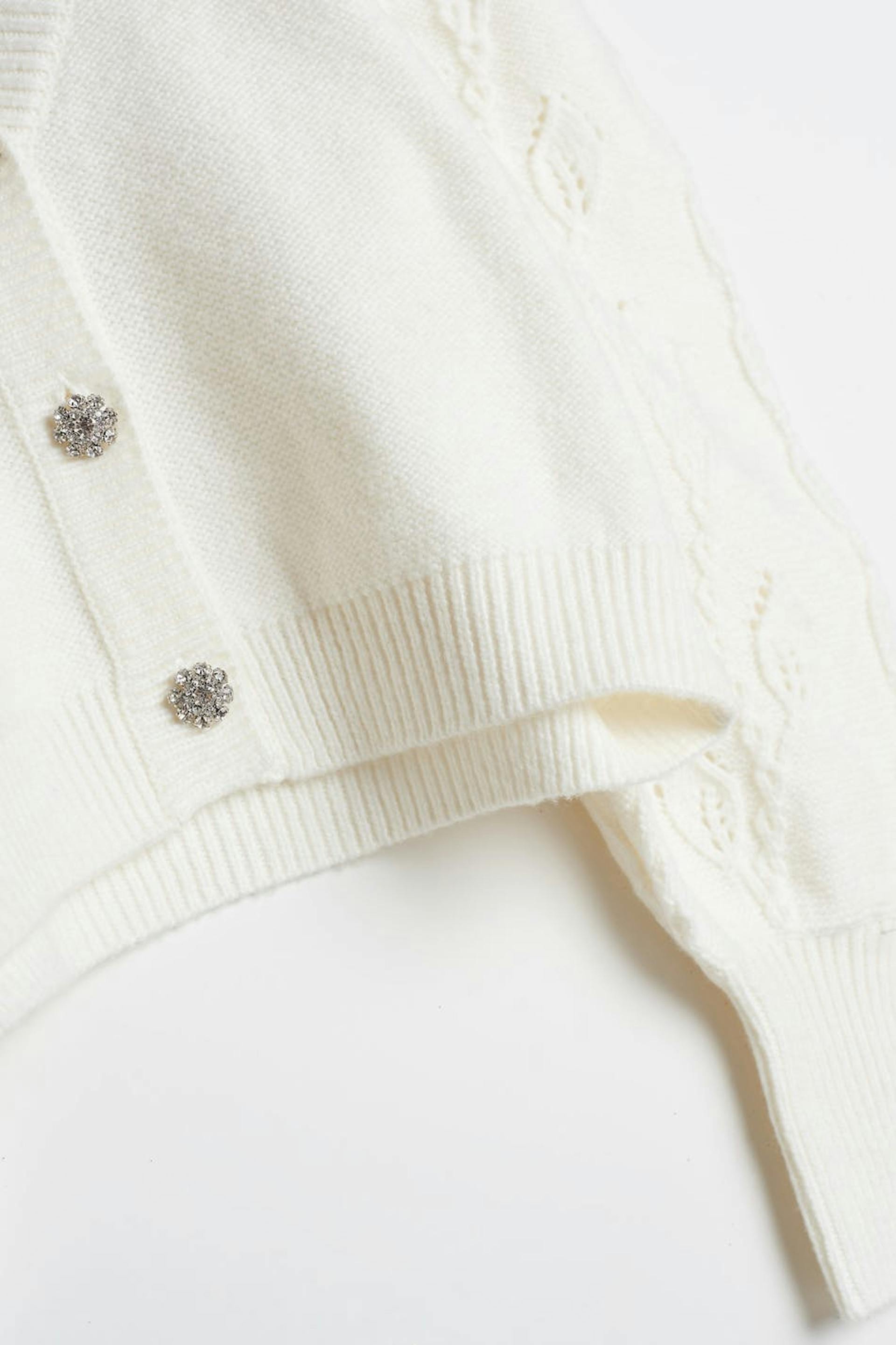 Knitted cardigan with wide sleeves and gem buttons.