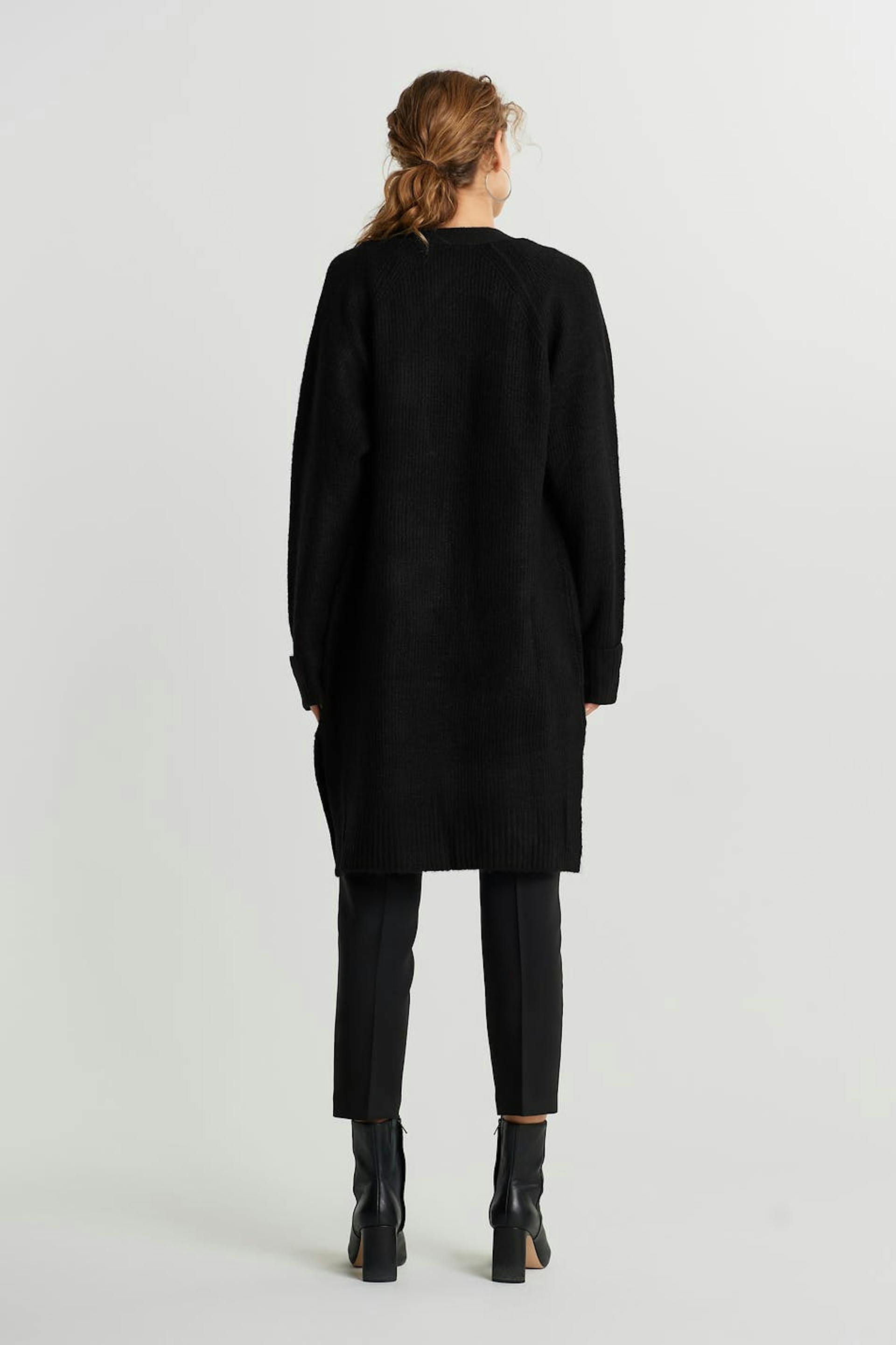 Cozy knitted long cardigan with opening at front. Long sleeves and small slit at sides. Regular fit. Supplier: J.L Sweaters Ltd Production Unit: J.L Sweaters Ltd