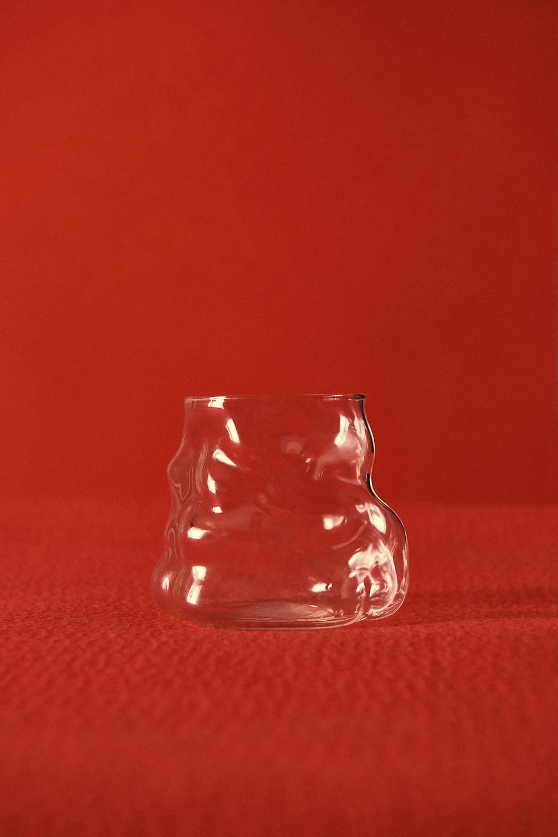 Hobnob X Gina Tricot. I glass drikkeglass med buklete struktur.