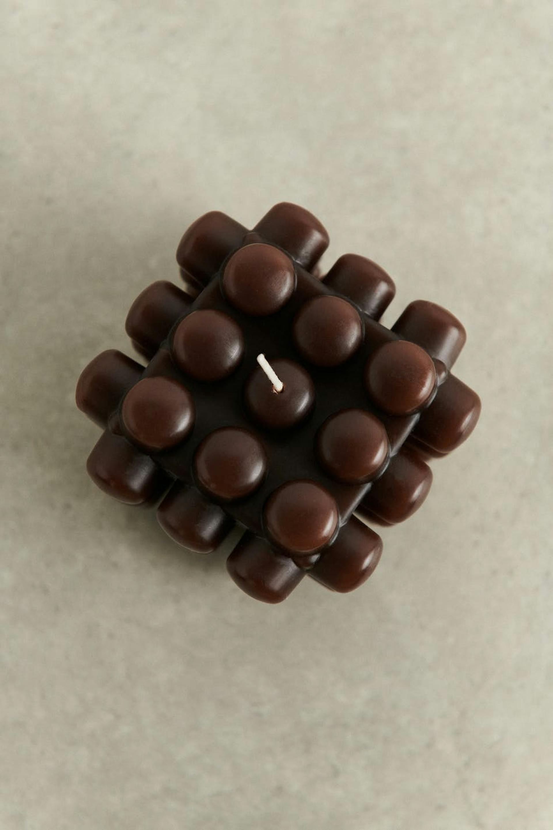Vakkert boblelys fra Gina Home med en firkantet form. Boblelyset er brunt og har en veke.