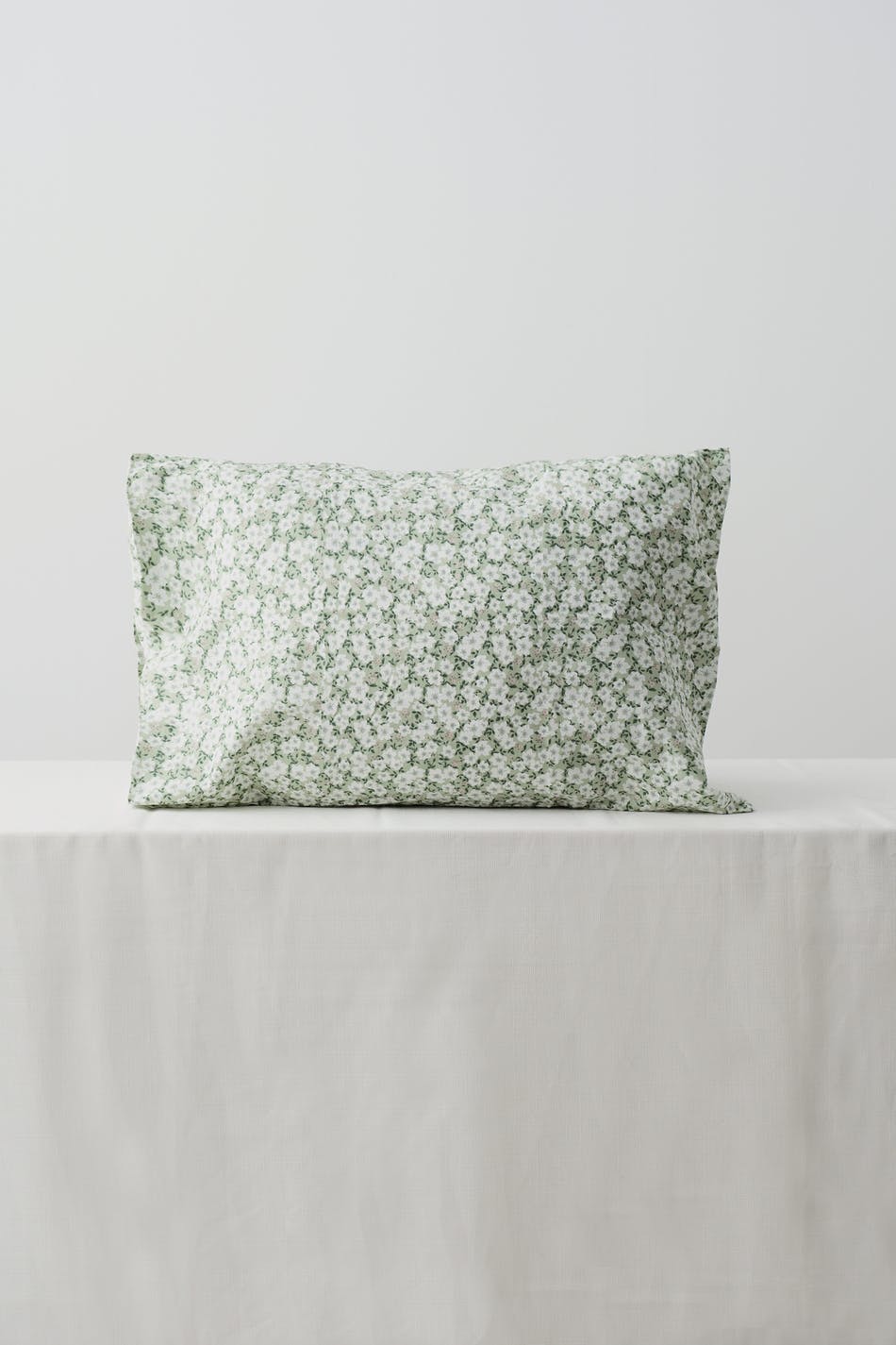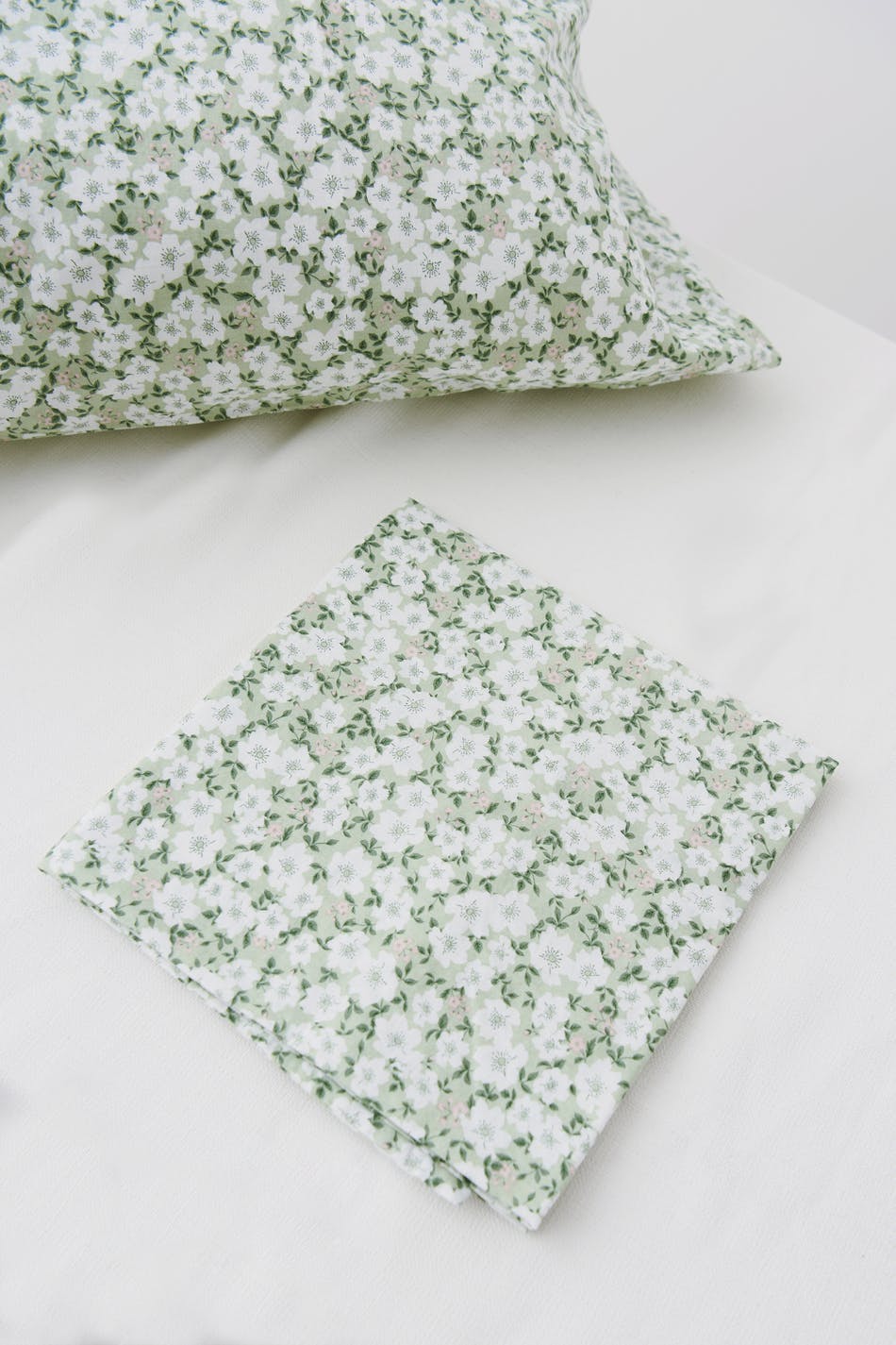 Blomstret putetrekk fra Gina Home i myk bomull. Putetrekket er grønt.