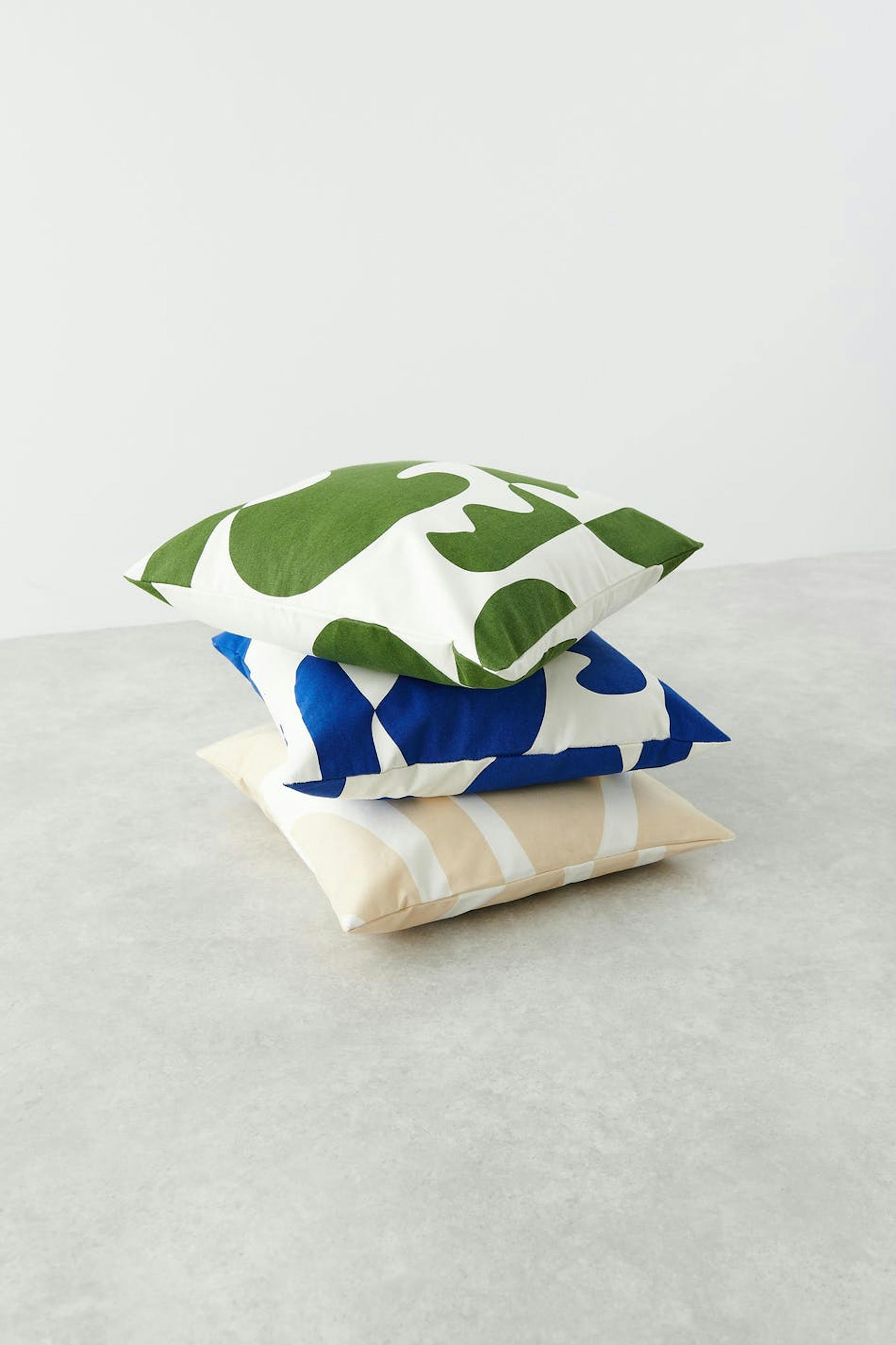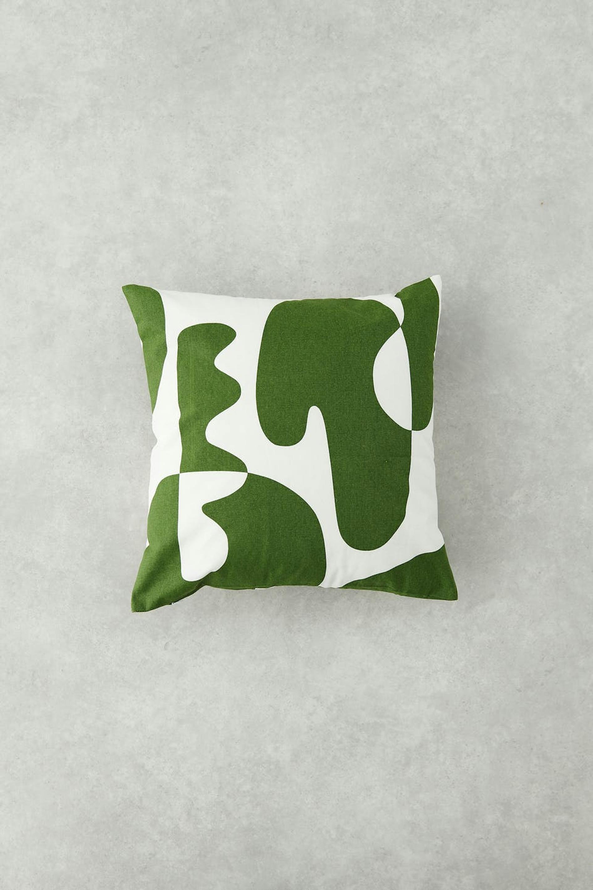 Trykket putetrekk fra Gina Home med abstrakt motiv. Futteralet er grønt.