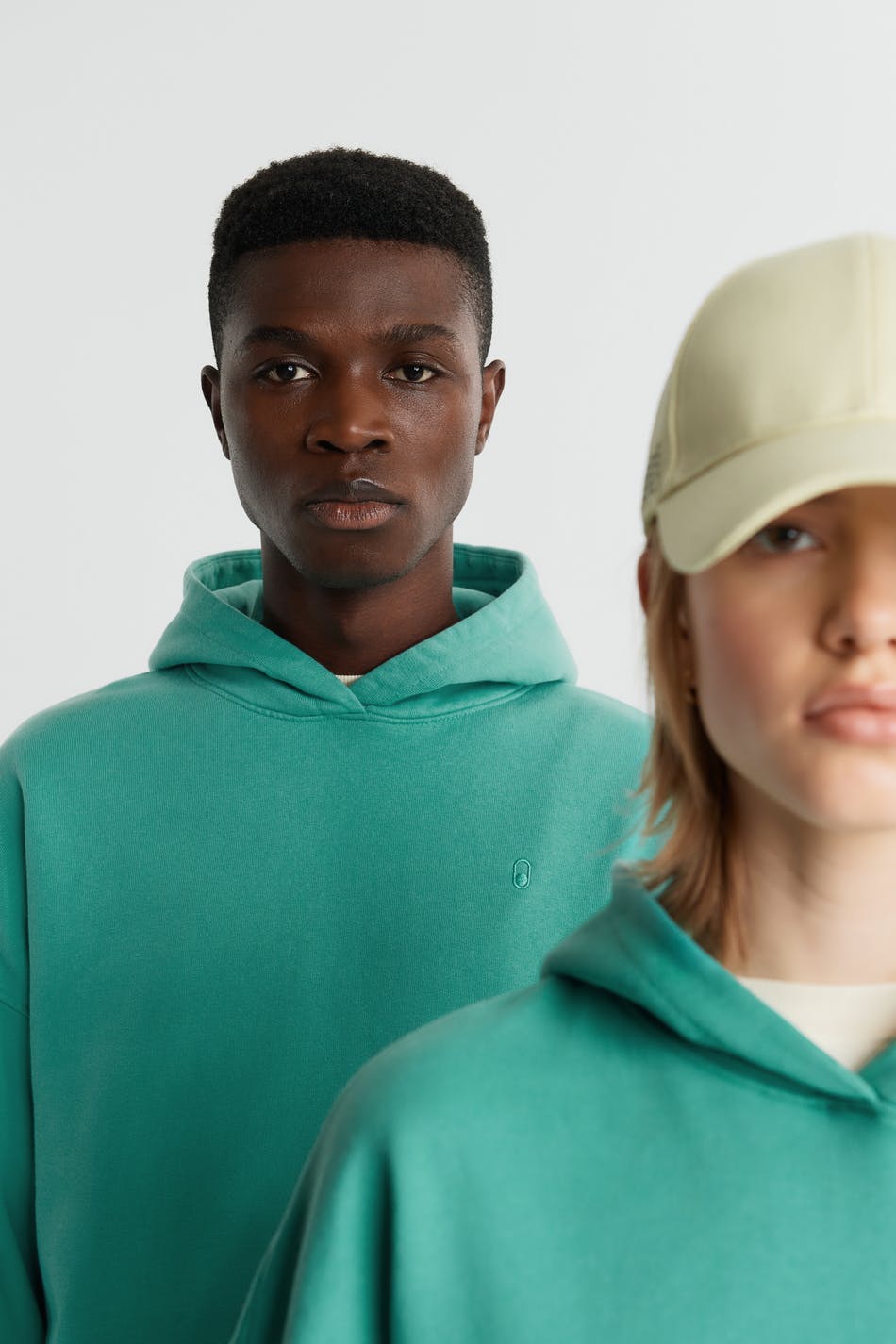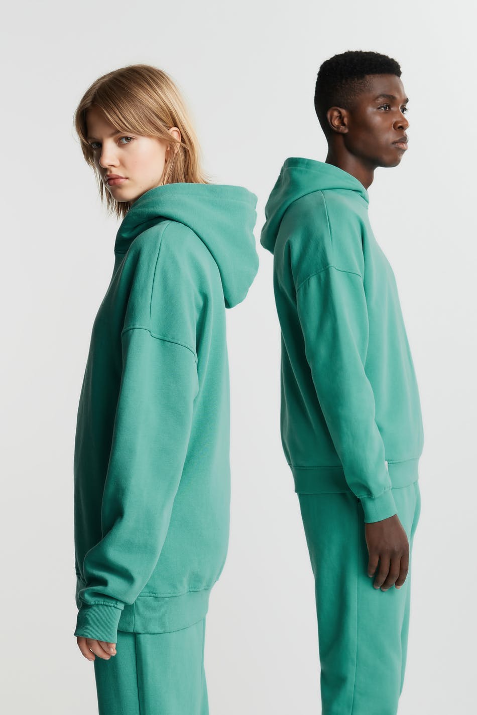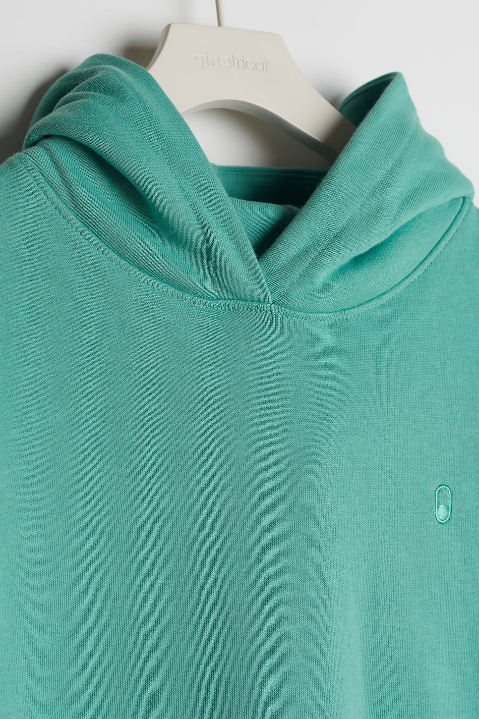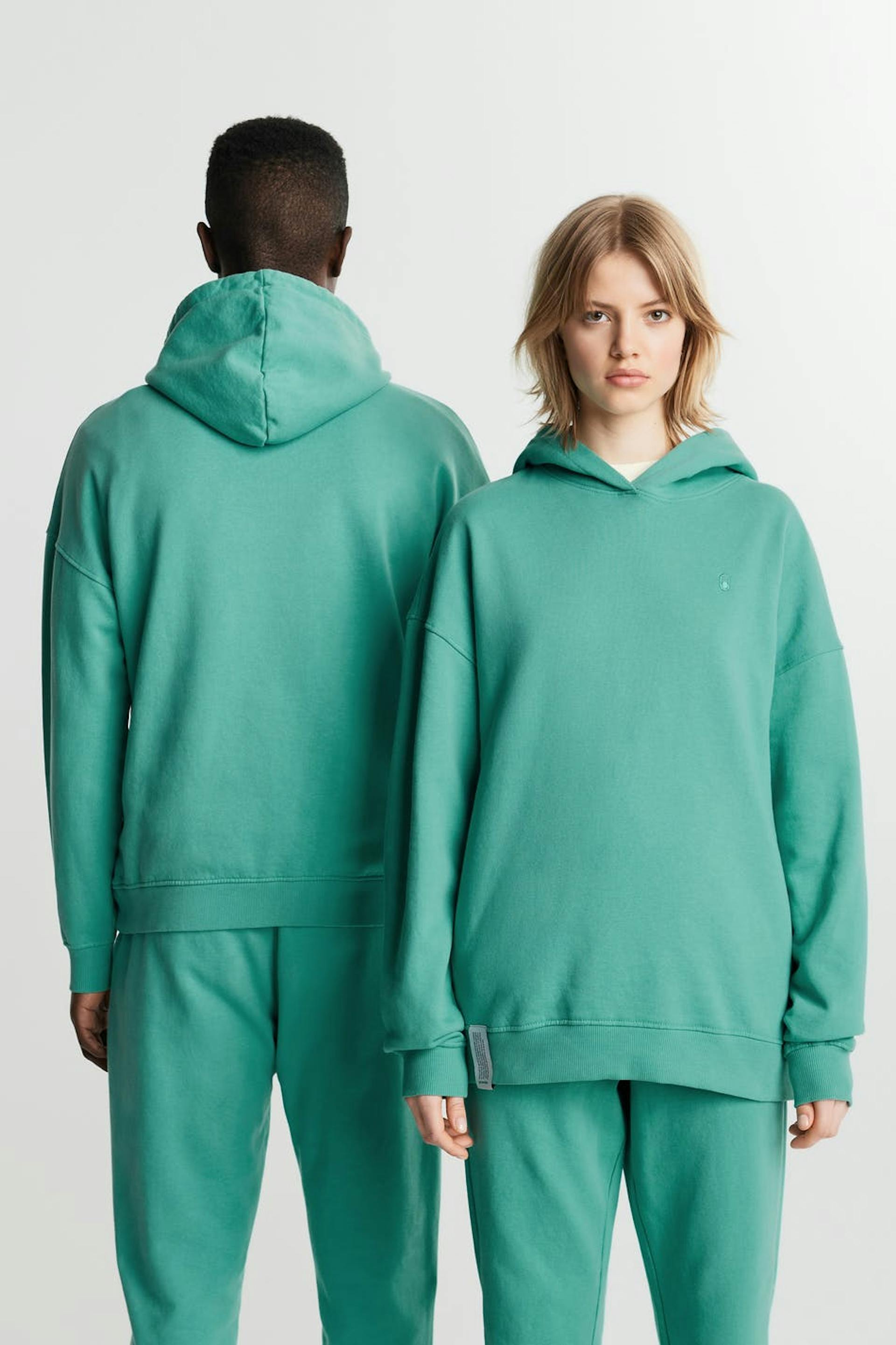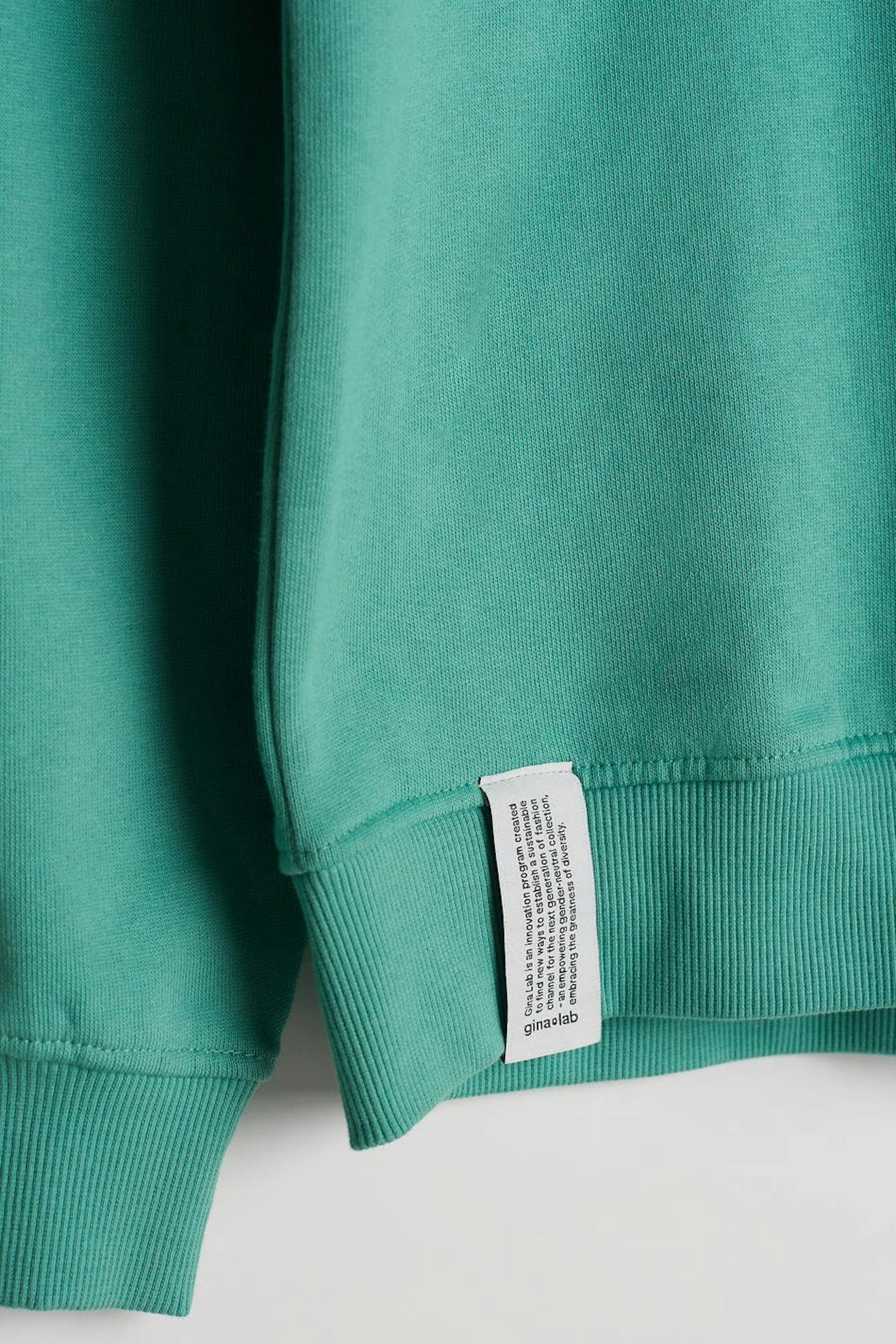 Unisex collegegenser fra Gina Lab med en oversized-passform. Grønn, myk, tidløs og gender-neutral. Den har en hette, en ribbet mansjett på enden av ermene og på linningen og en liten, brodert logo på brystet.