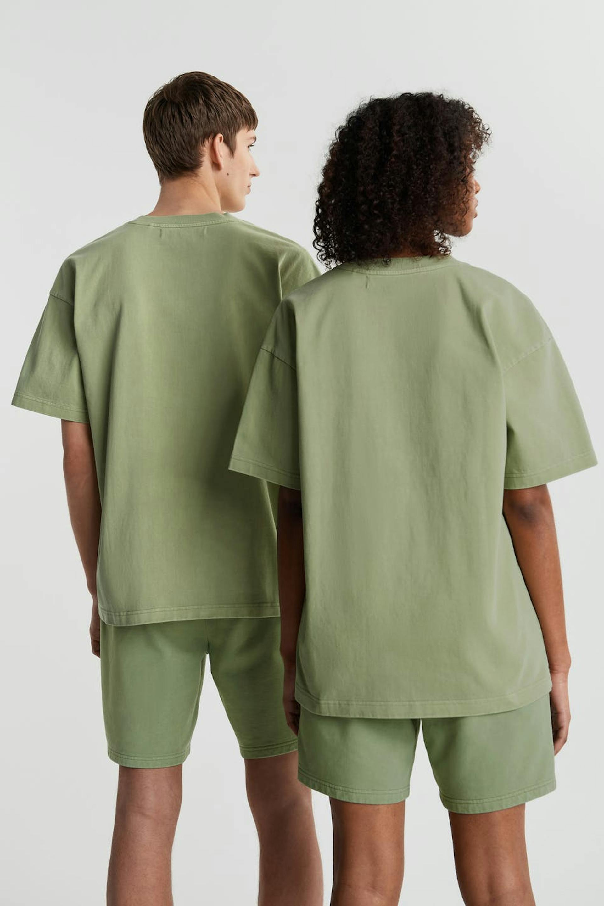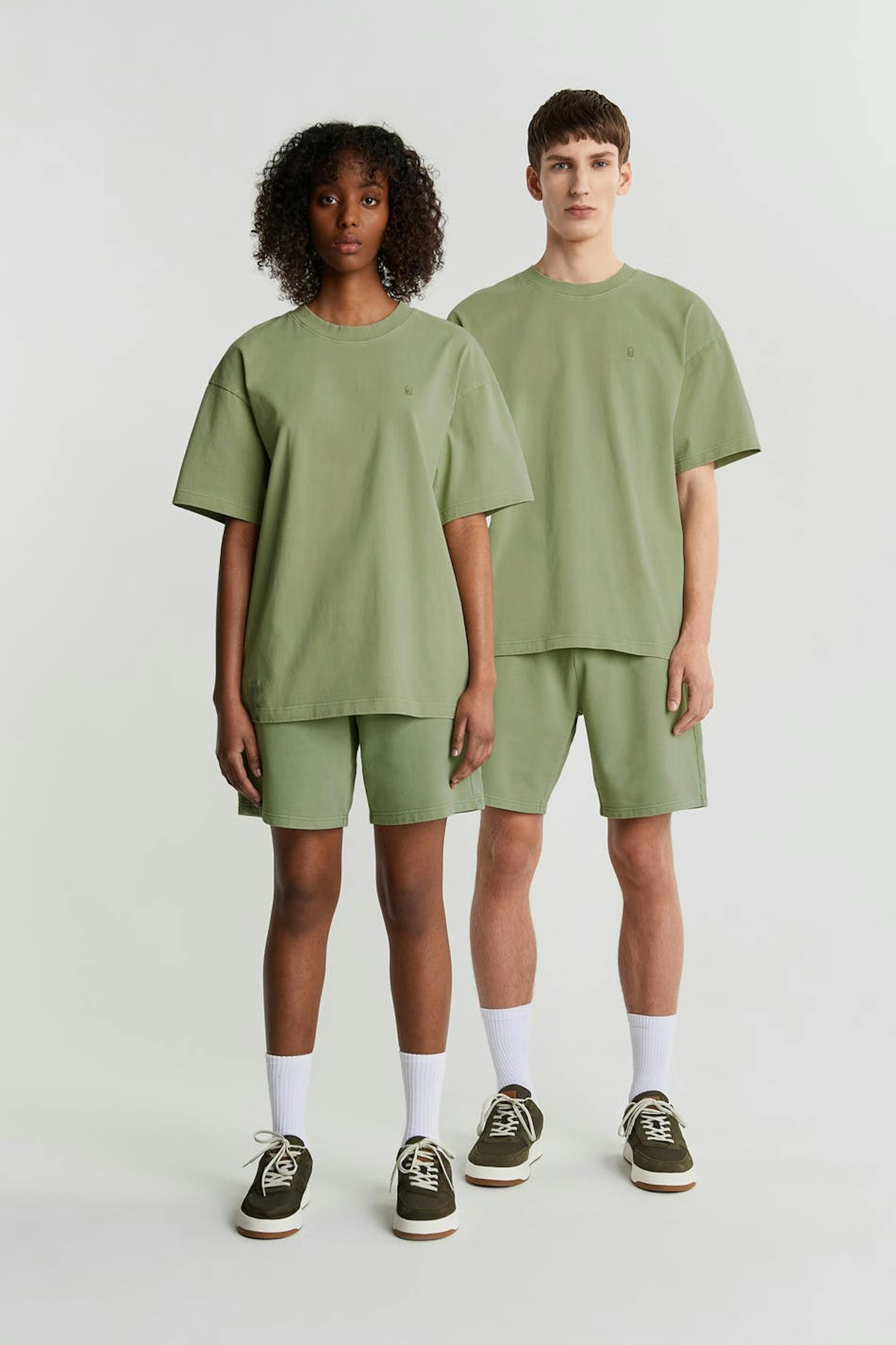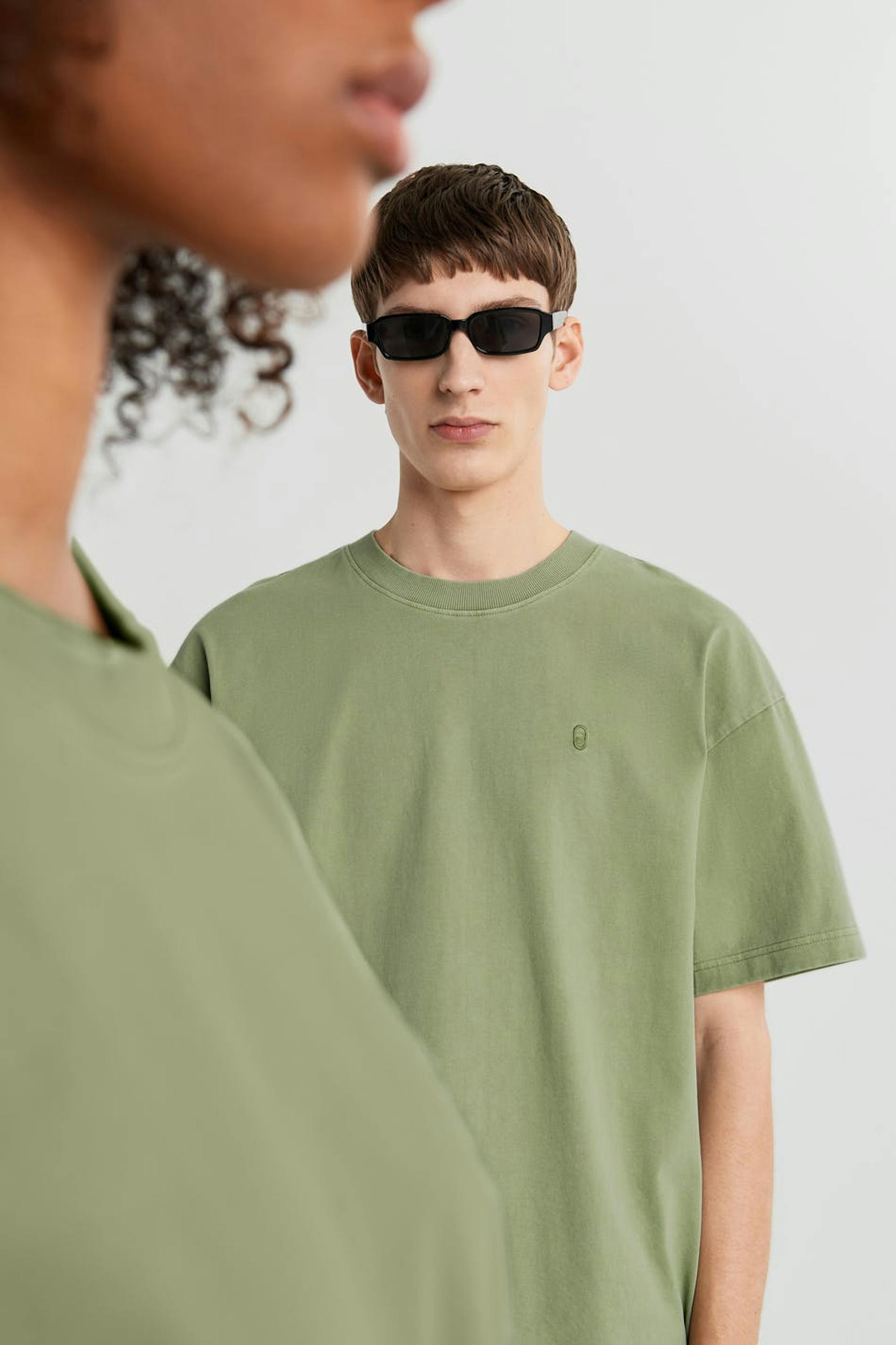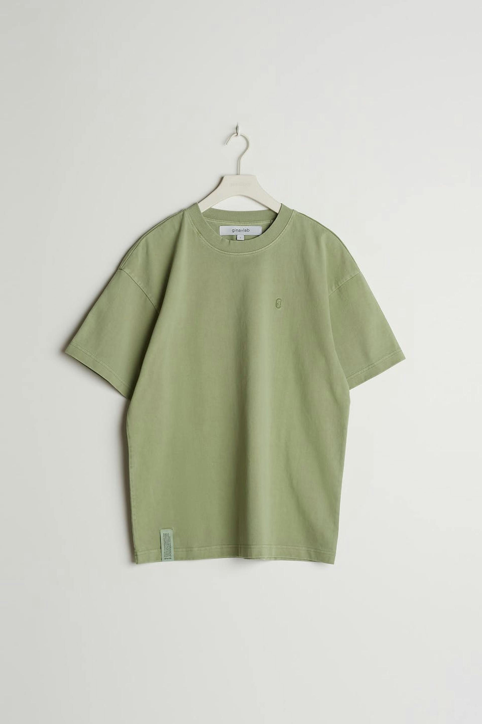 Unisex t-skjorte med en oversized-passform. T-skjorten er grønn og gender-neutral og har en brodert logo på brystet. GOTS certified, Mineral dye.
