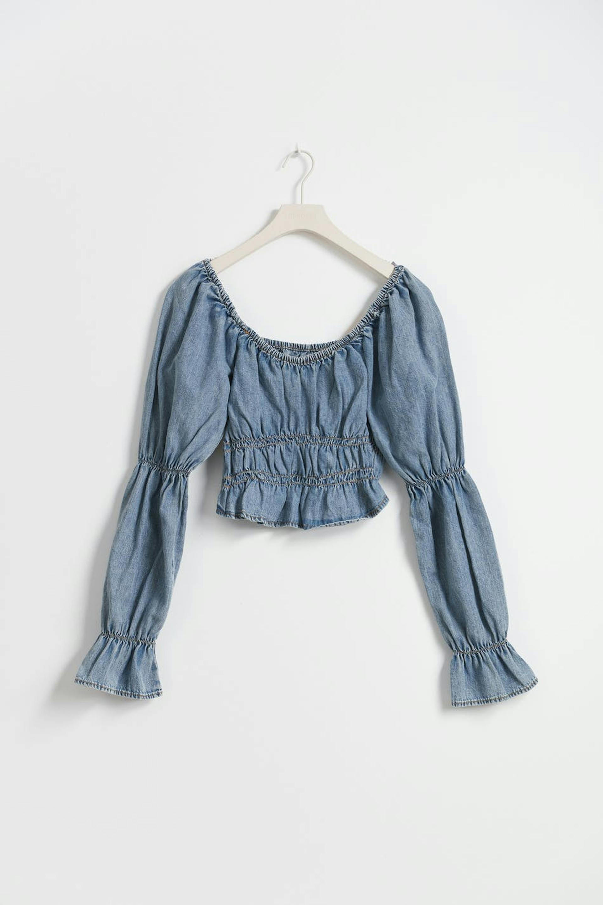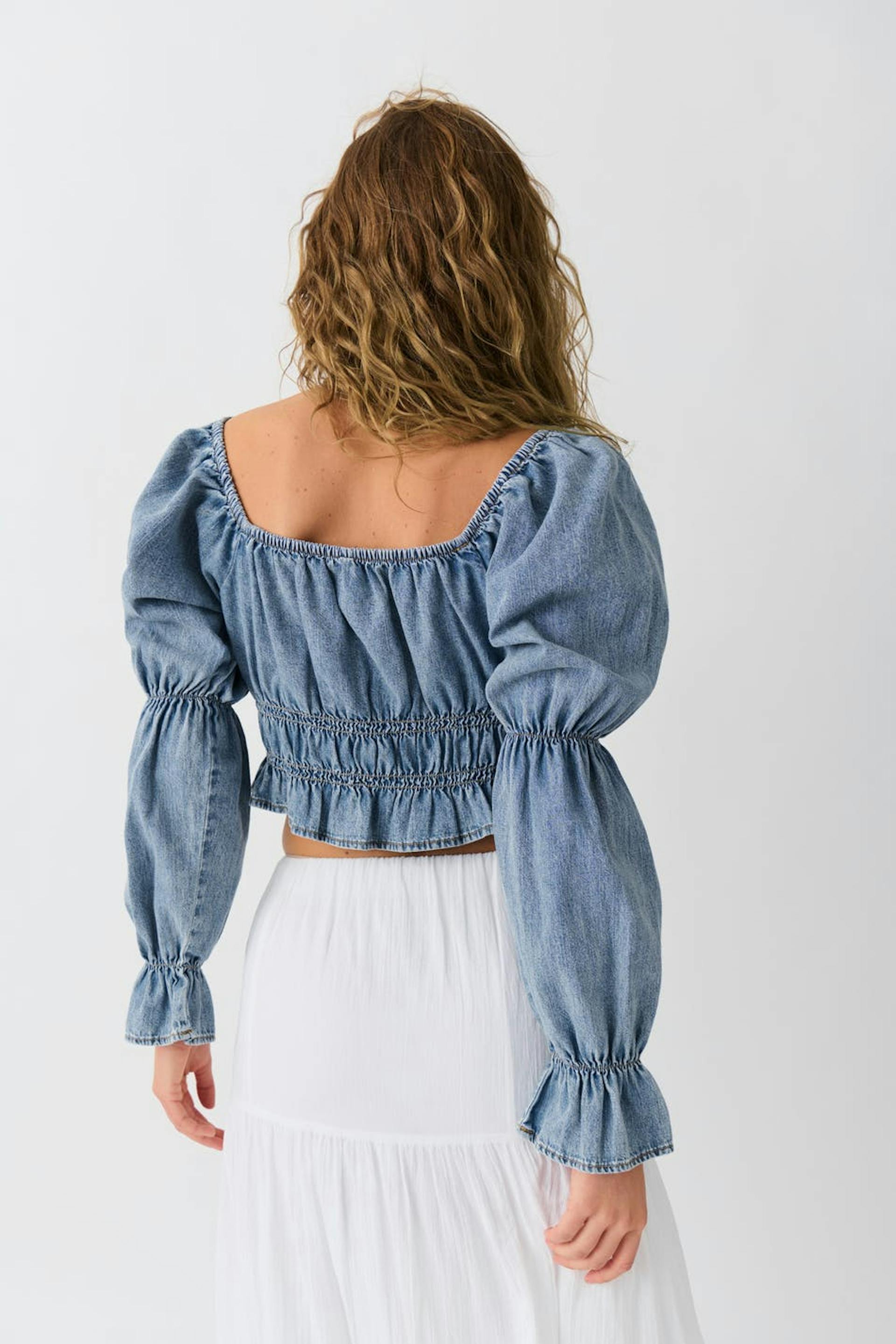 Puff sleeve denim blouse