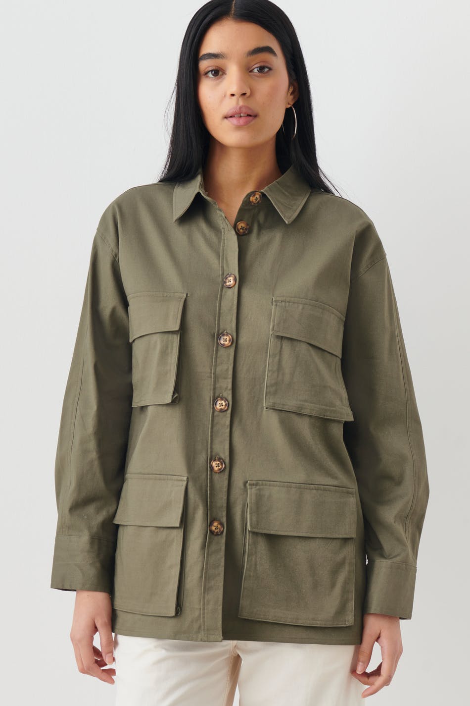Oversize skjorter med fire lommer foran. Skjortene er grønne og langermet og har knapper foran.
