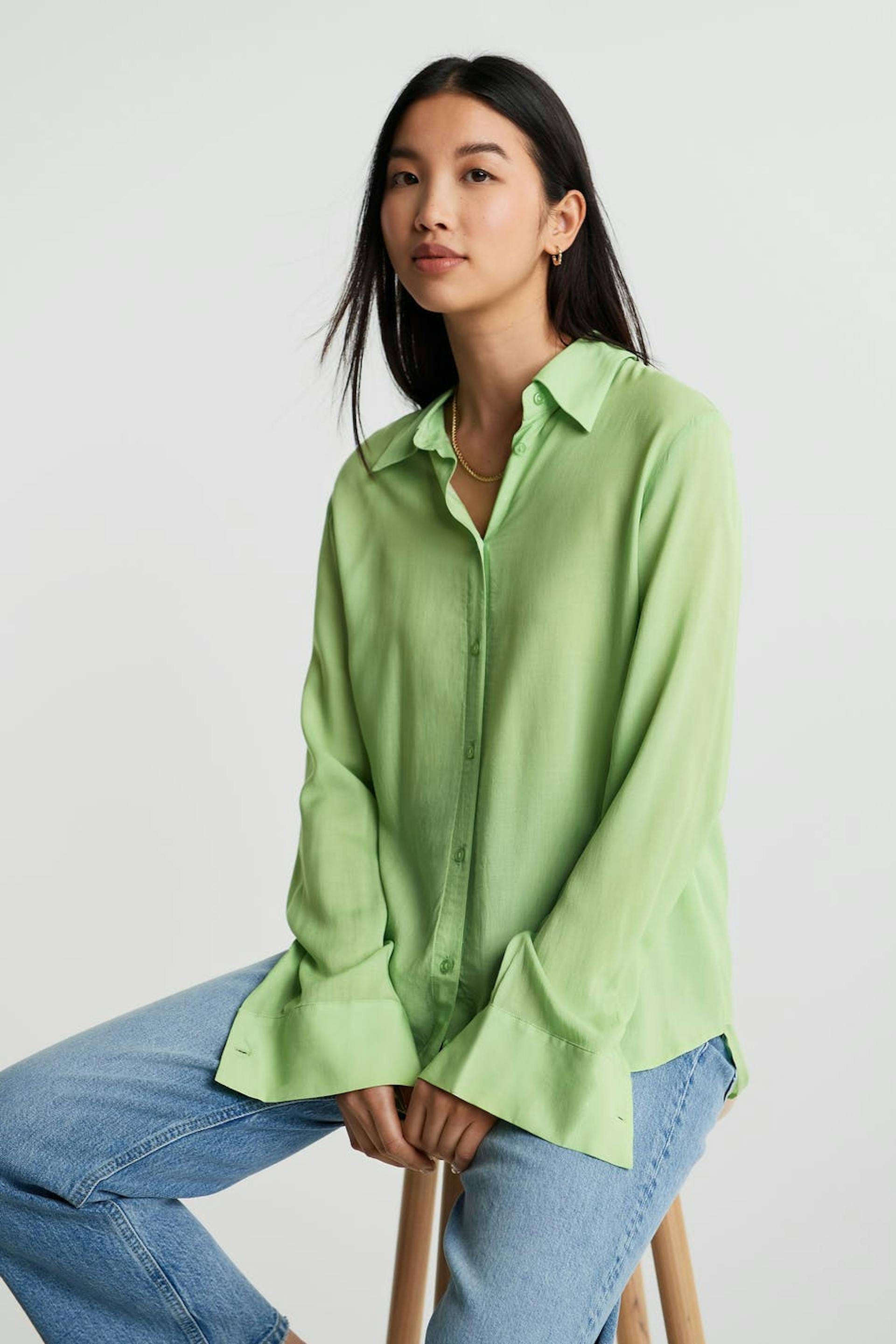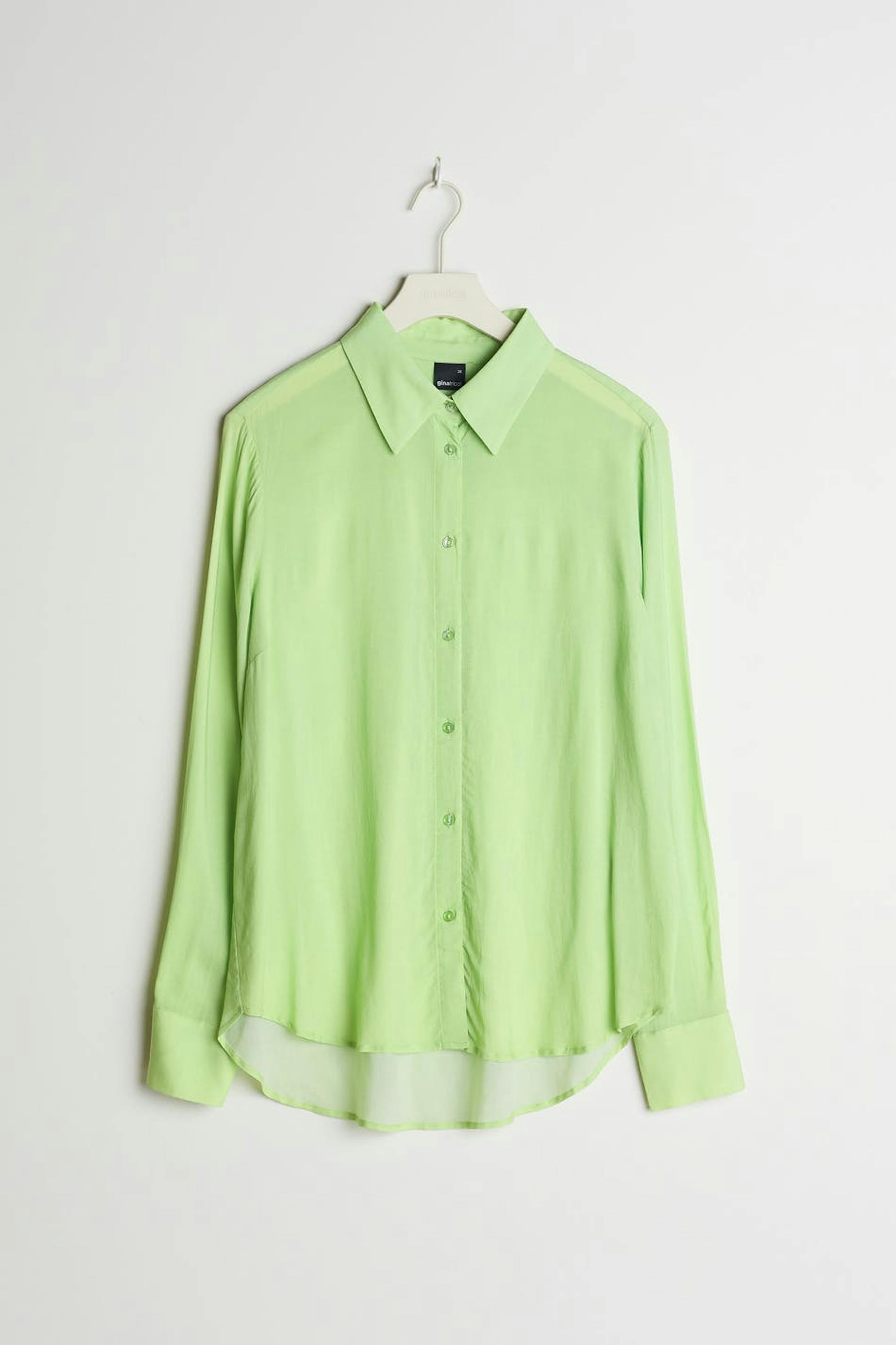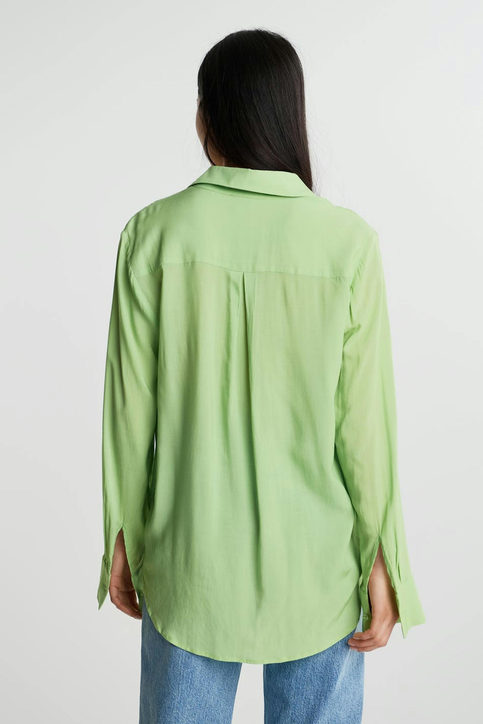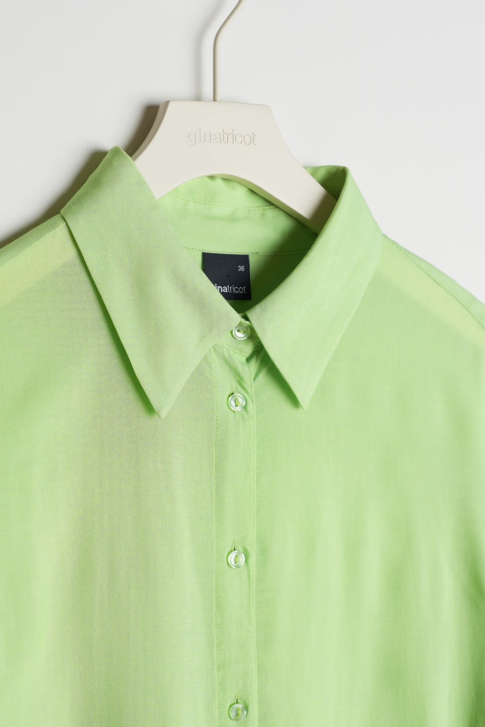 Myk skjorte med lange armer. Skjorten er grønn og litt lengre på baksiden.
