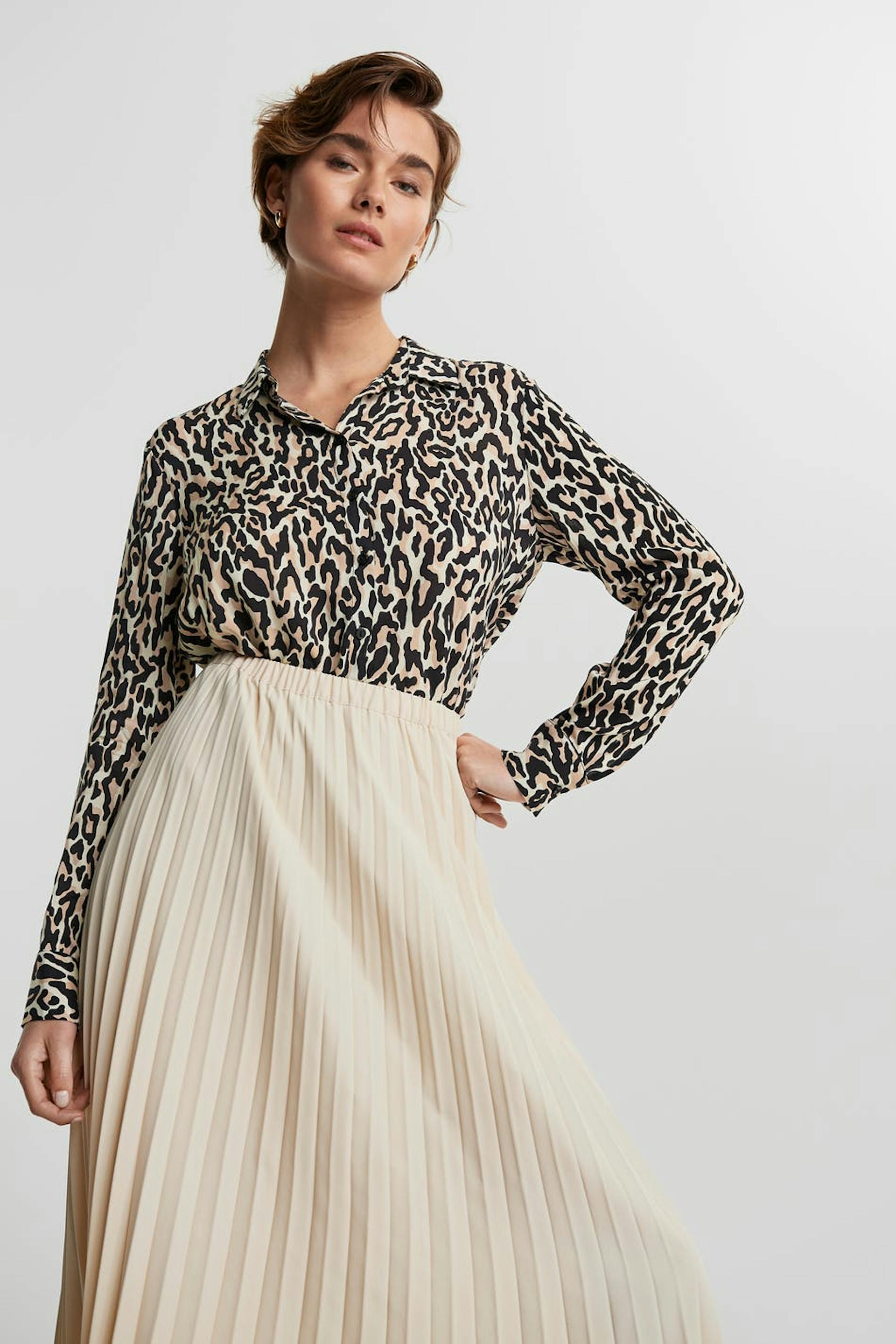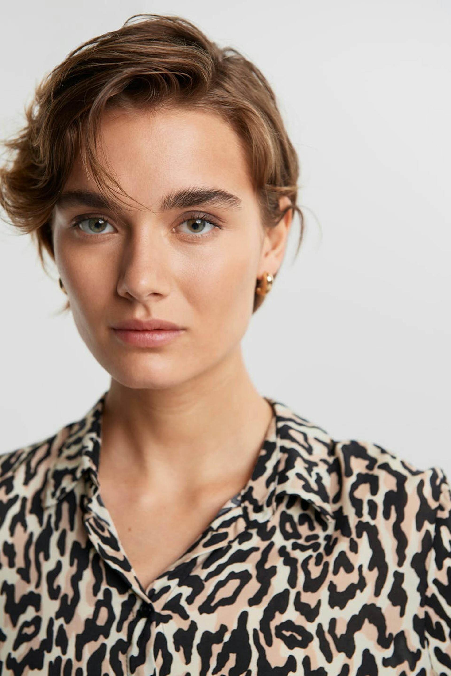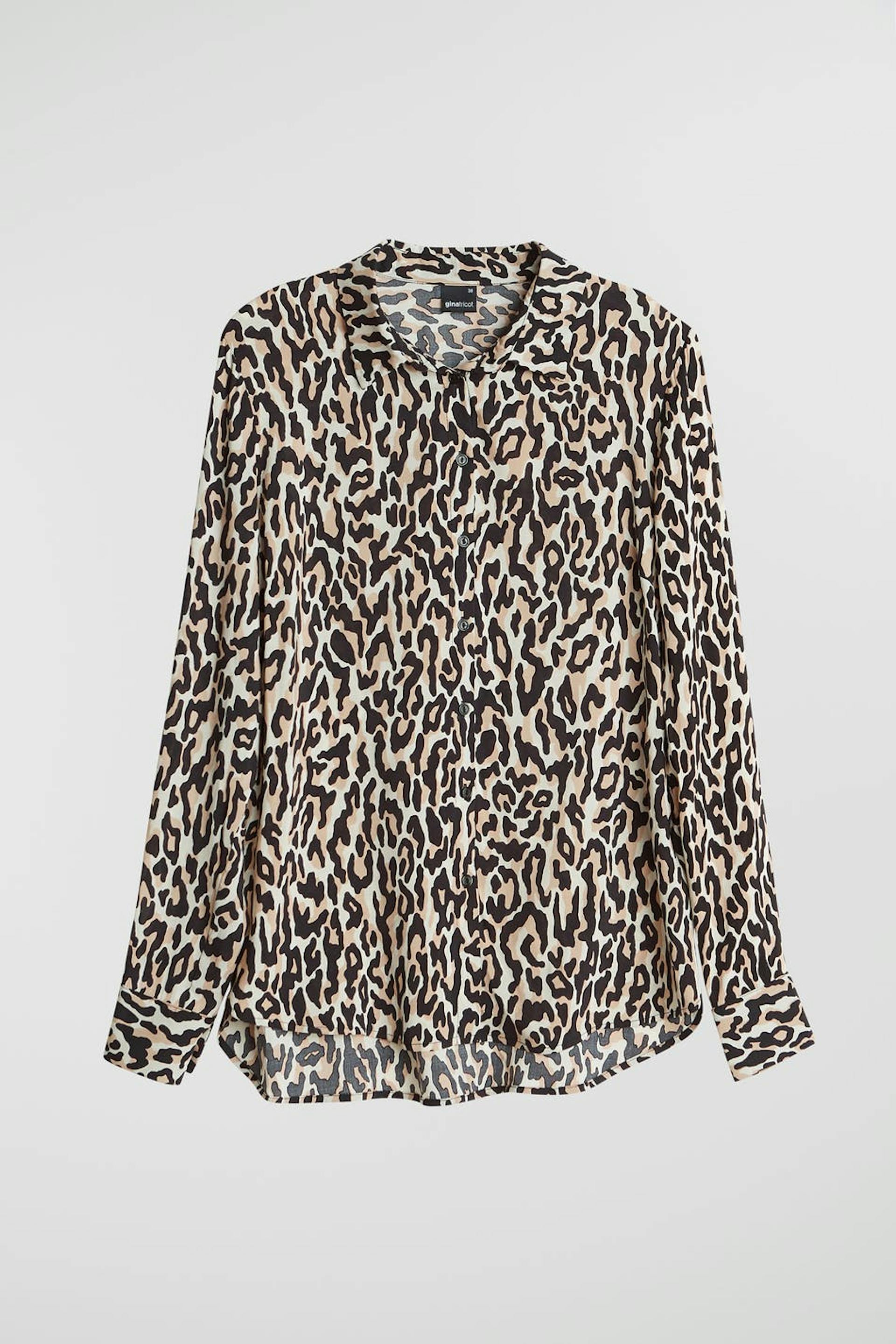 Myk skjorte med en vanlig passform. Skjorten er leopardmønstret, litt lengre på baksiden og langermet.