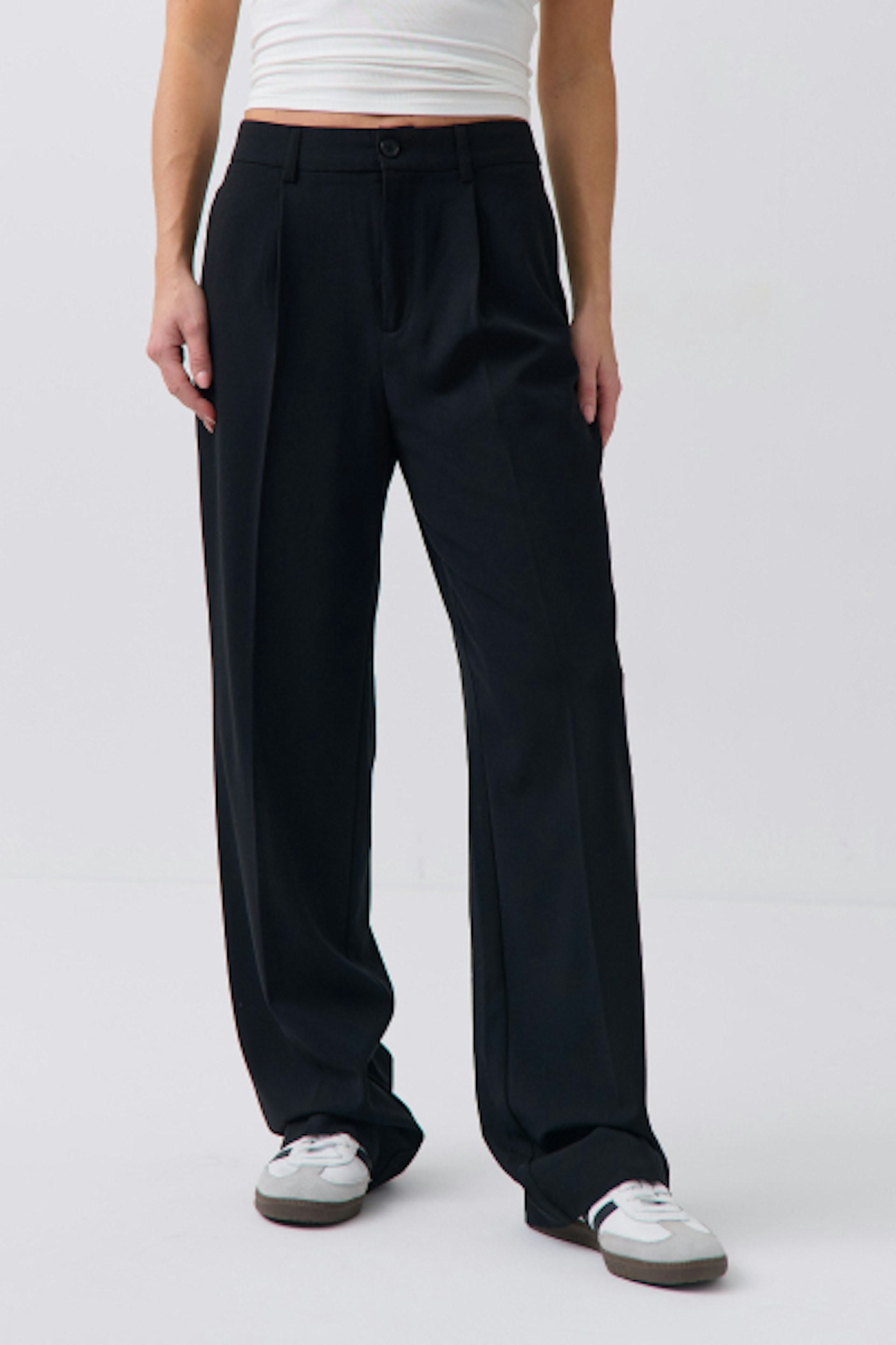 Hos Gina Tricot finner du et stort utvalg av dressbukser til dame. Du finner selvsagt også en perfekt topp som passer til dine nye bukser, og en jakke hvis du også trenger det. Spesielt en dressjakke kan passe fint til dressbukser i ulike fasonger. Og i tillegg får du alltid god service, et stort utvalg, og snille priser på kjøpet.