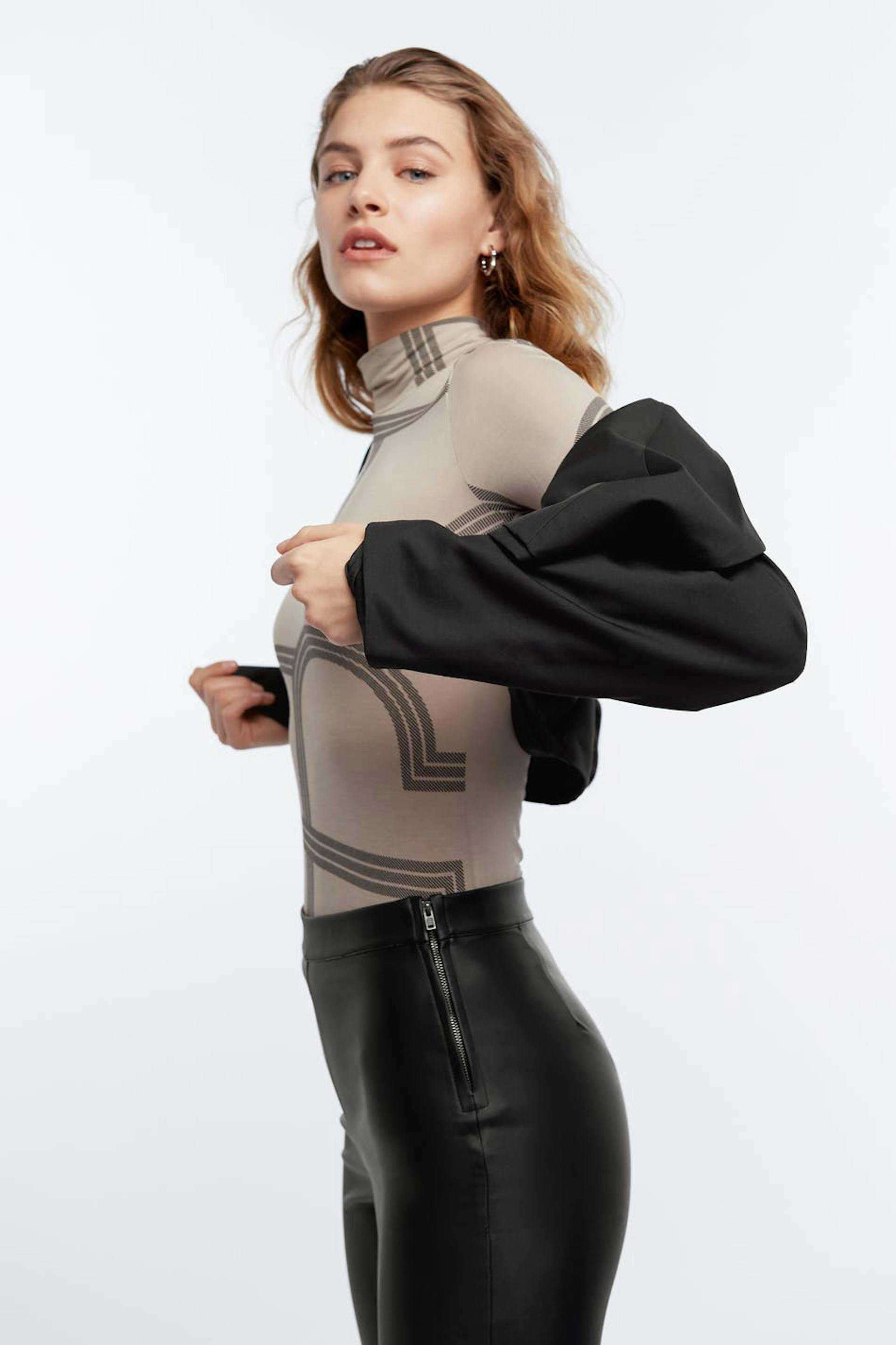 Modellen er 180 cm høj og bruger størrelse S.