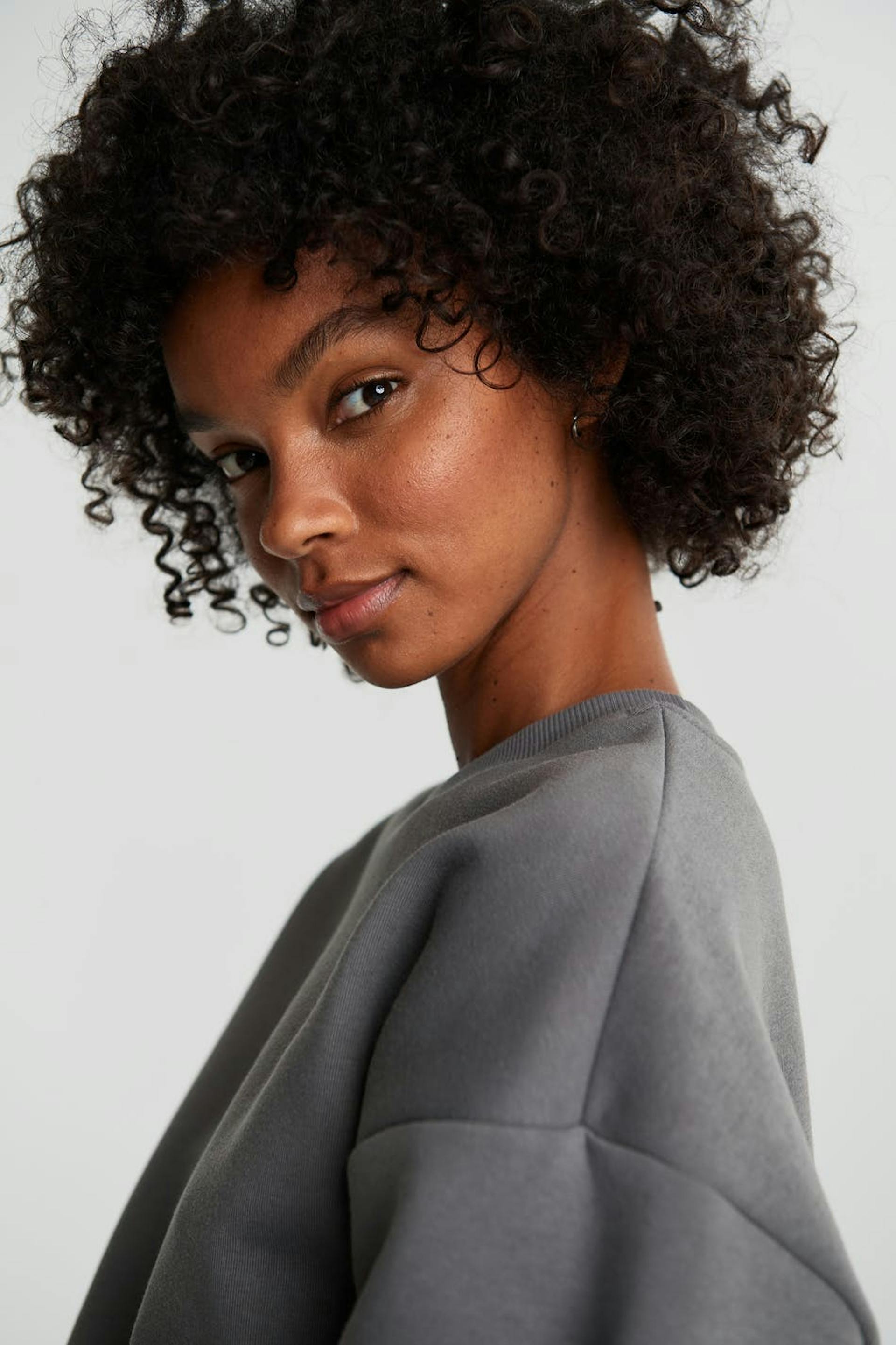 Myk collegegenser med en oversized-passform. Collegegenseren er grå og langermet. Den er laget av jersey.