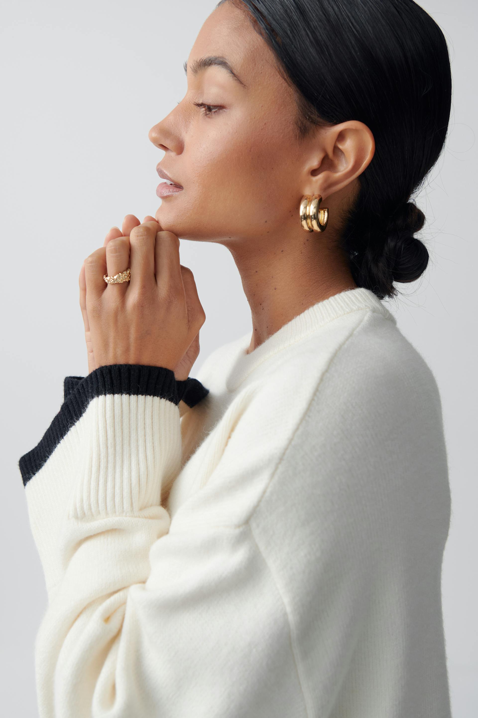 Contrast knit sweater