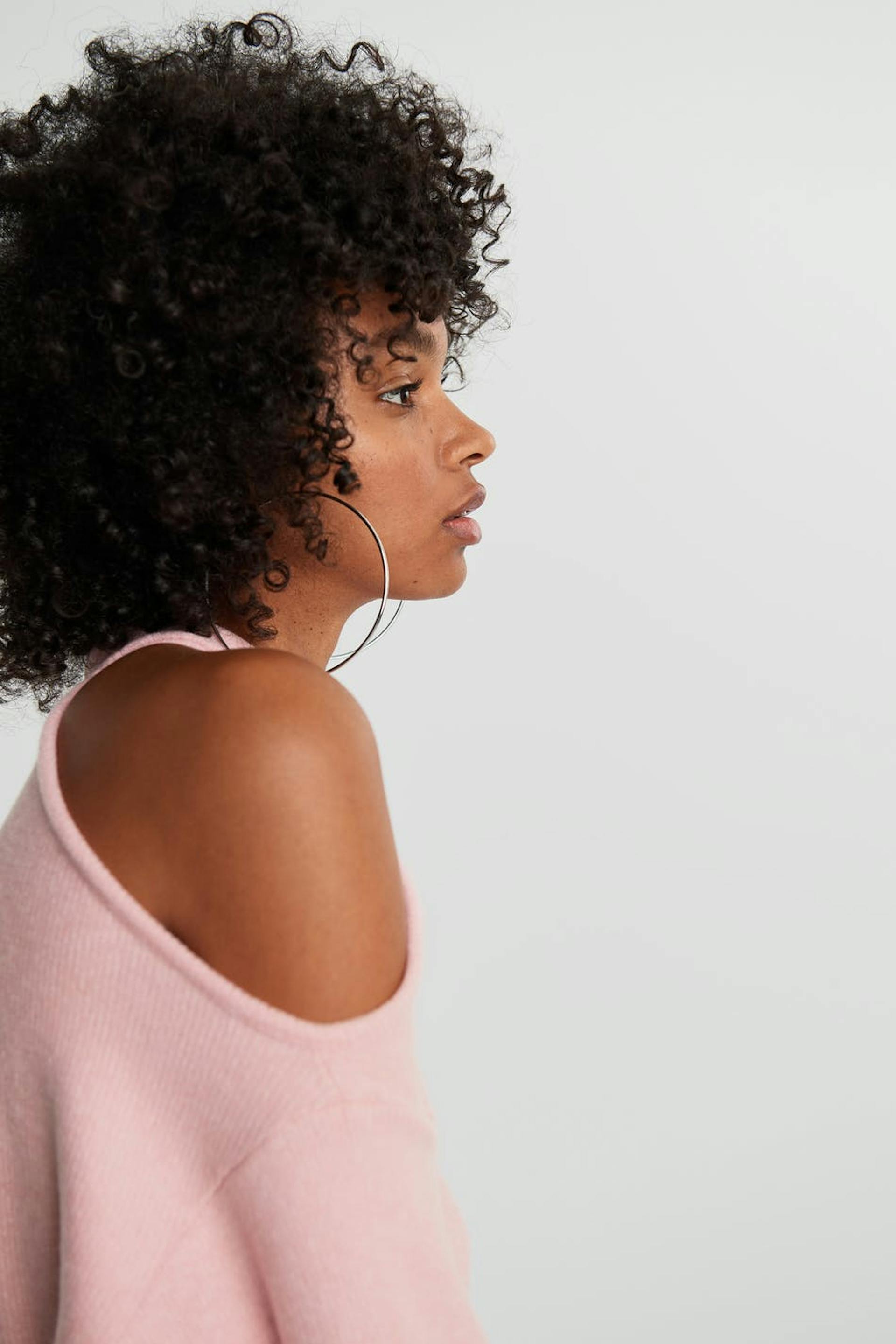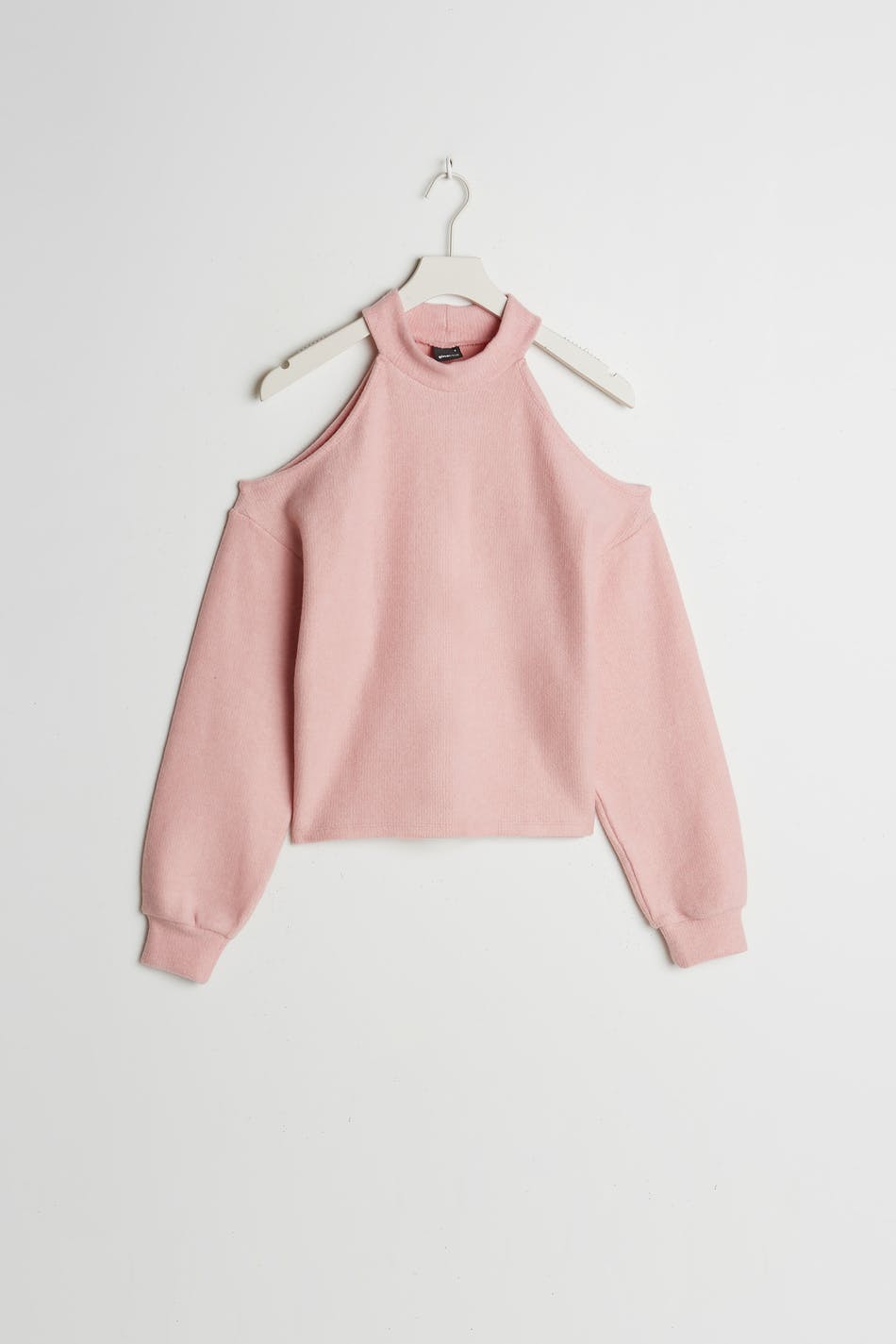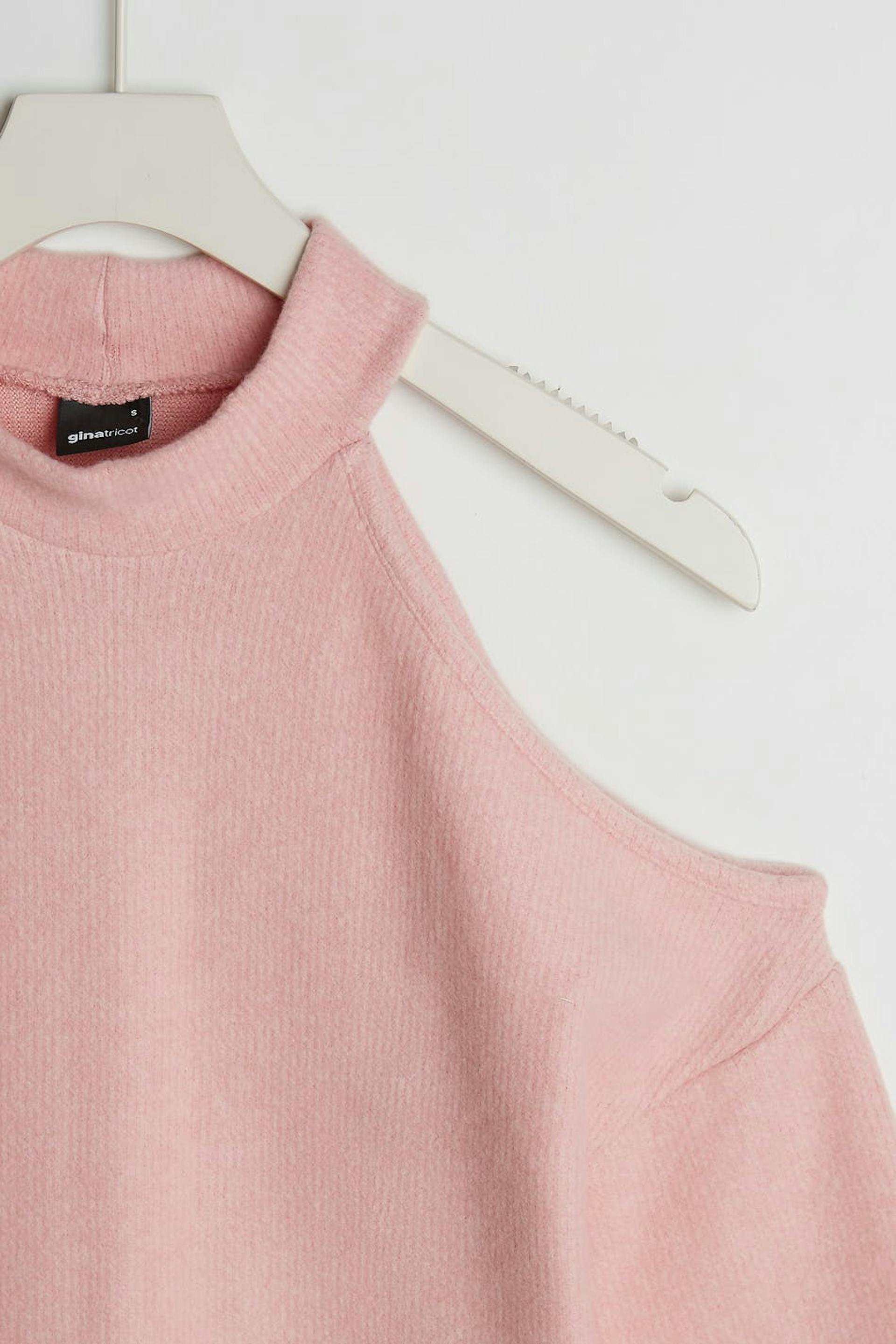 Strikket genser med en oversized-passform. Genseren er rosa og langermet og har bare skuldre.