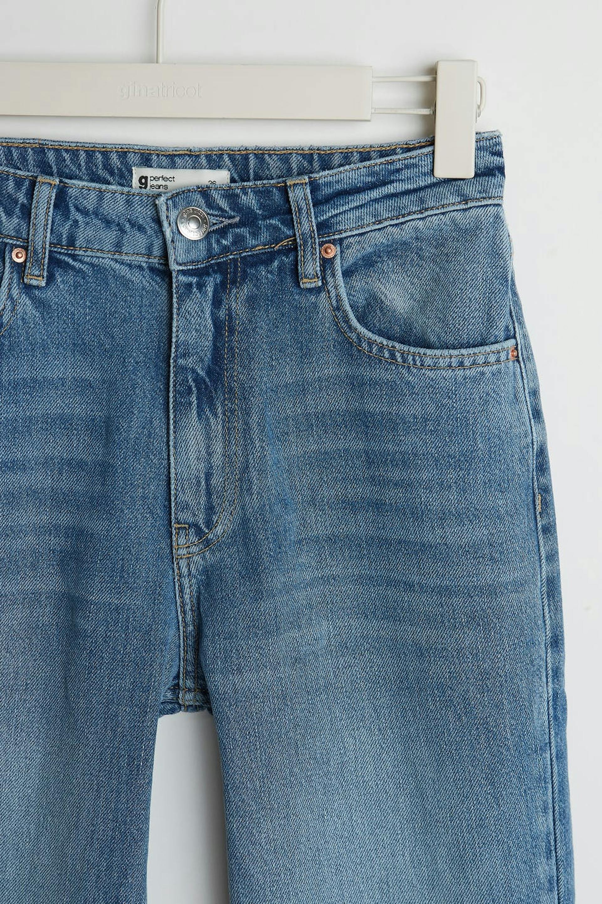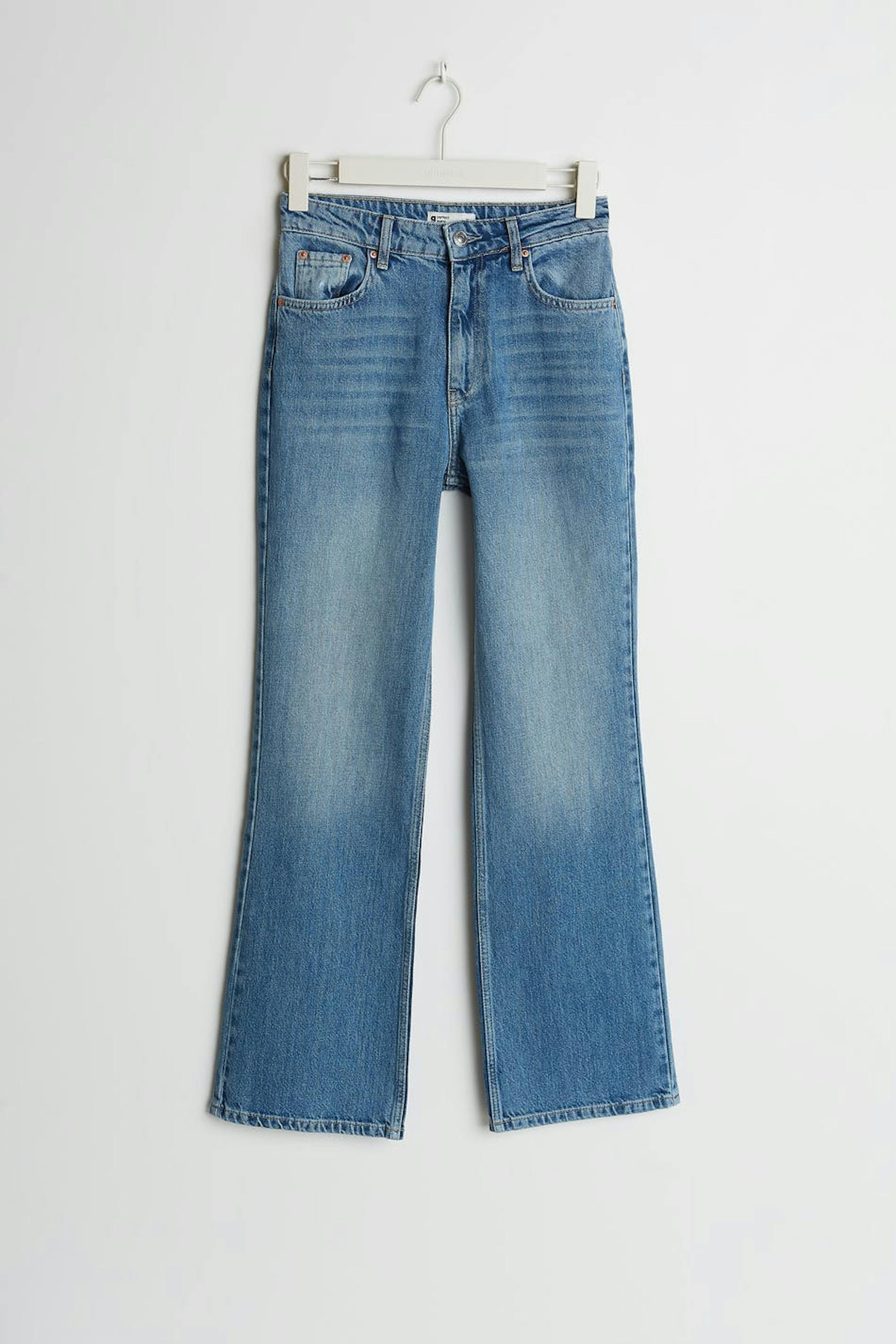 Vintage flare-jeans med en vanlig passform. Jeansene er blå og non-stretche og har en høy midje. De har litt utsvingede bein med full lengde.