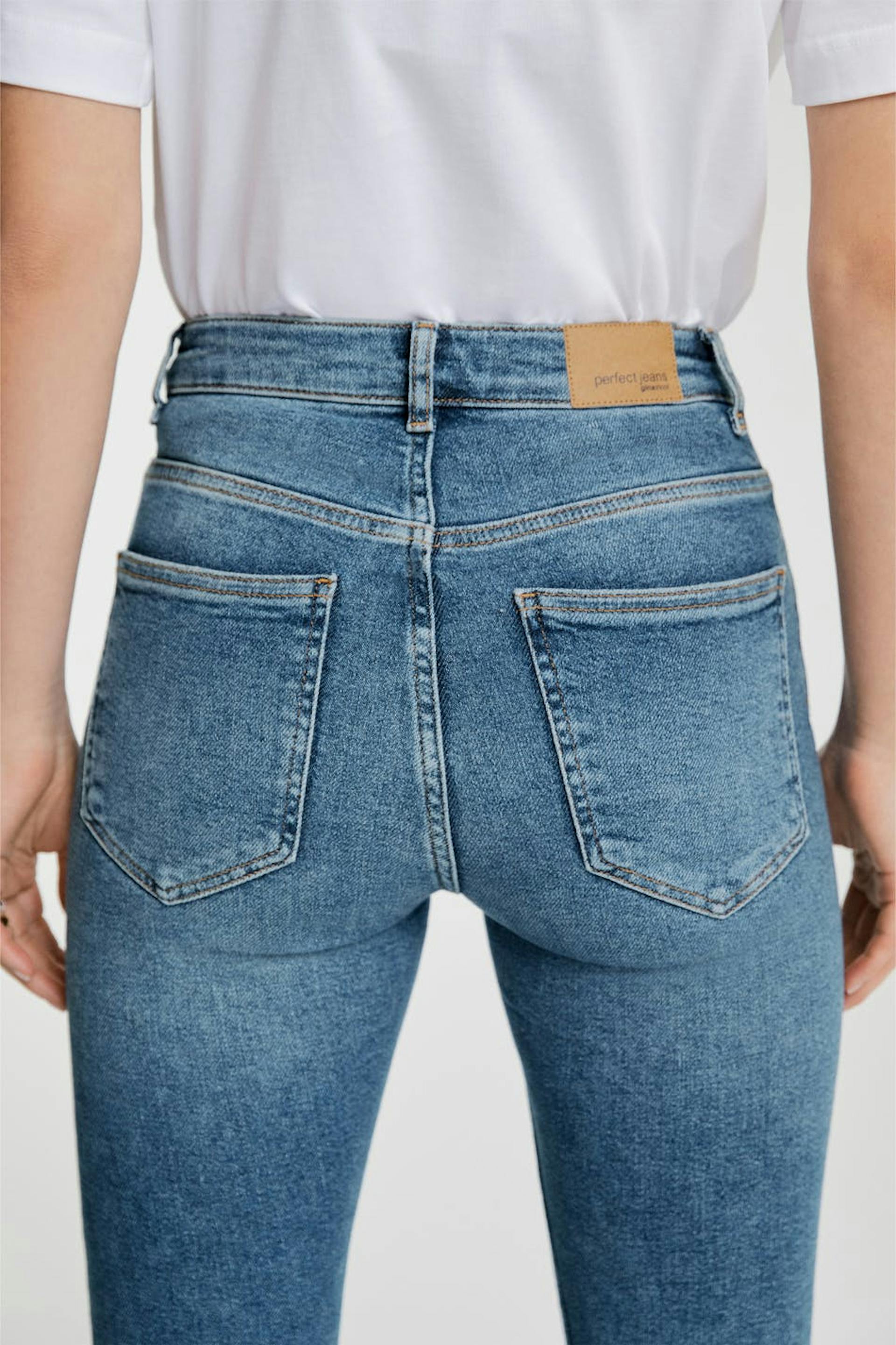Highwaist-jeans med en tilpasset passform. Jeansene er blå og har skinny fit. De har komfortstretch.