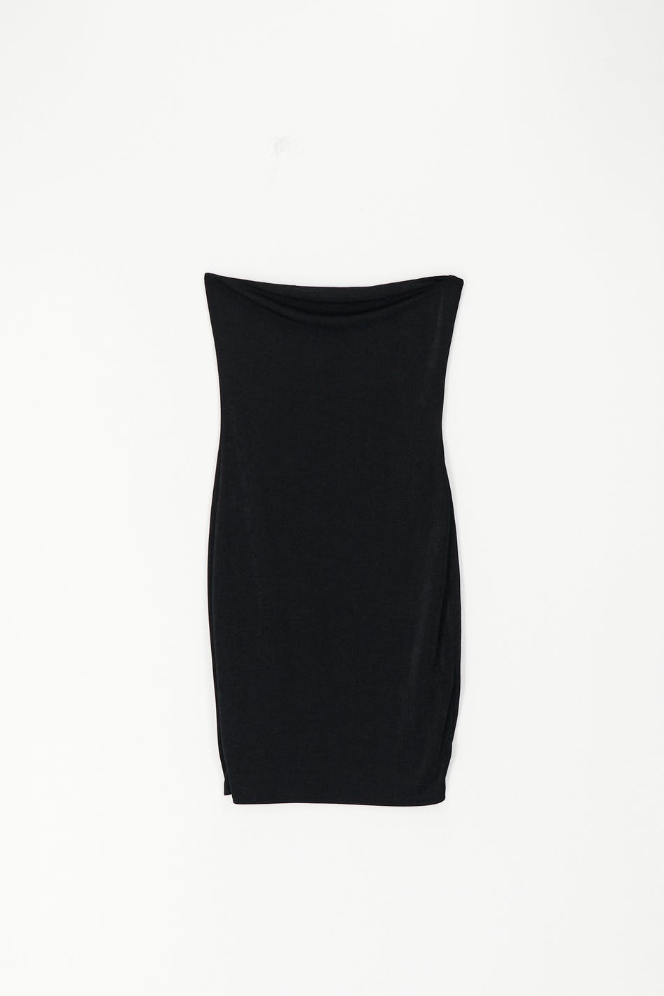 Kort tubekjole med tilpasset passform. Kjolen er perfekt for festen, svart og stretchy. Den har rett overkant med innvendig silikonkant.
