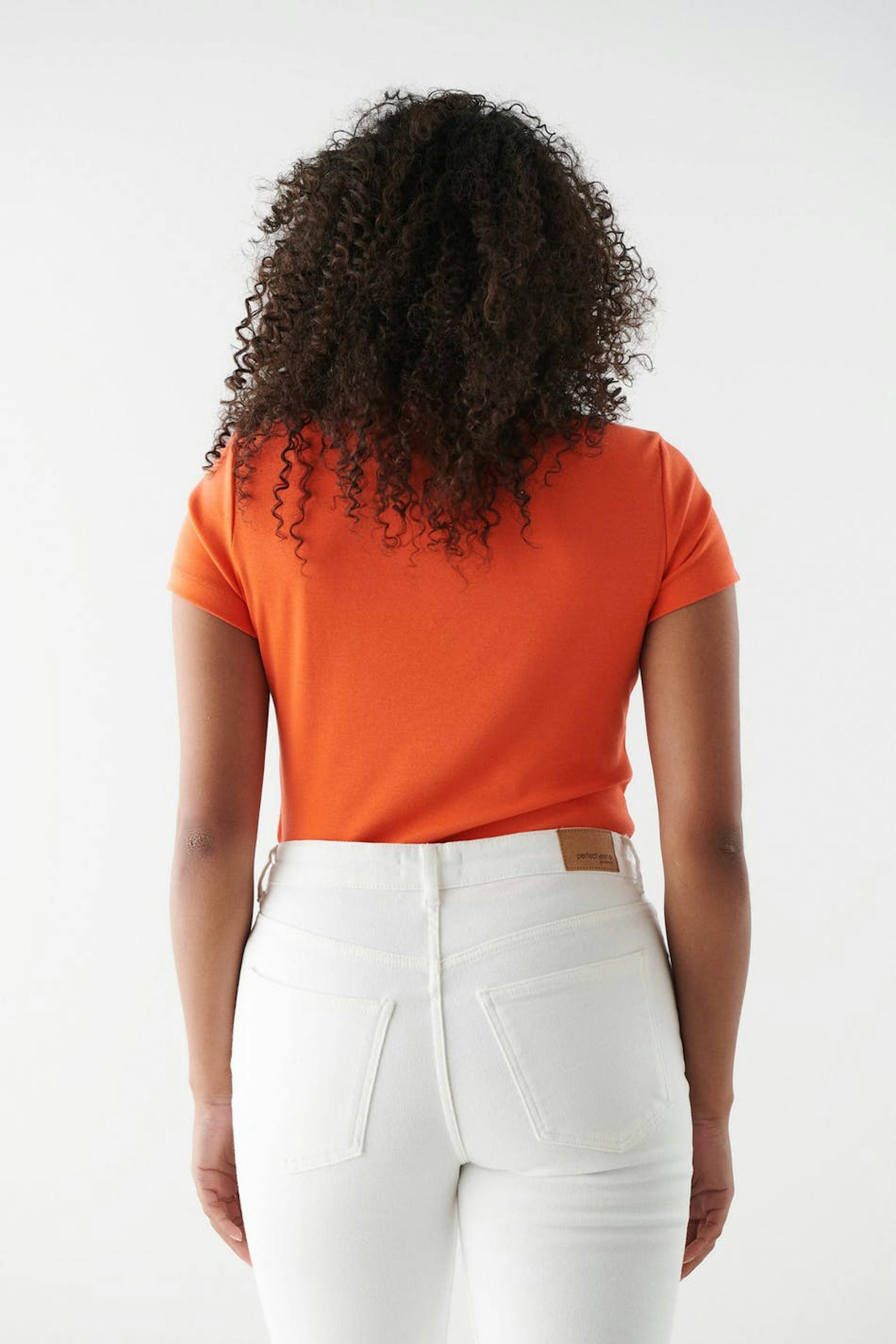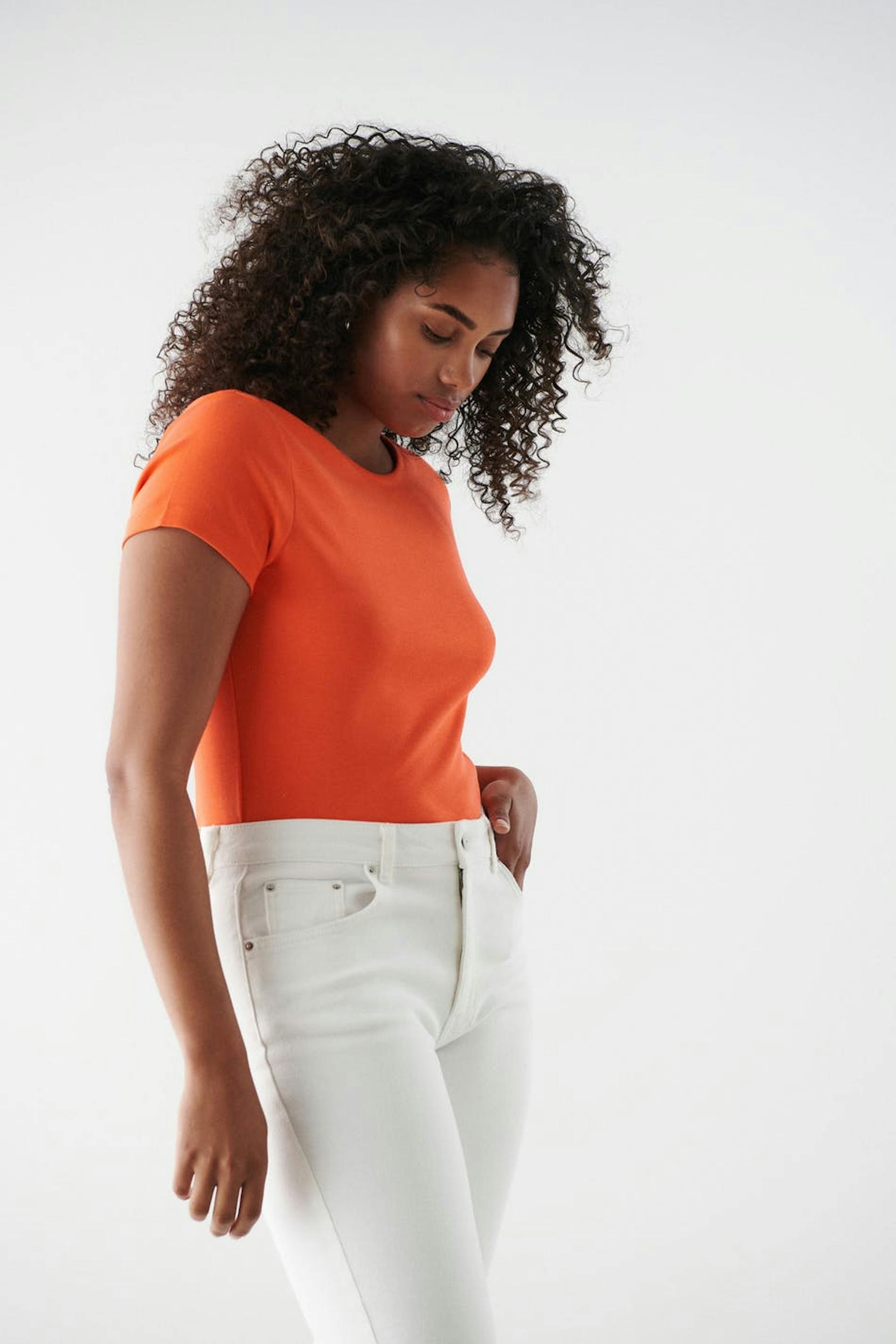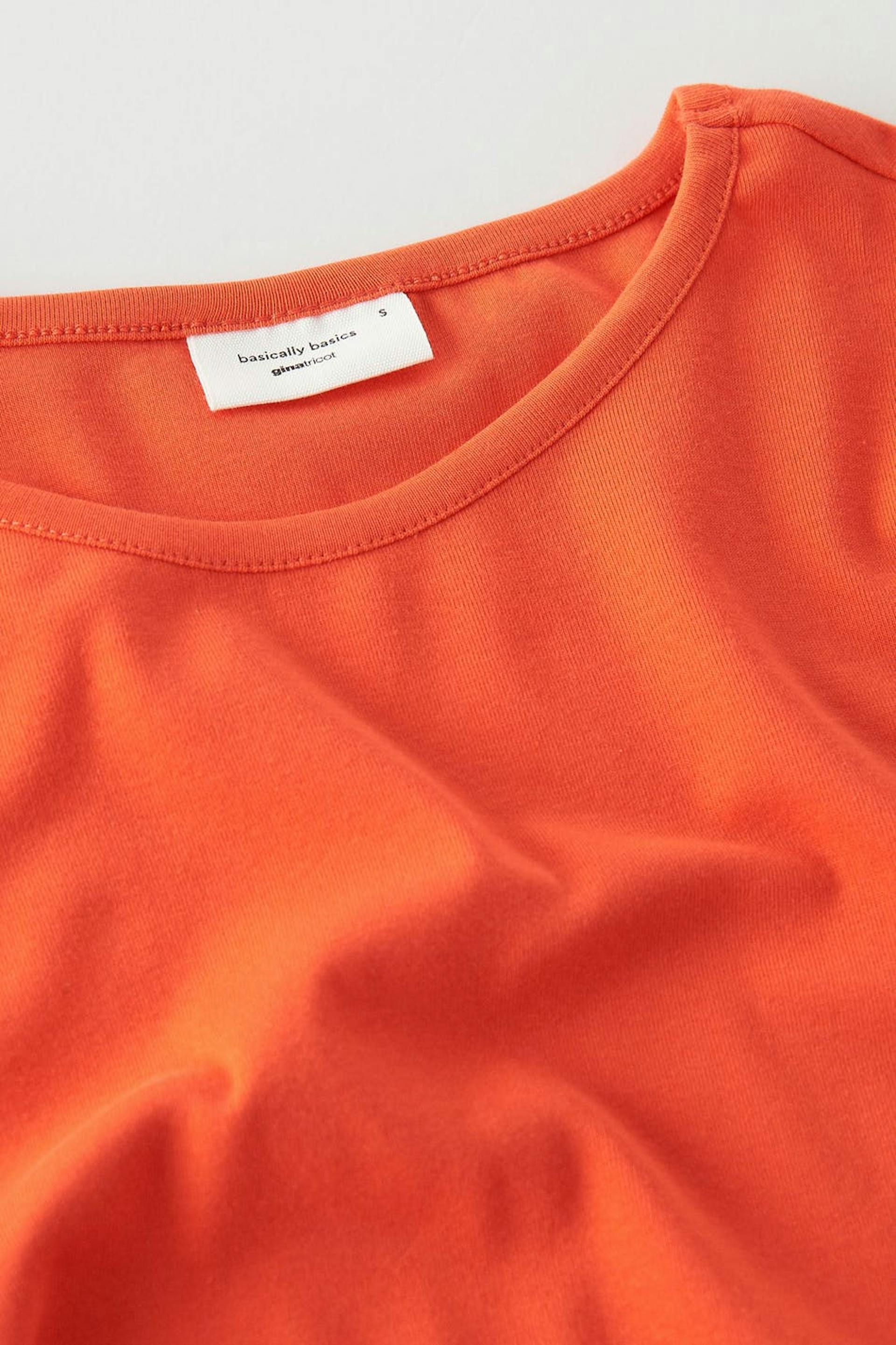 Kortermet jerseytopp med tilpasset passform. Jerseytoppen er oransje og har en avkortet lengde.