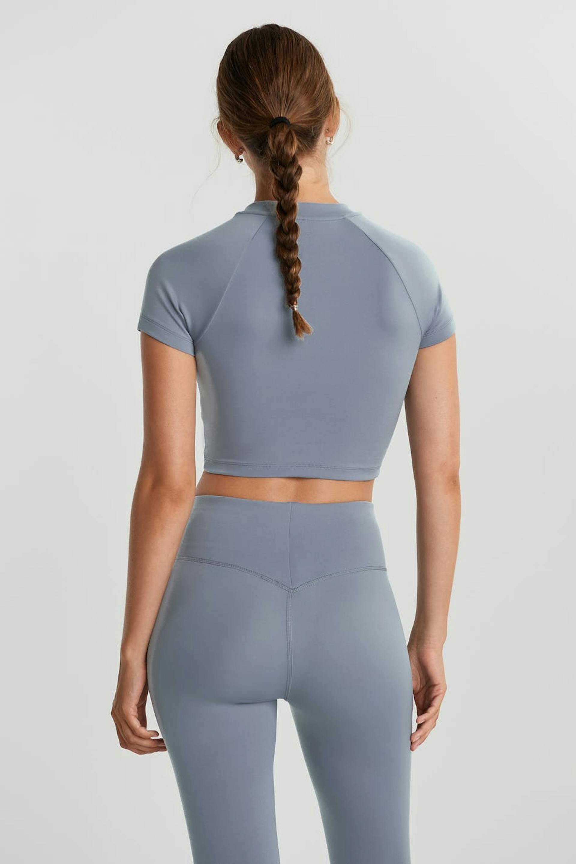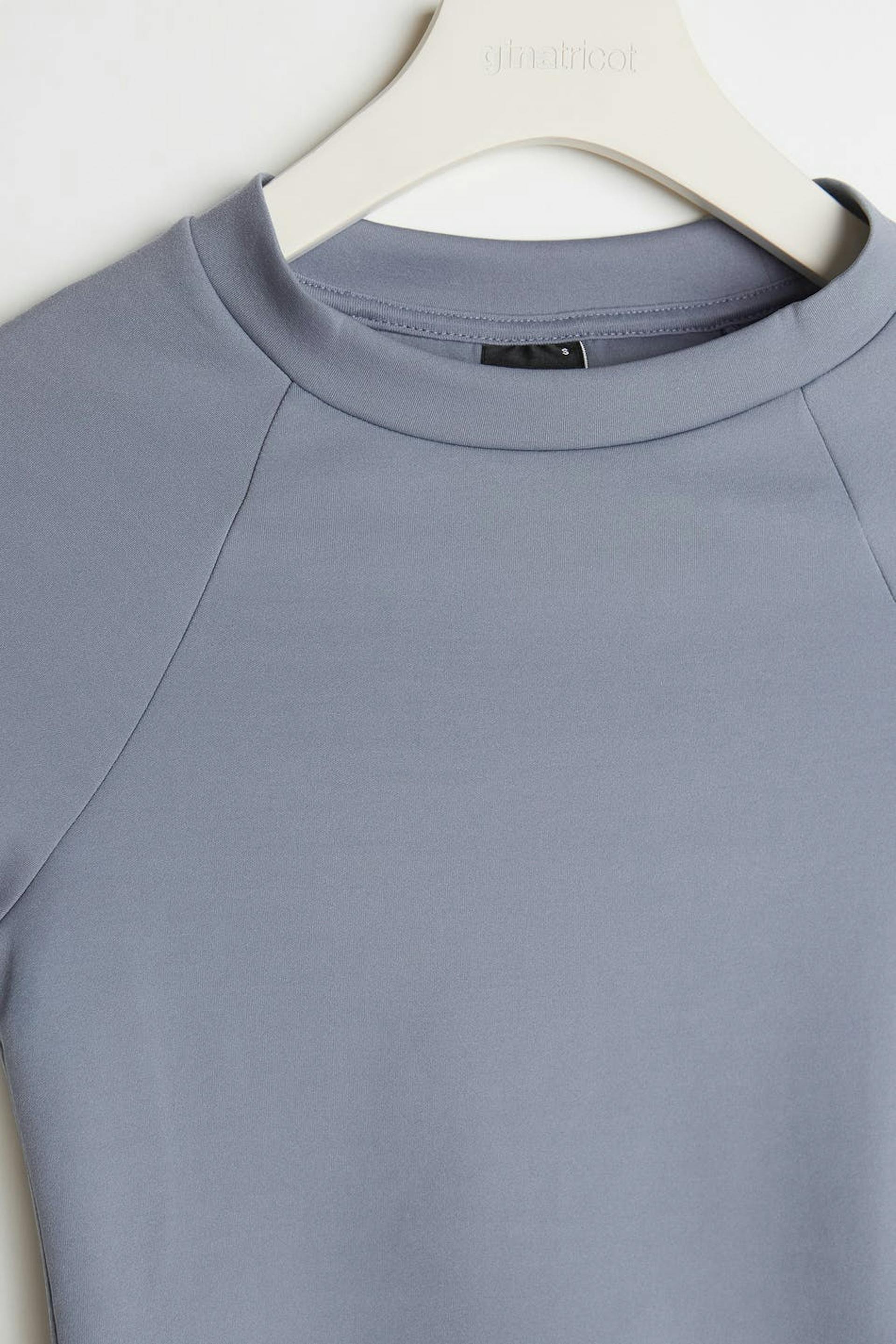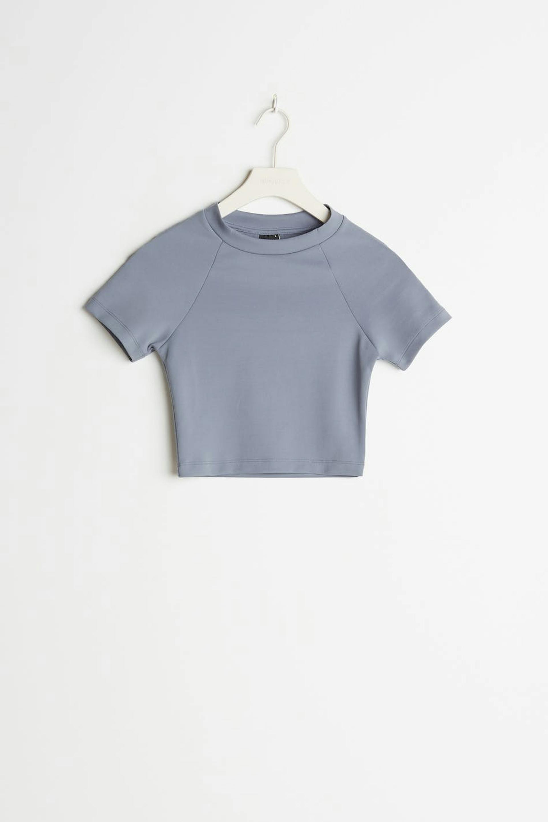 Kortermet magetopp med en tilpasset passform. Toppen er blå. Den er laget av jersey.