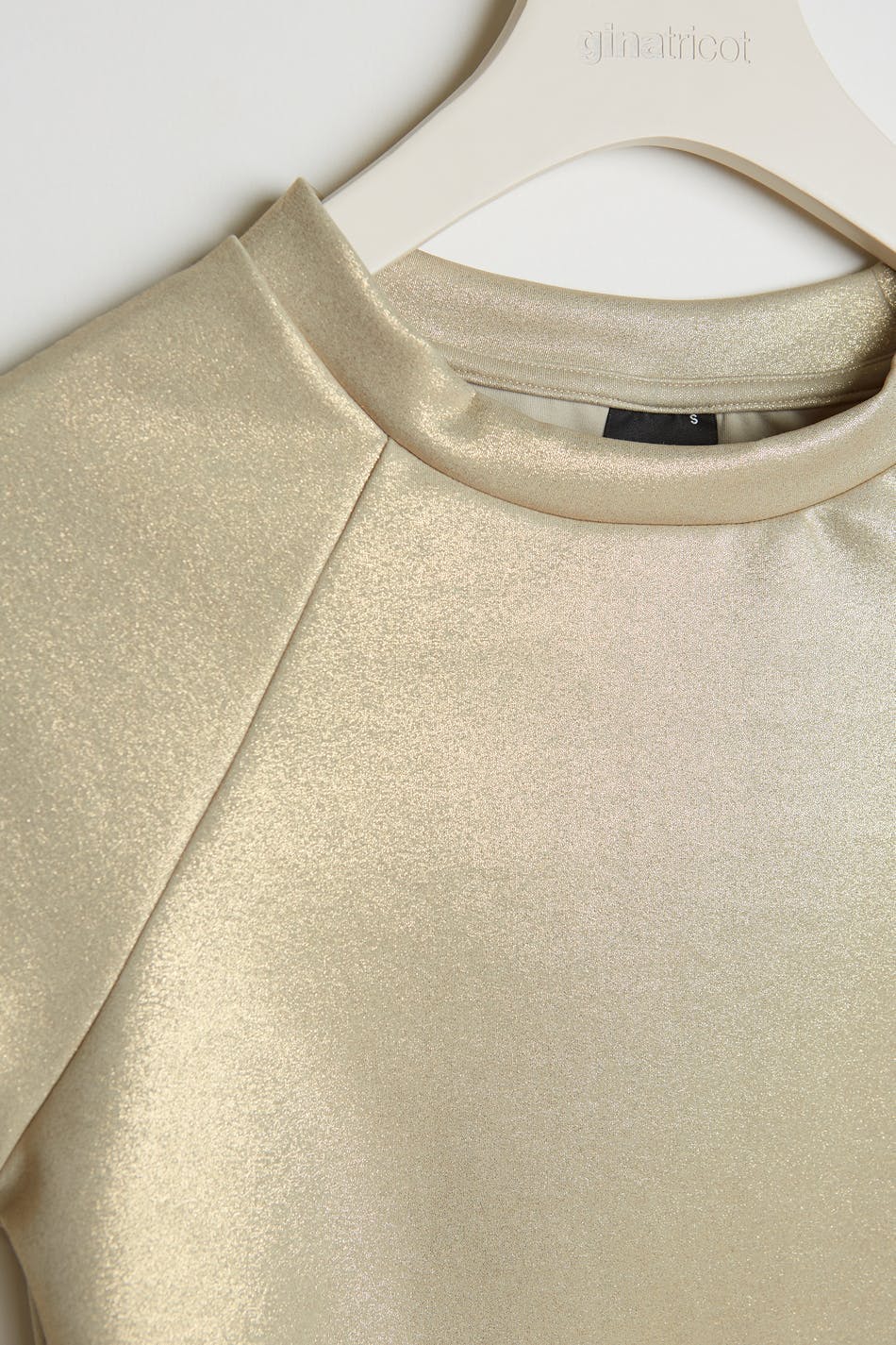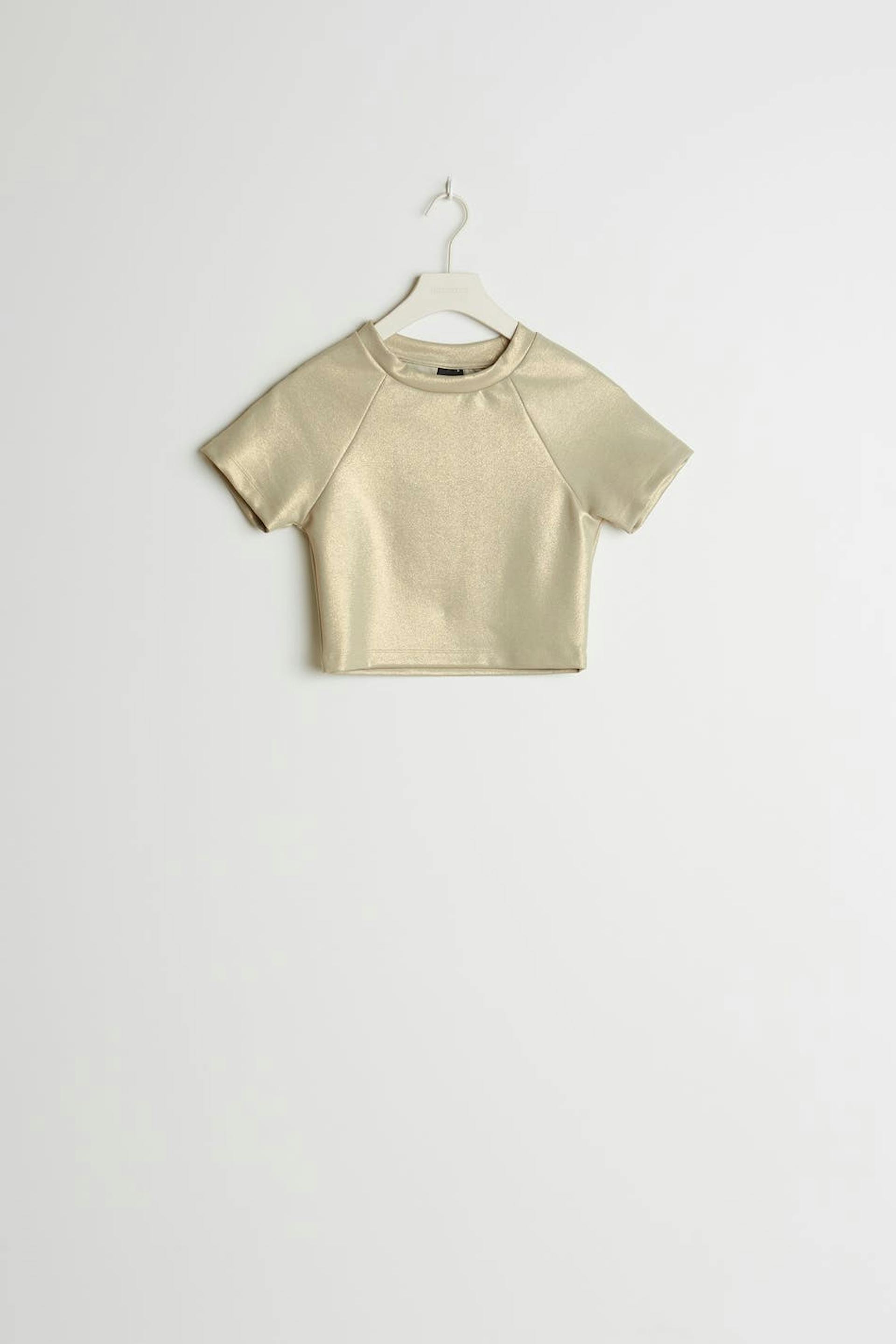 Skimrende magetopp med en tilpasset passform. Toppen er beige og kortermet. Den er laget av jersey.